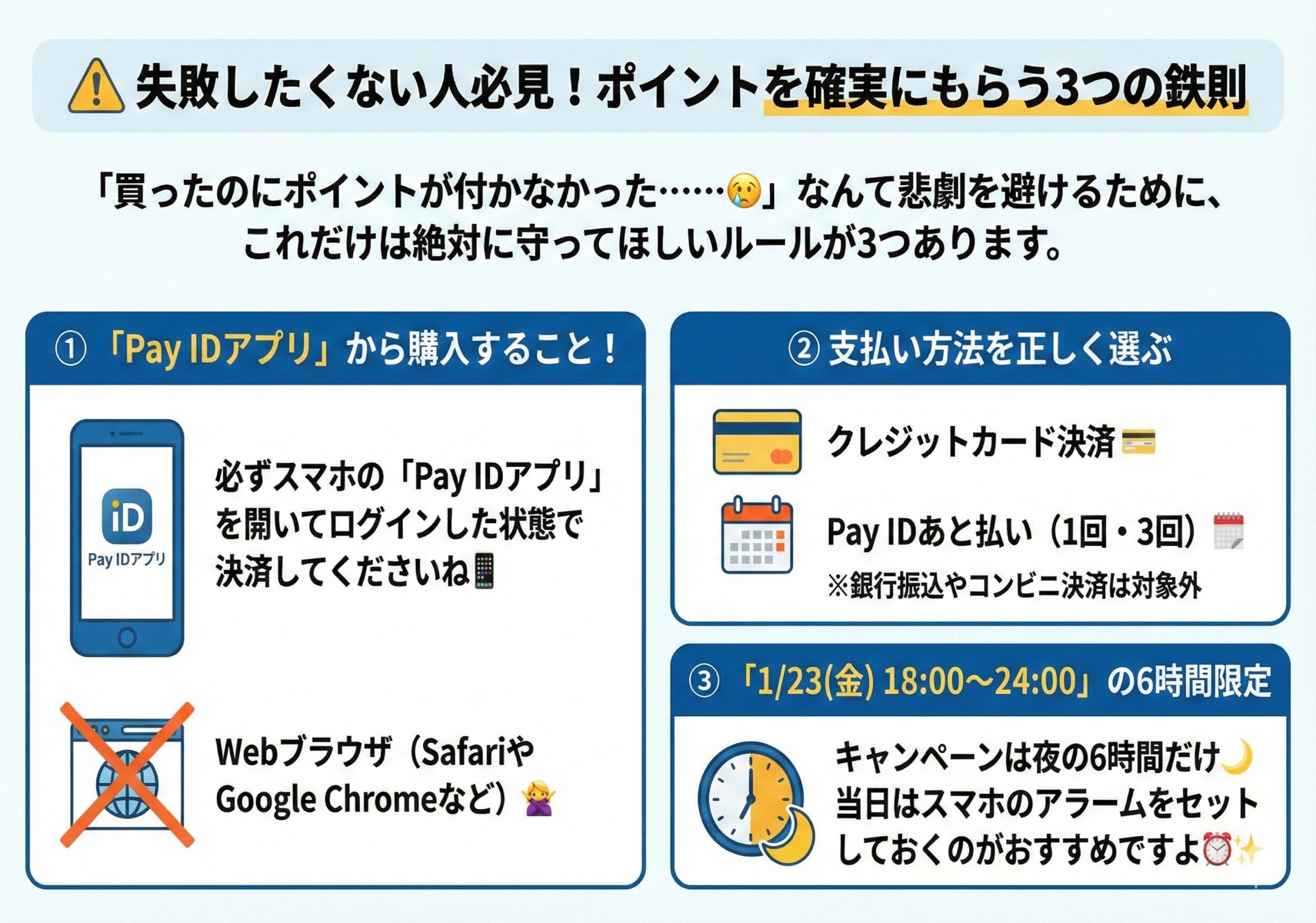 ⚠️ 失敗したくない人必見!ポイントを確実にもらう3つの鉄則