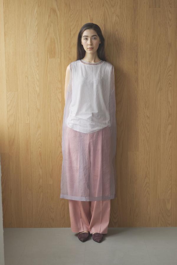 オーガンジーワンピース(25163-2278E)をレイヤードするONスタイルもおすすめです。
