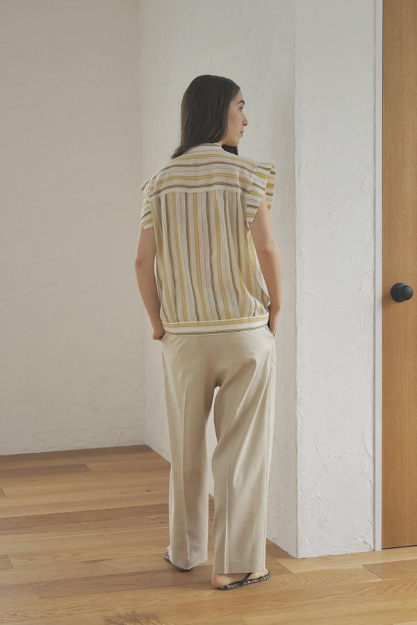 綿麻のさらっとした着心地とストレッチ性、品の良いシャンブレーカラーが特徴です。