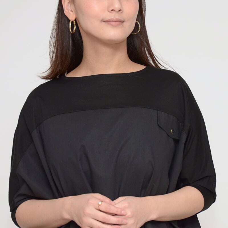 胸元のフラップポケットが、デザインのアクセントに。