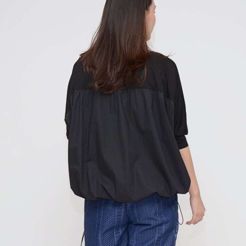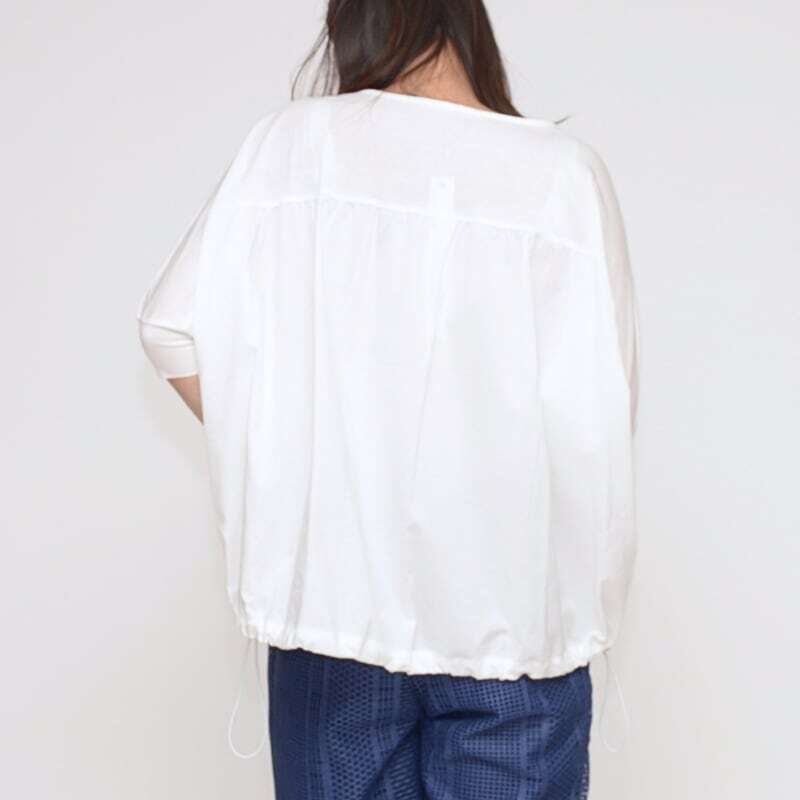 裾のドロストリングを絞ることで、シルエットのアレンジが可能。