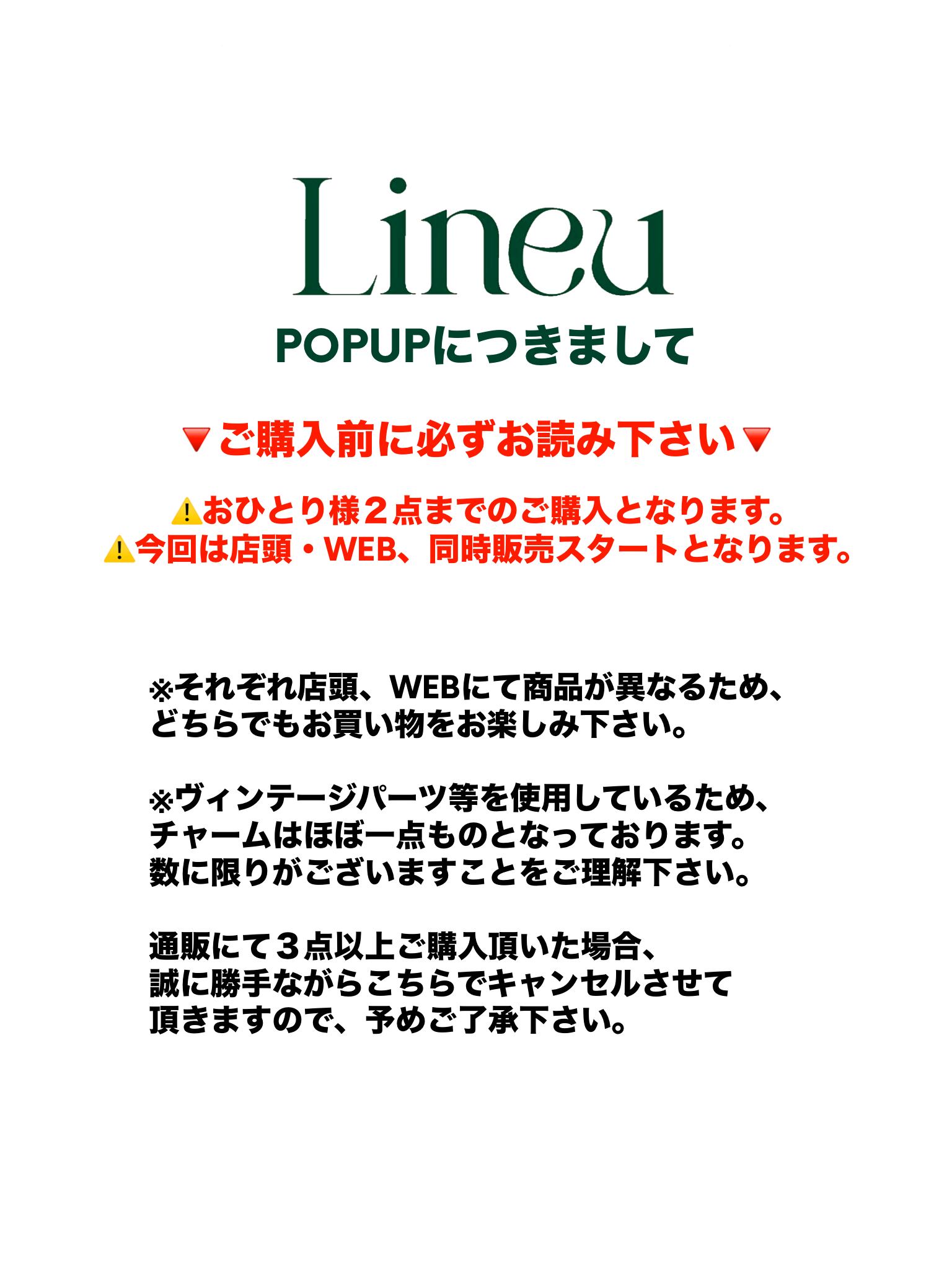 オリジナルチャームブランドのLineu、大好評につき2回目のPOPUP!ヴィンテージパーツを使用したものや、国内外から集めたパーツで組み合わせたチャーム達です。