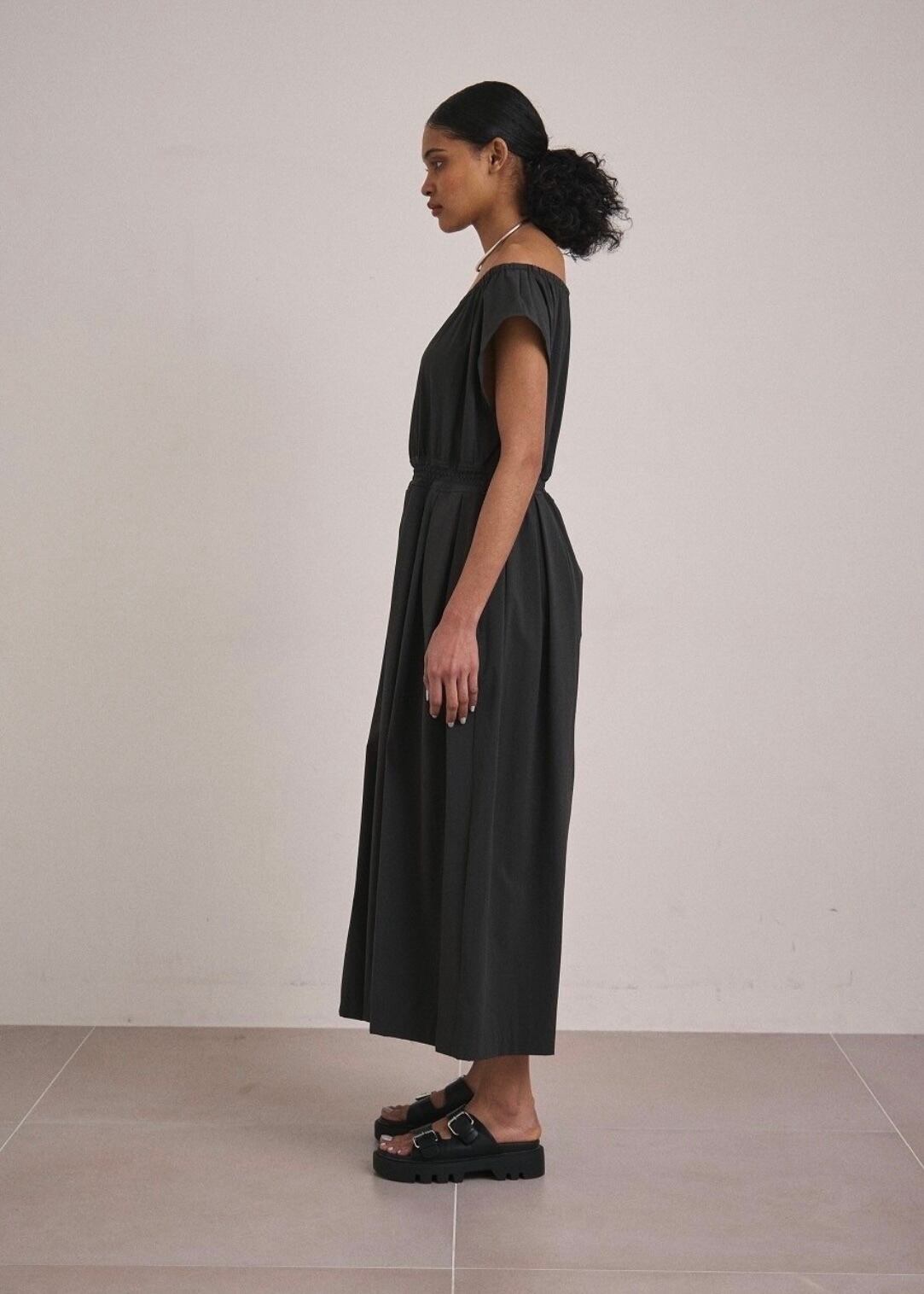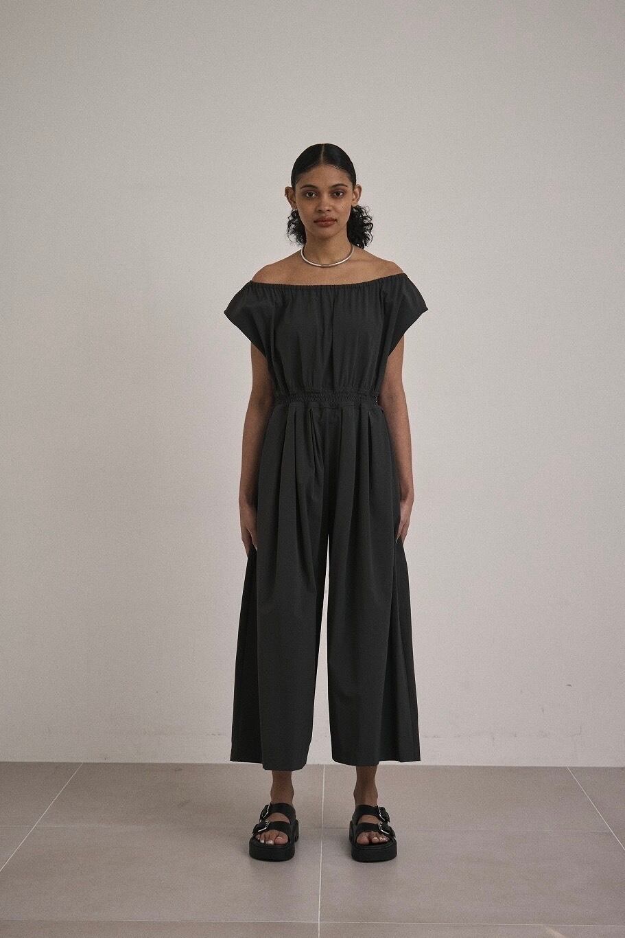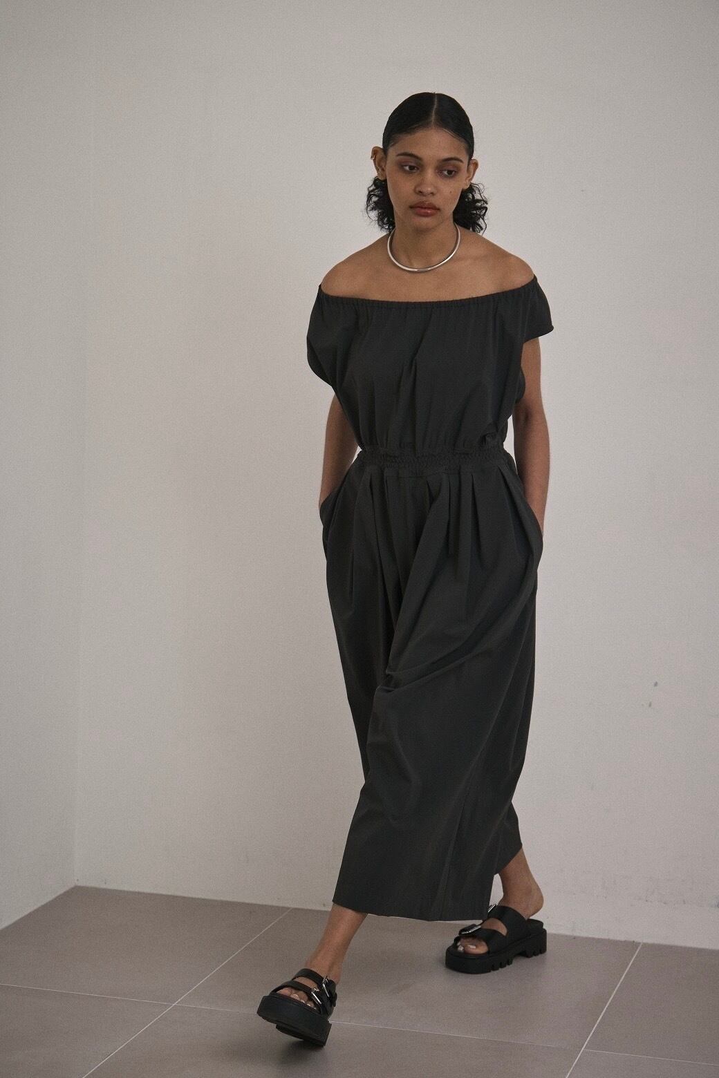 肩のラインが美しく見える絶妙なオフショルデザインで大人の抜け感を演出。