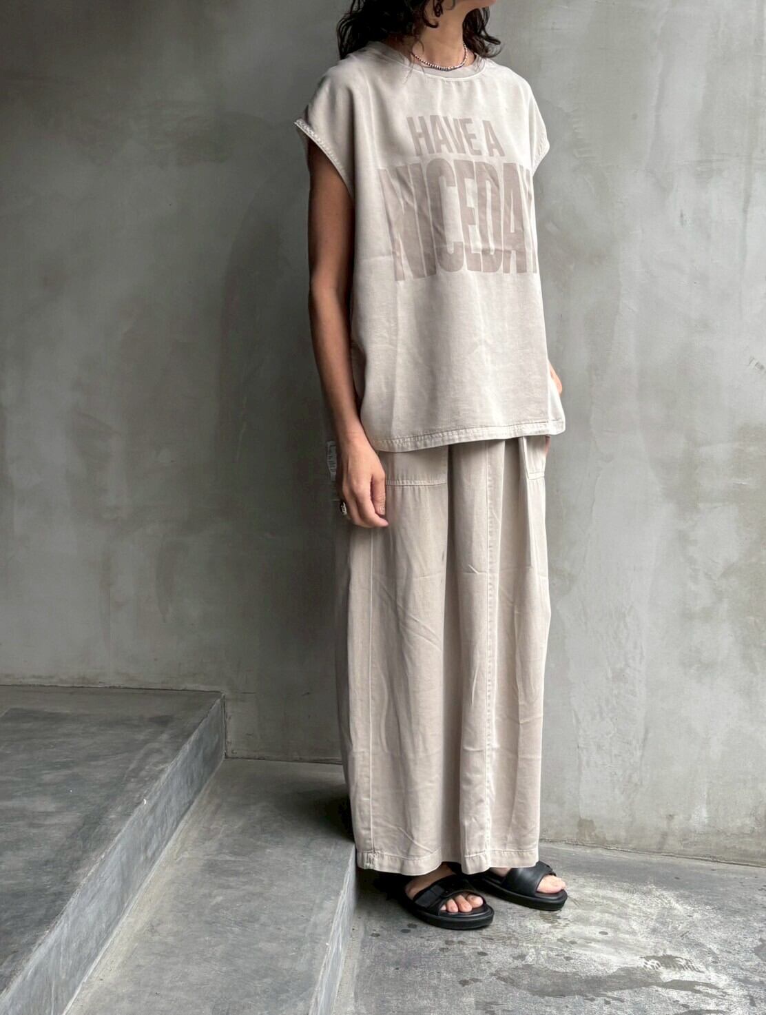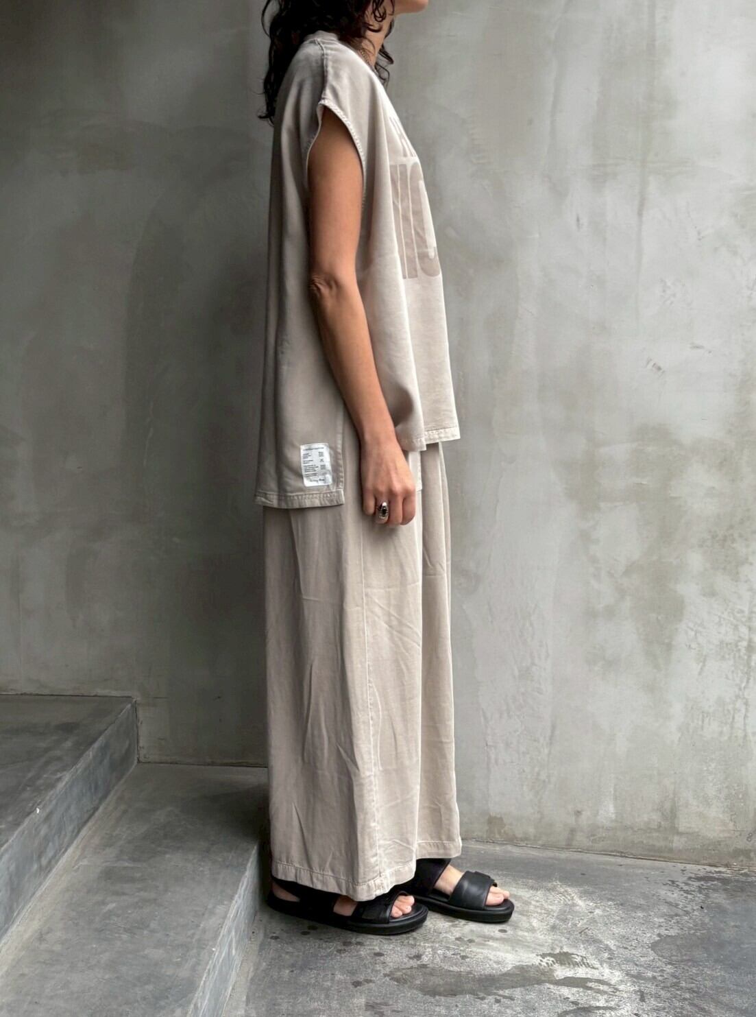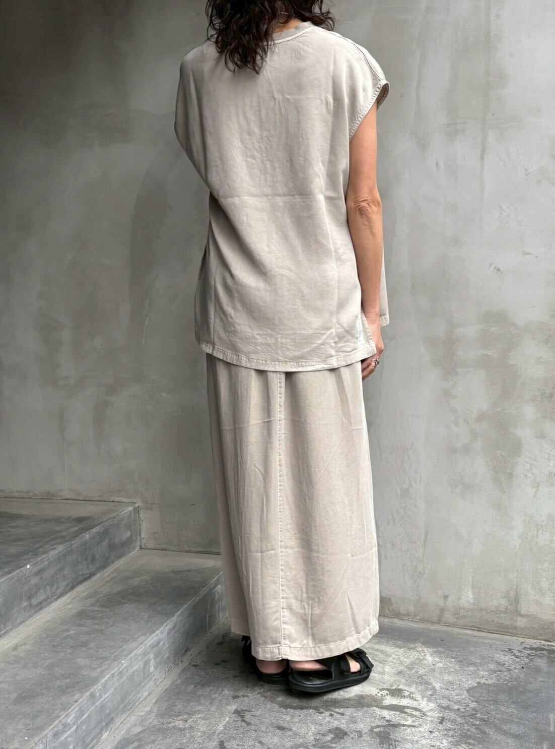同素材のパンツとスカートでセットアップとしてもおすすめです。