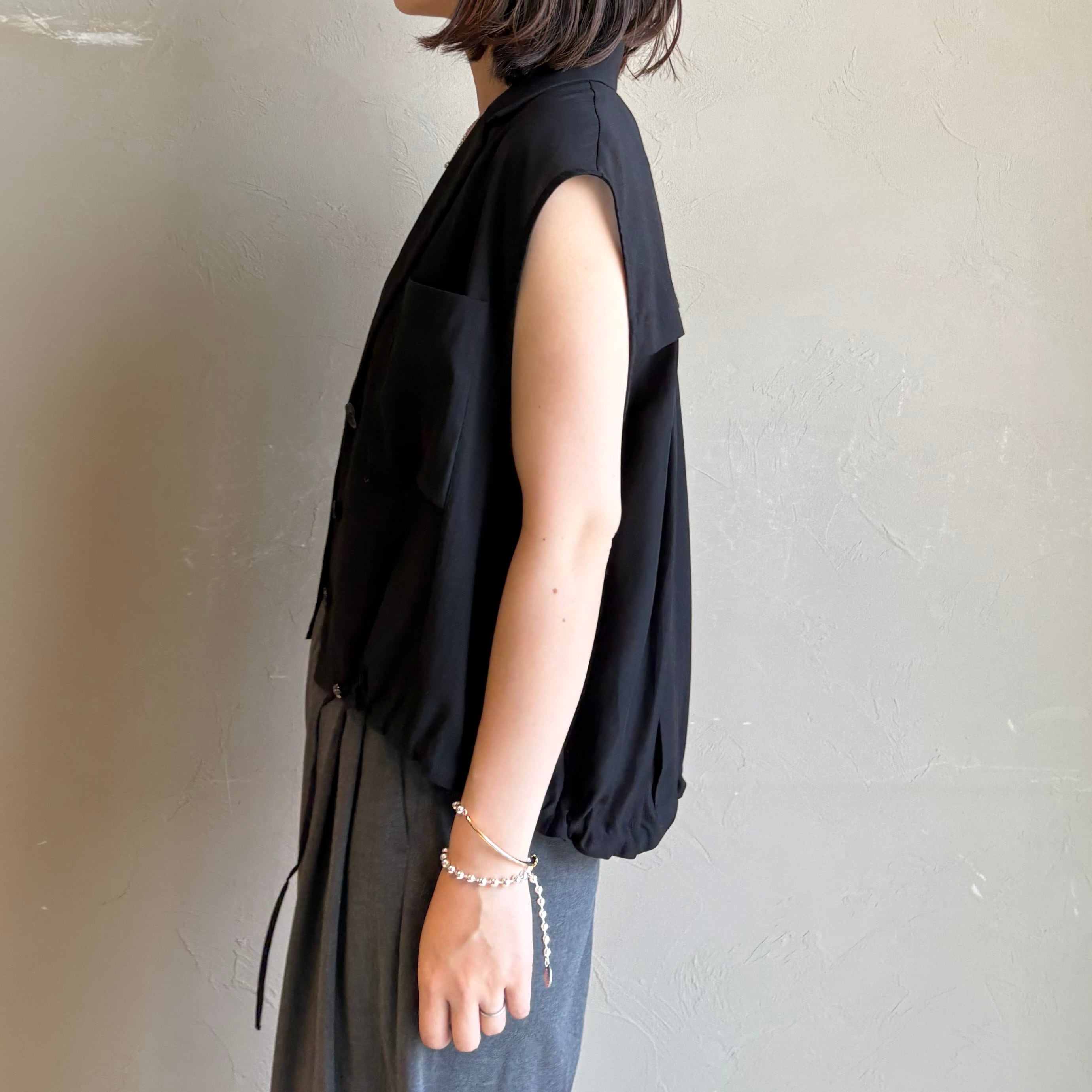 裾のドロストでコクーンのようなシルエットの変化を楽しめる1枚です。