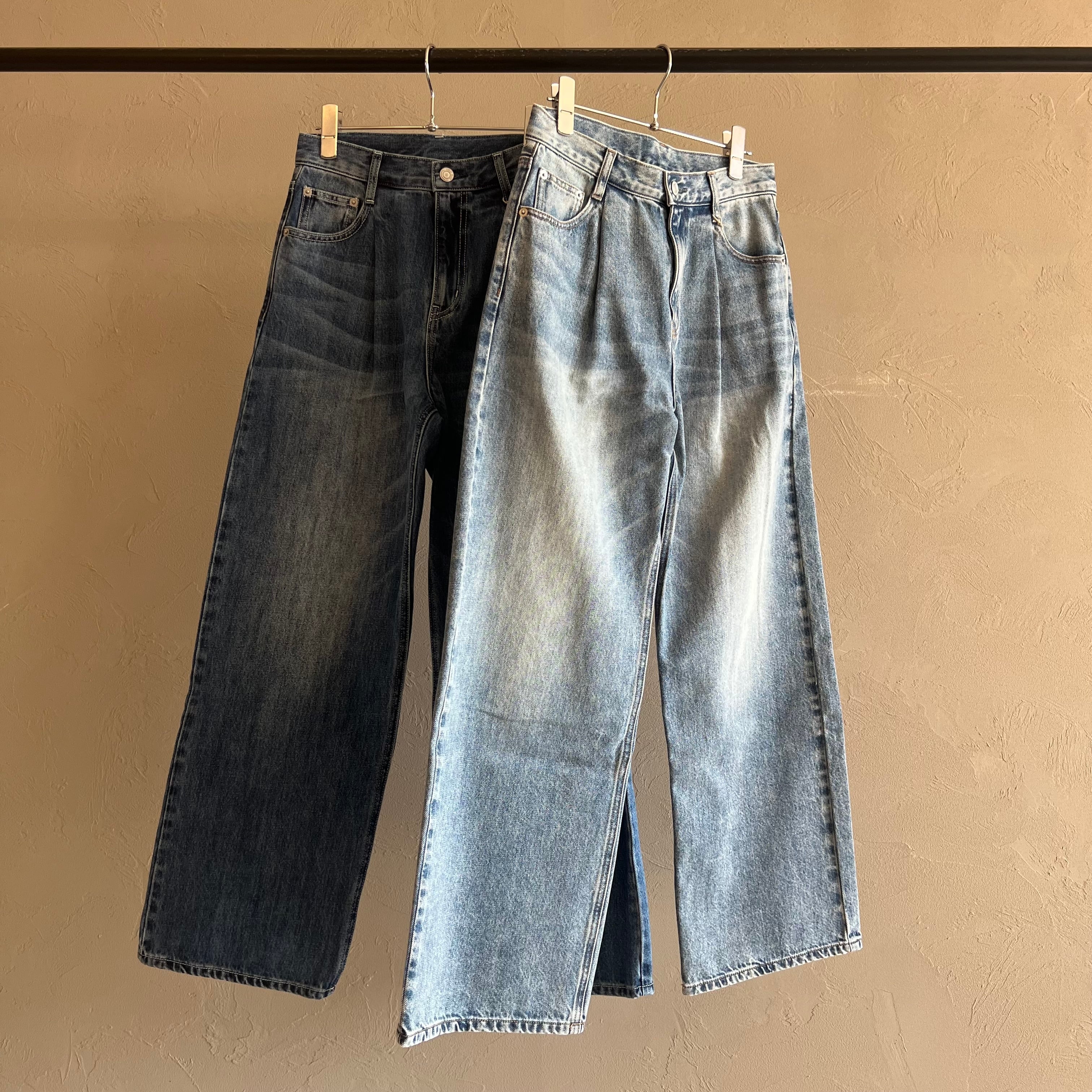 【CAFUNE】タックバギーデニムパンツは旬のワイドシルエットに美脚効果を兼ね備えた1本。