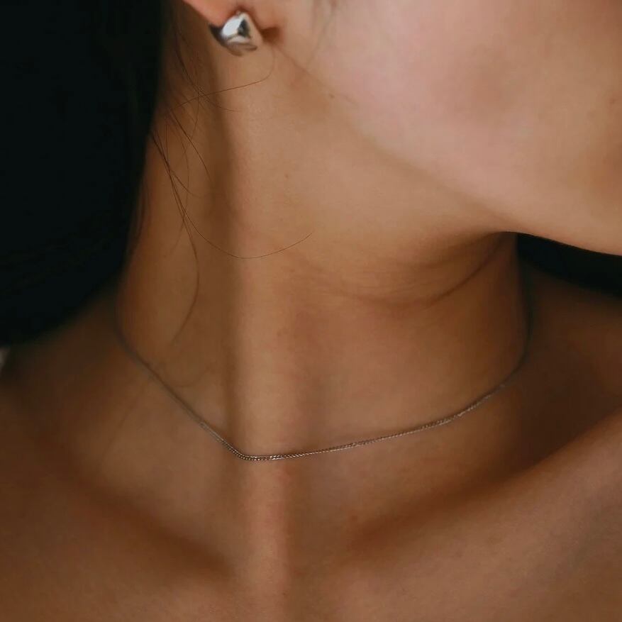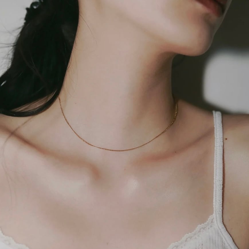 素肌に馴染むチェーンが、デコルテを上品に演出してくれます。