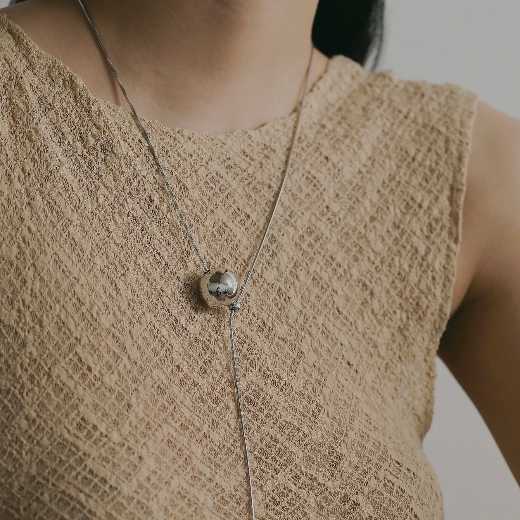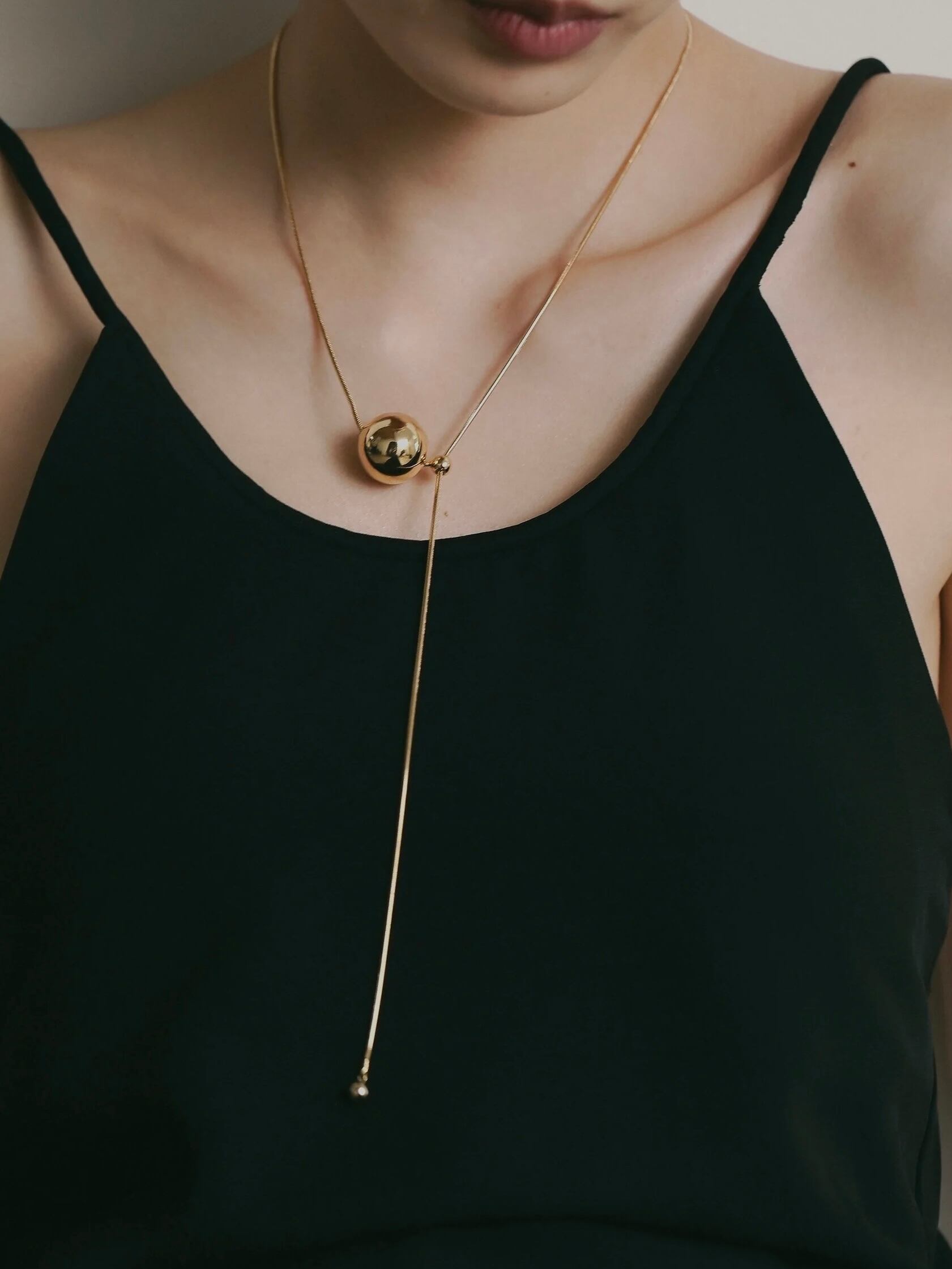 大ぶりなボールモチーフが、コーディネートのポイントになり