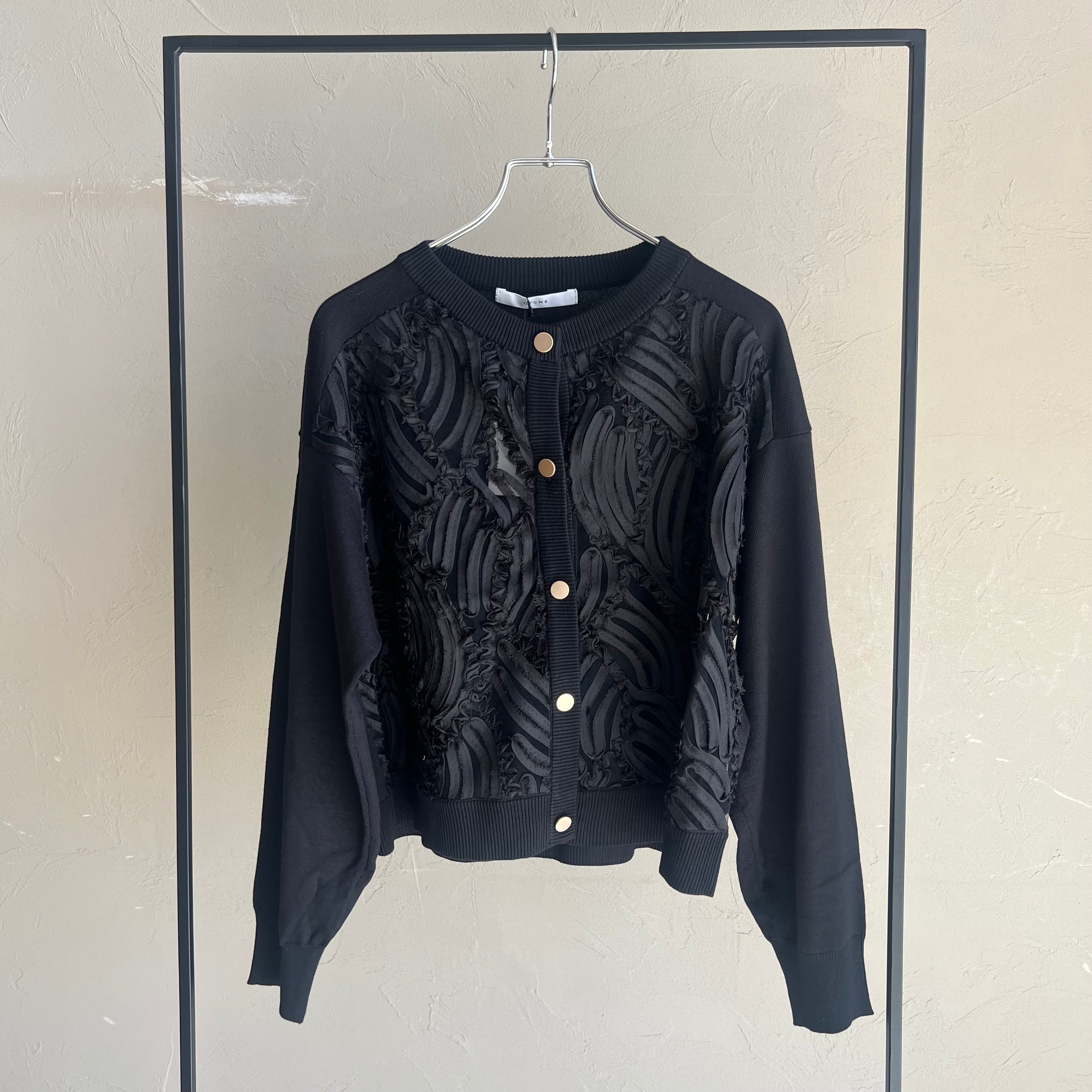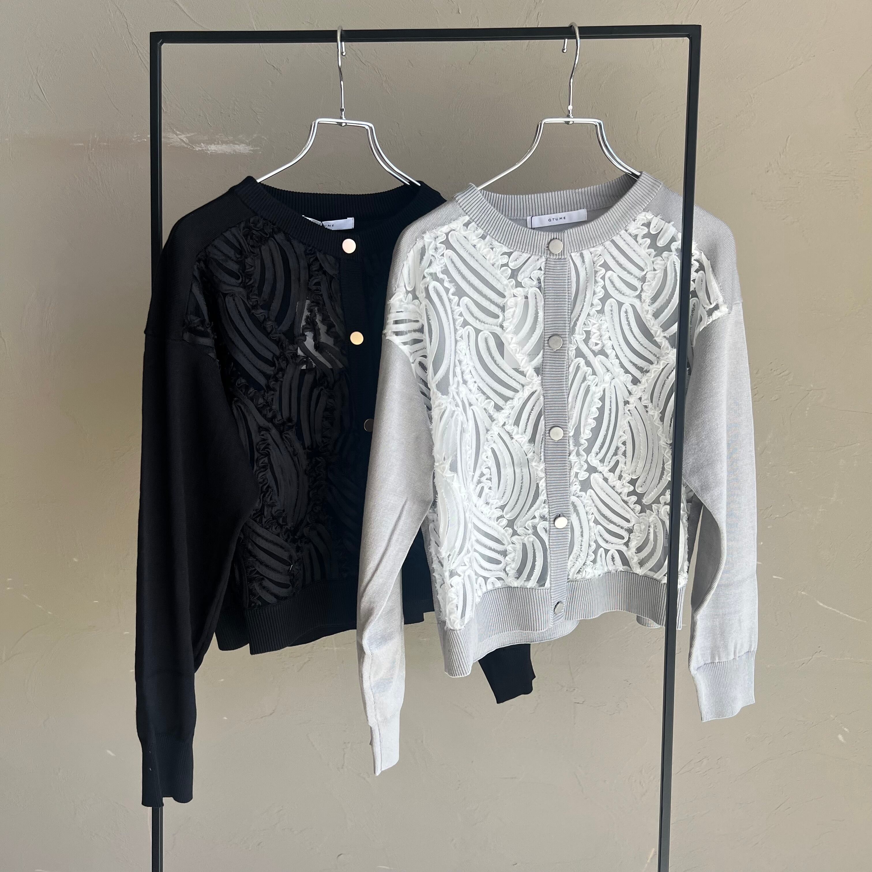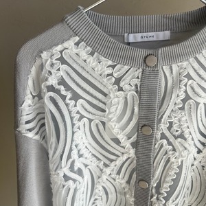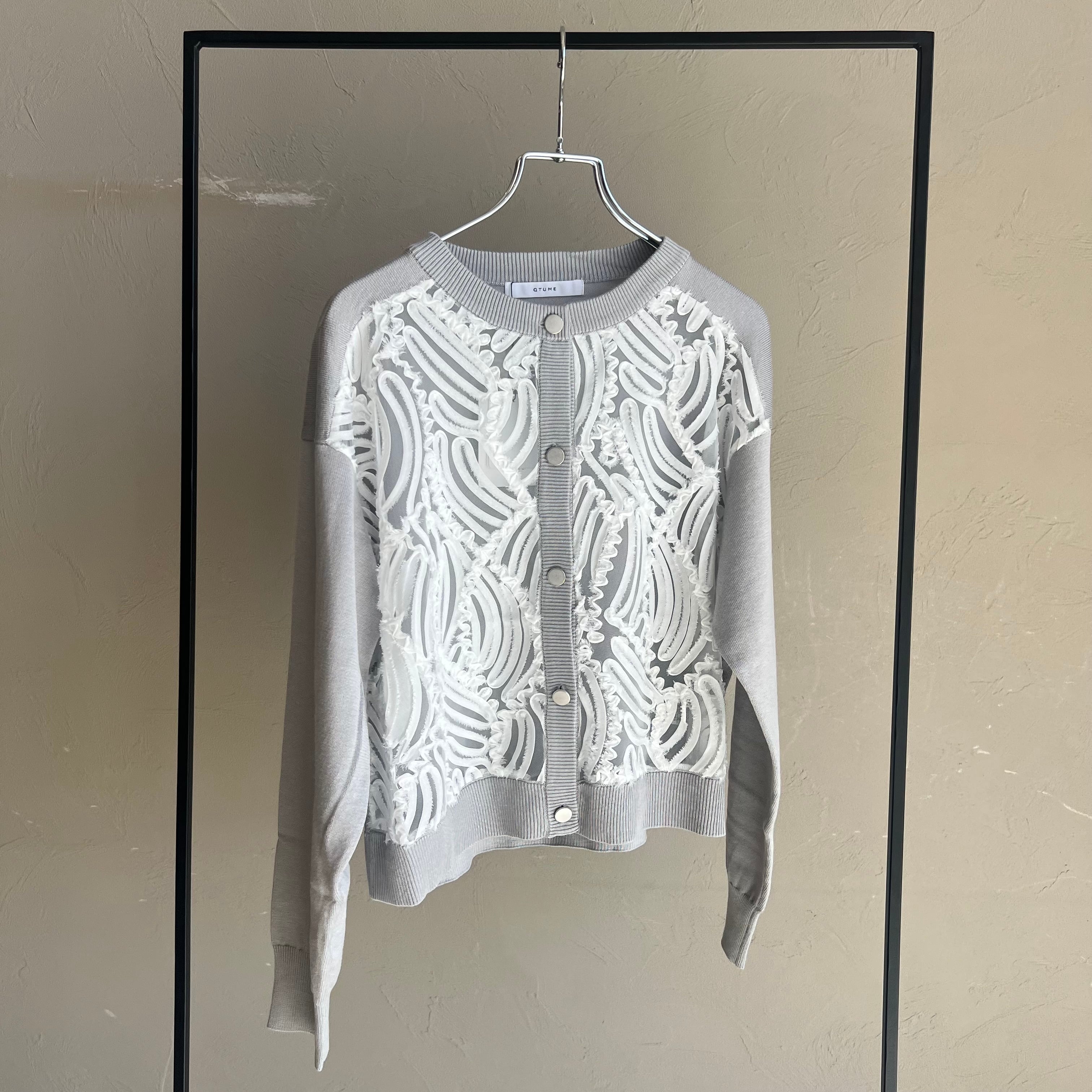 【 QTUME 】ニット切替刺繍レースカーディガン