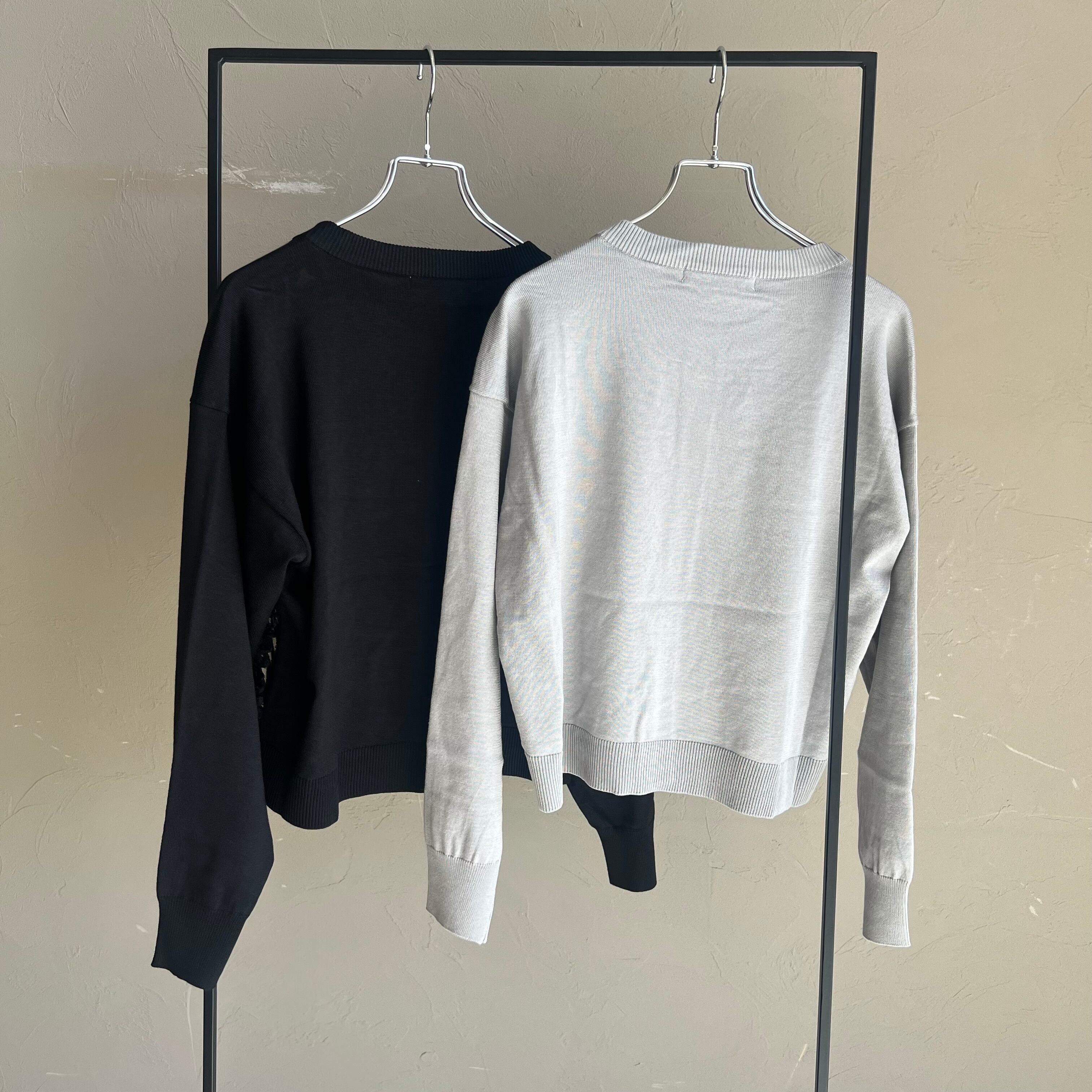 繊細なレース刺繍と軽やかなニット素材の切替デザインが、大人の洗練スタイルを演出します。
