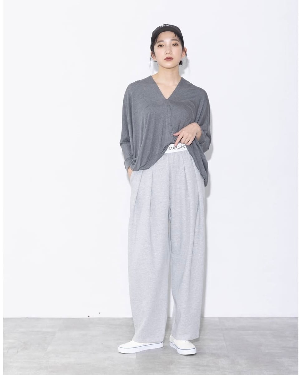 ロゴ入りウエストゴムがアクセントとなり、こなれた大人カジュアルを演出。