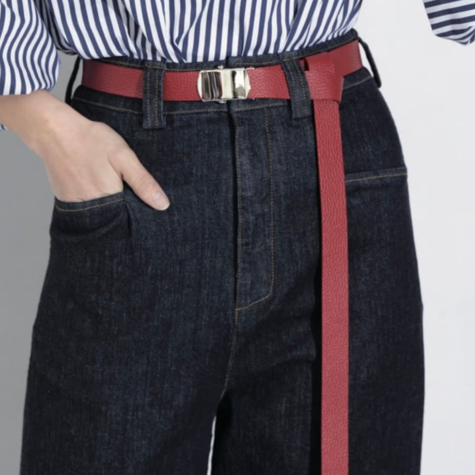 脚をまっすぐ綺麗に見せてくれる計算されたストレートラインで、大人カジュアルに欠かせないアイテム。