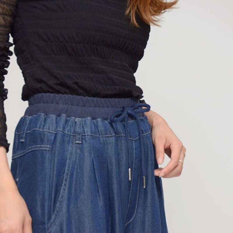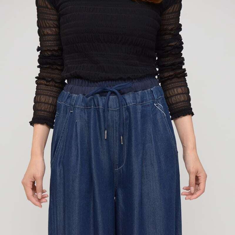 ゆったりとしたワイドシルエットへとつながり、脚のラインを拾いすぎません。