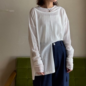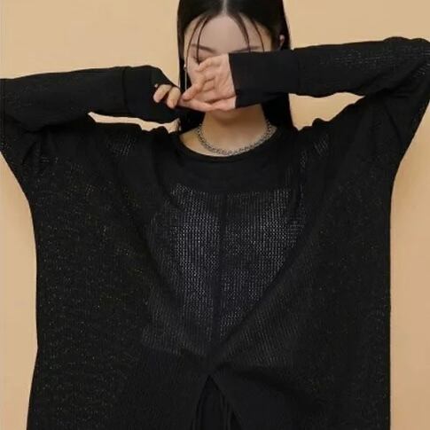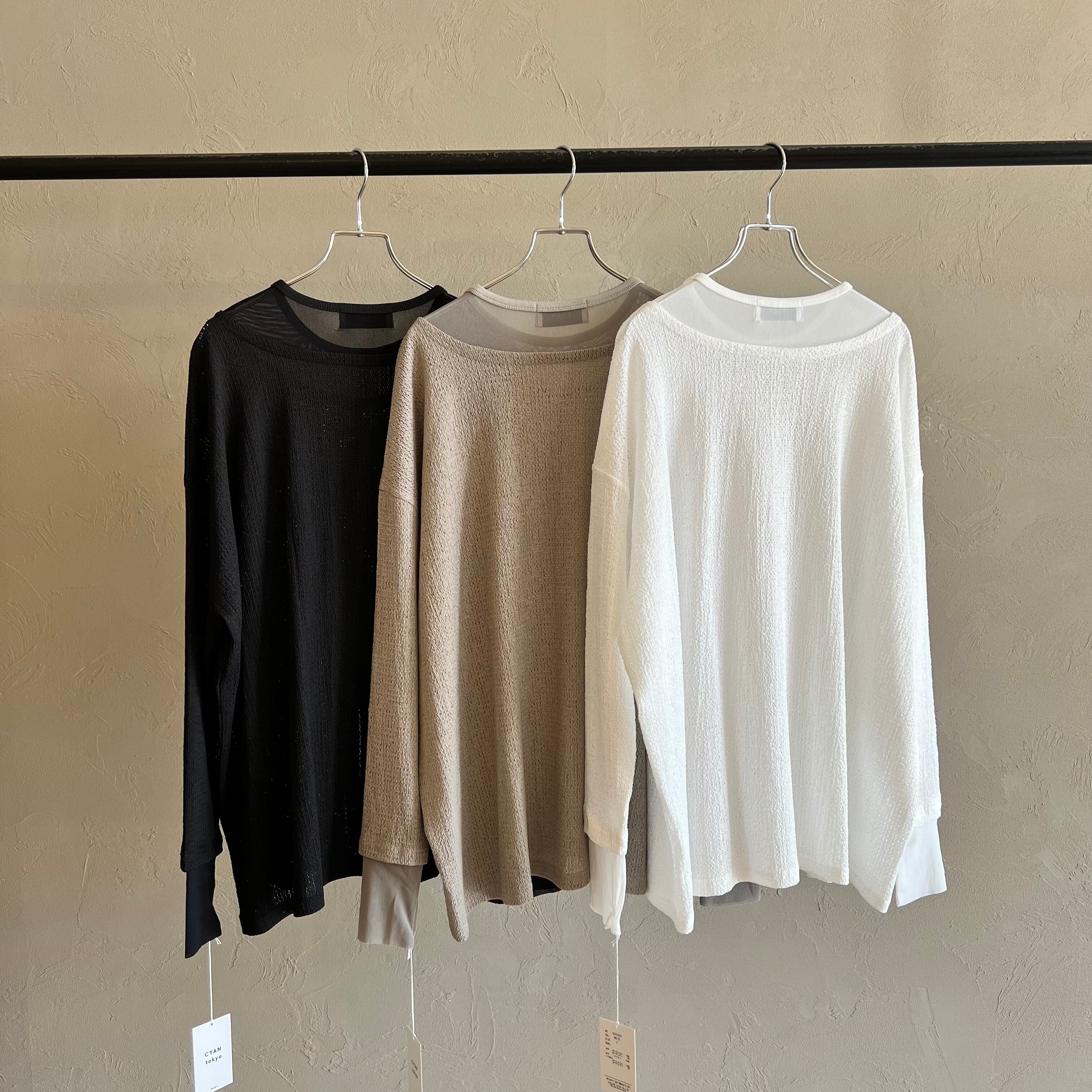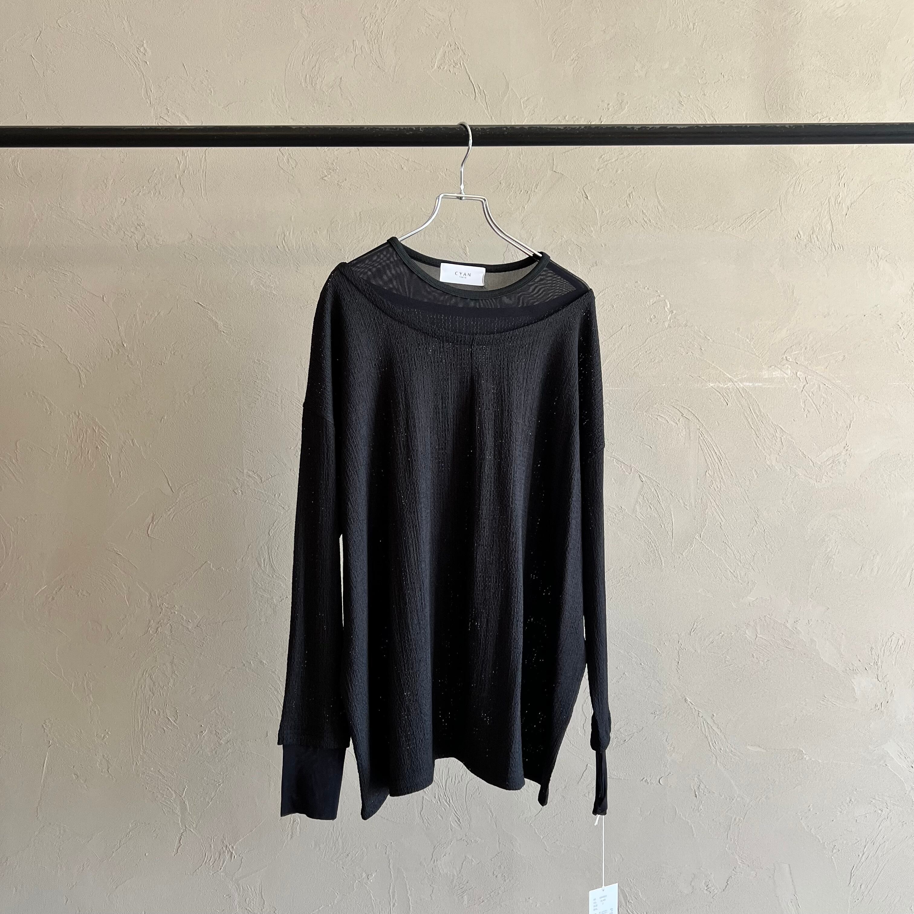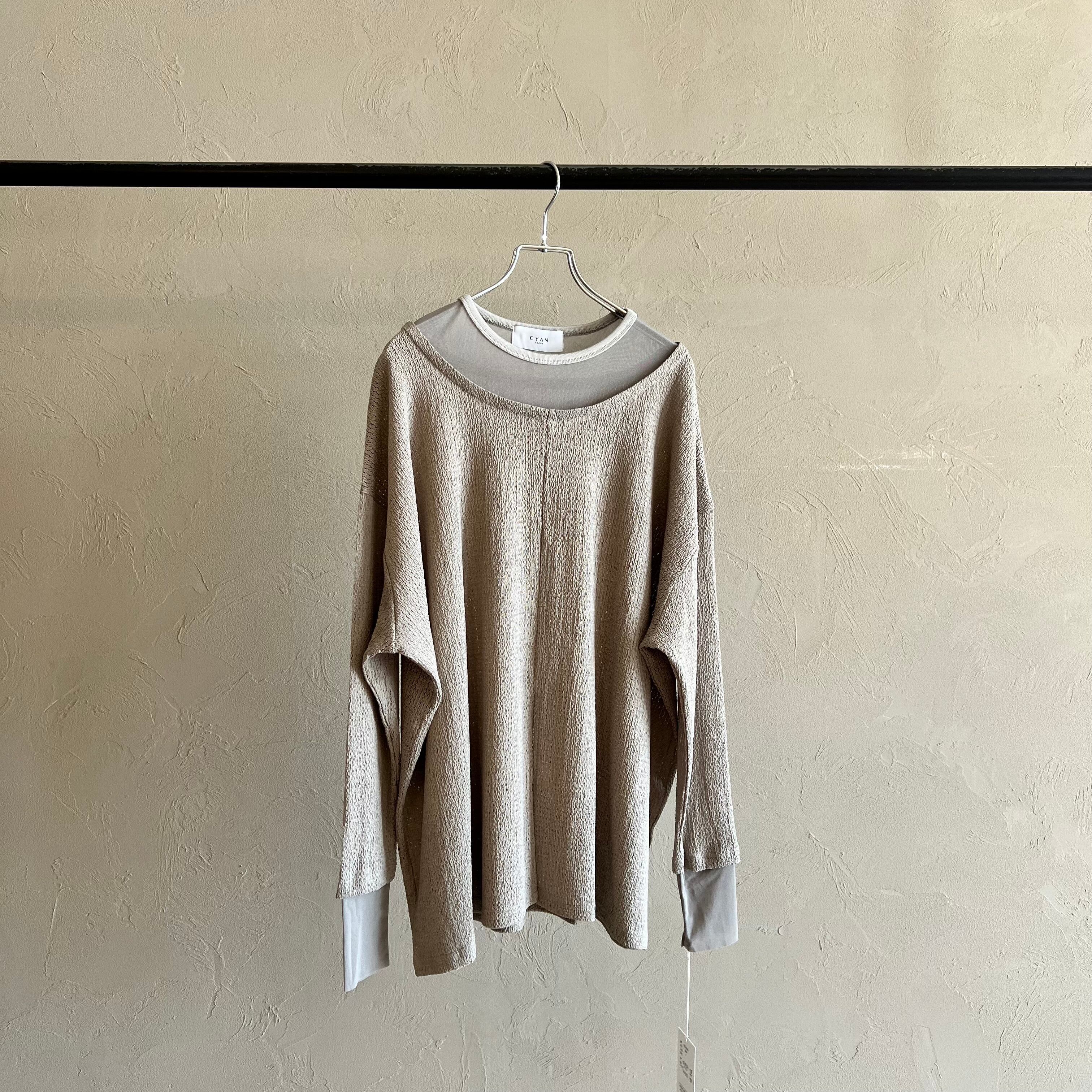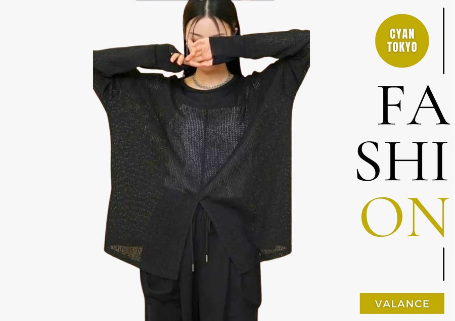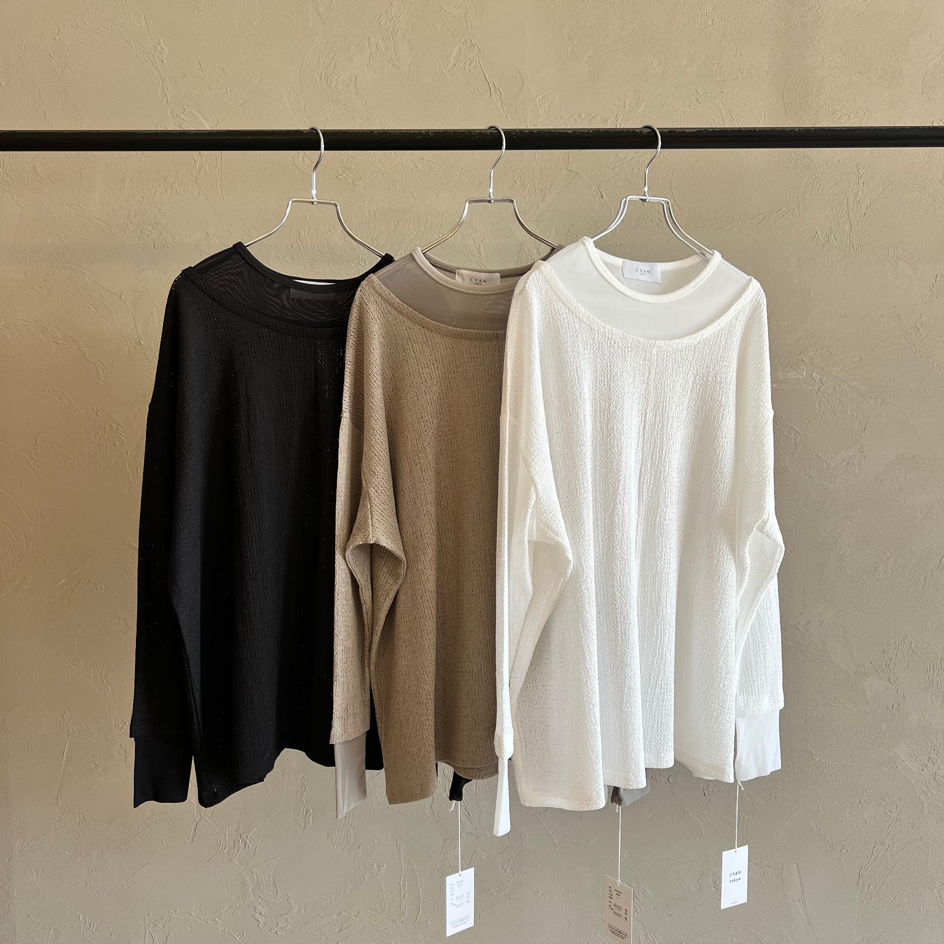 【CYAN TOKYO】チュールコンビスリットトップスは透け感とドレープが絶妙にマッチした大人の抜け感トップス。