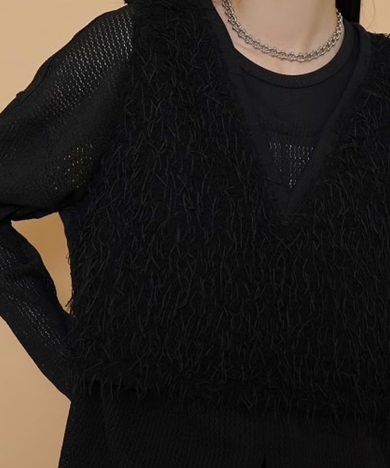 【 CYAN TOKYO 】チュールコンビスリットトップス