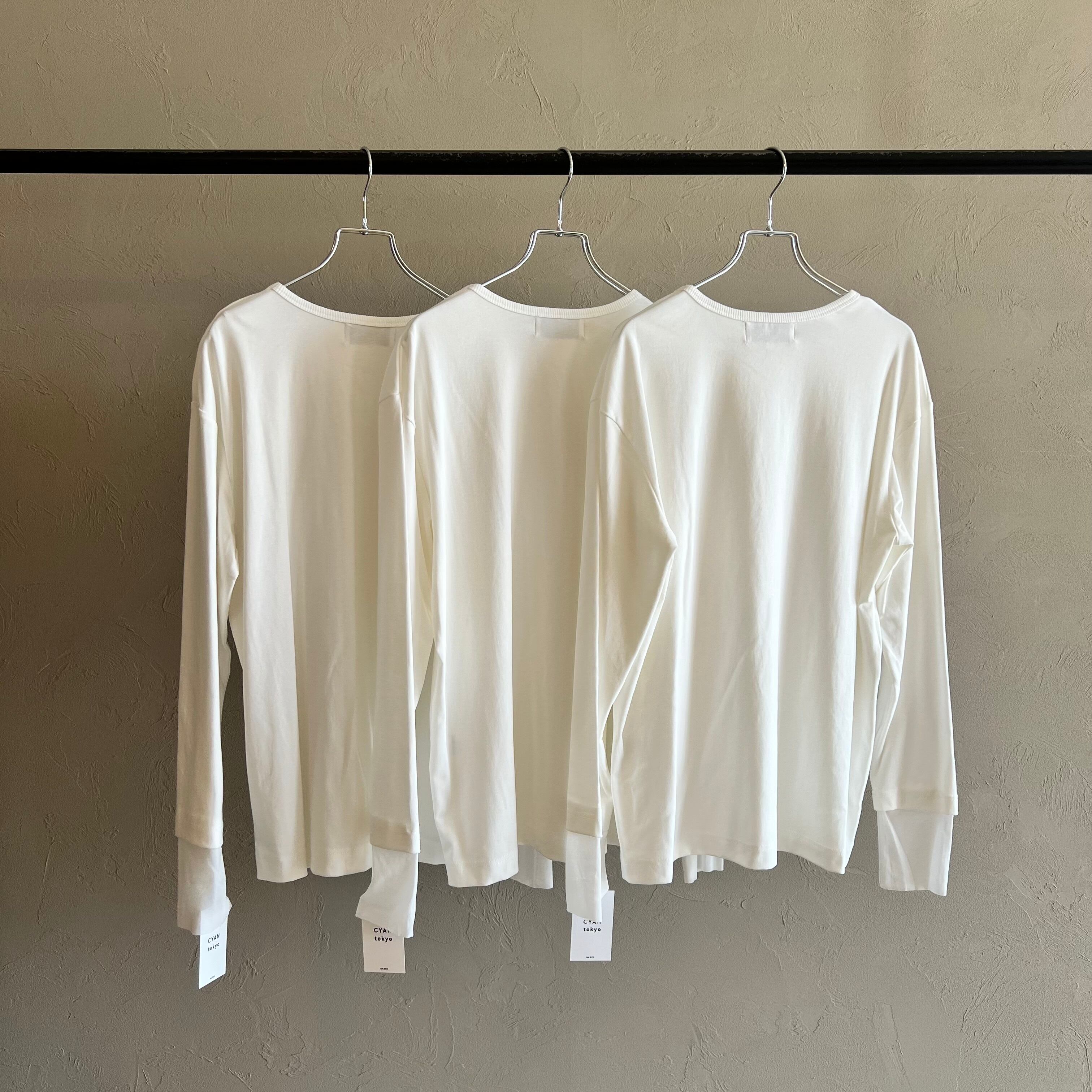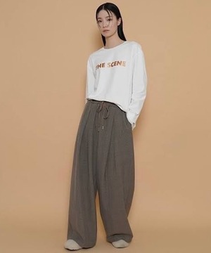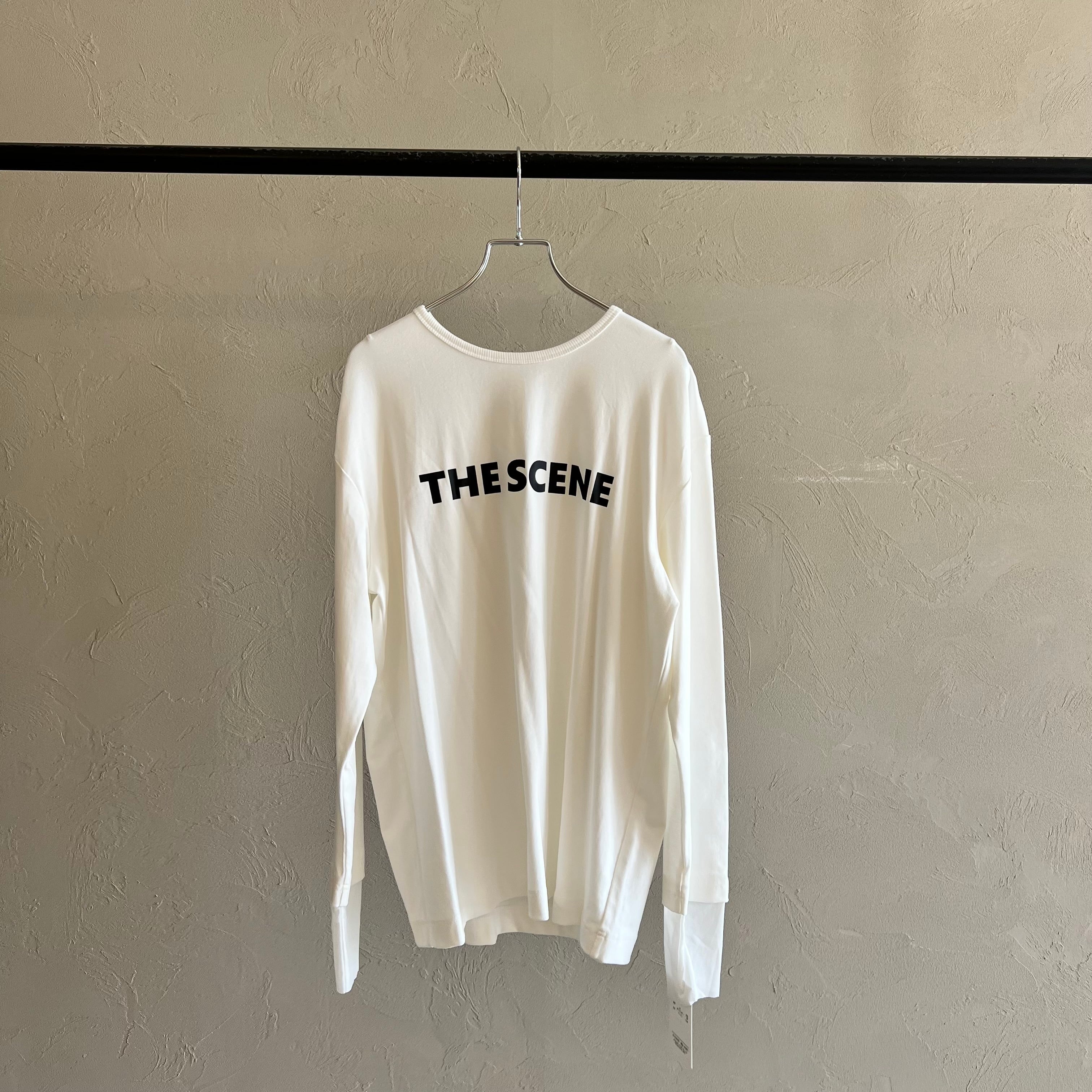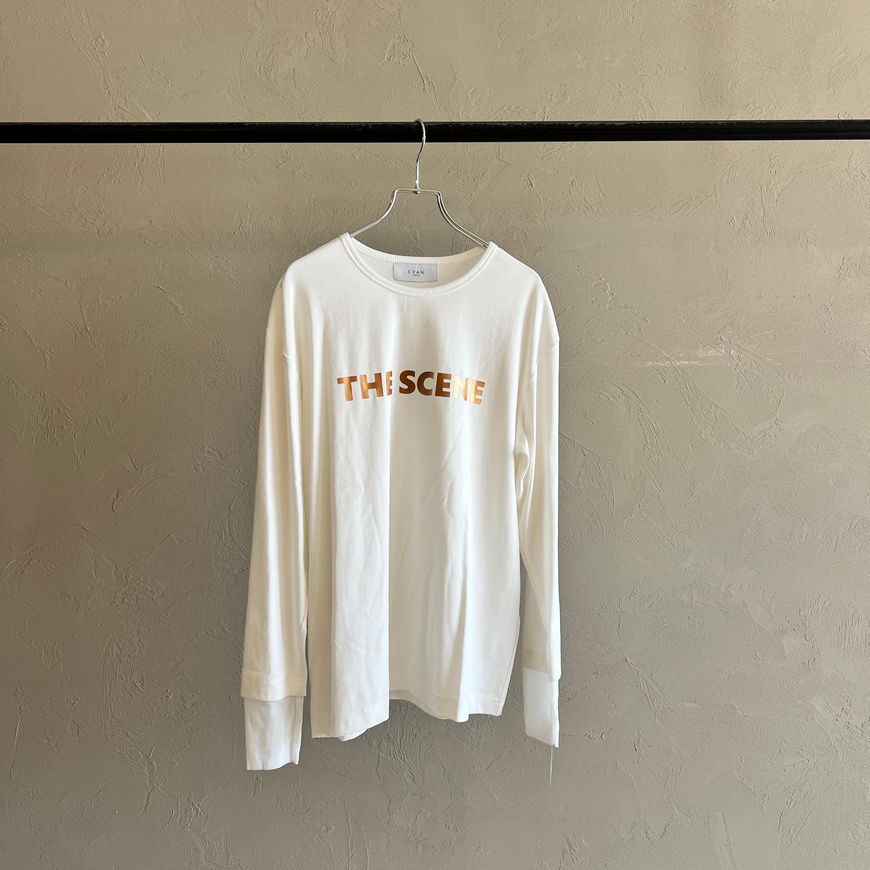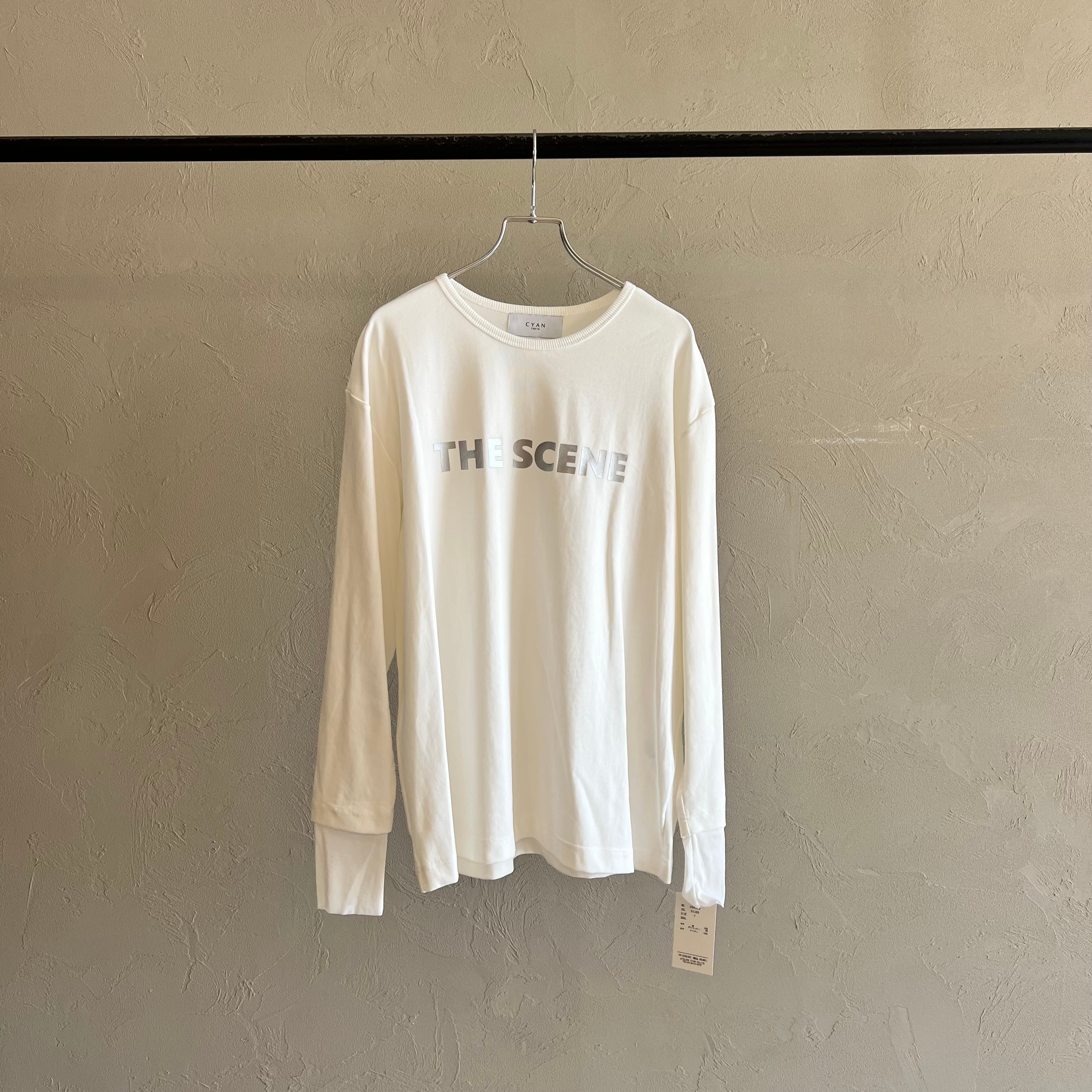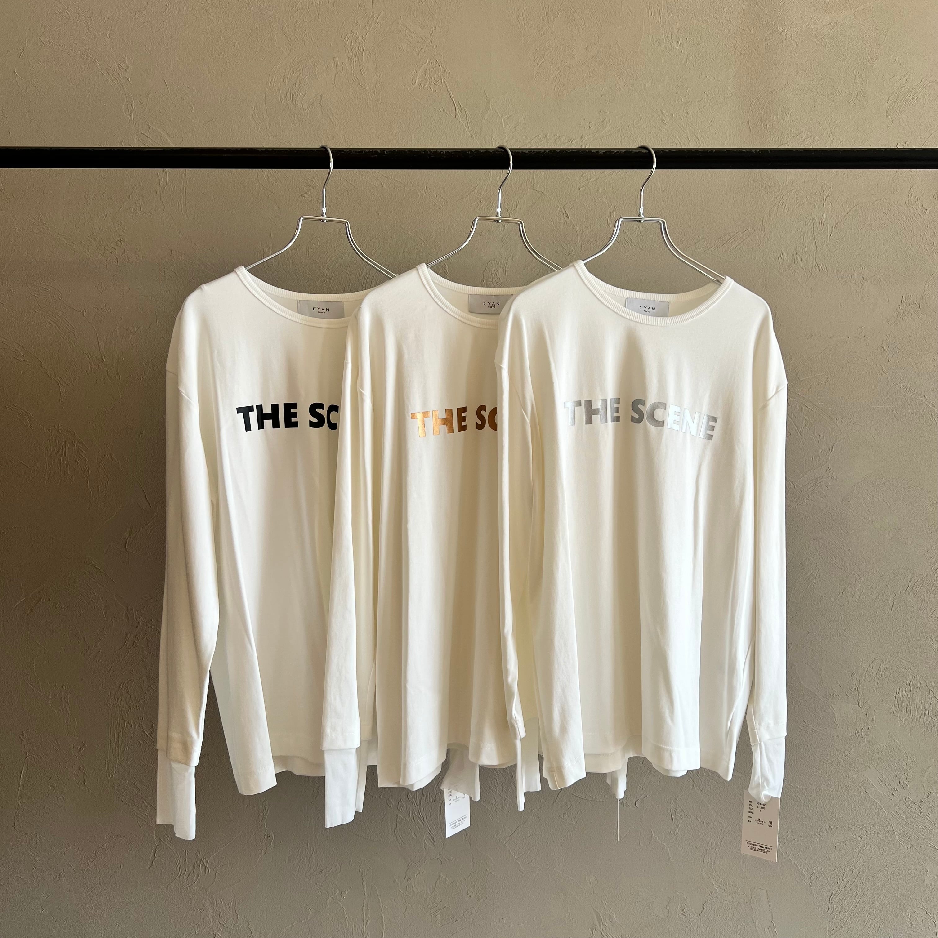 【CYAN TOKYO】のチュールスリーブロゴL/S Tはシンプルながらも“THE SCENE”のロゴが目を引く洗練デザイン。