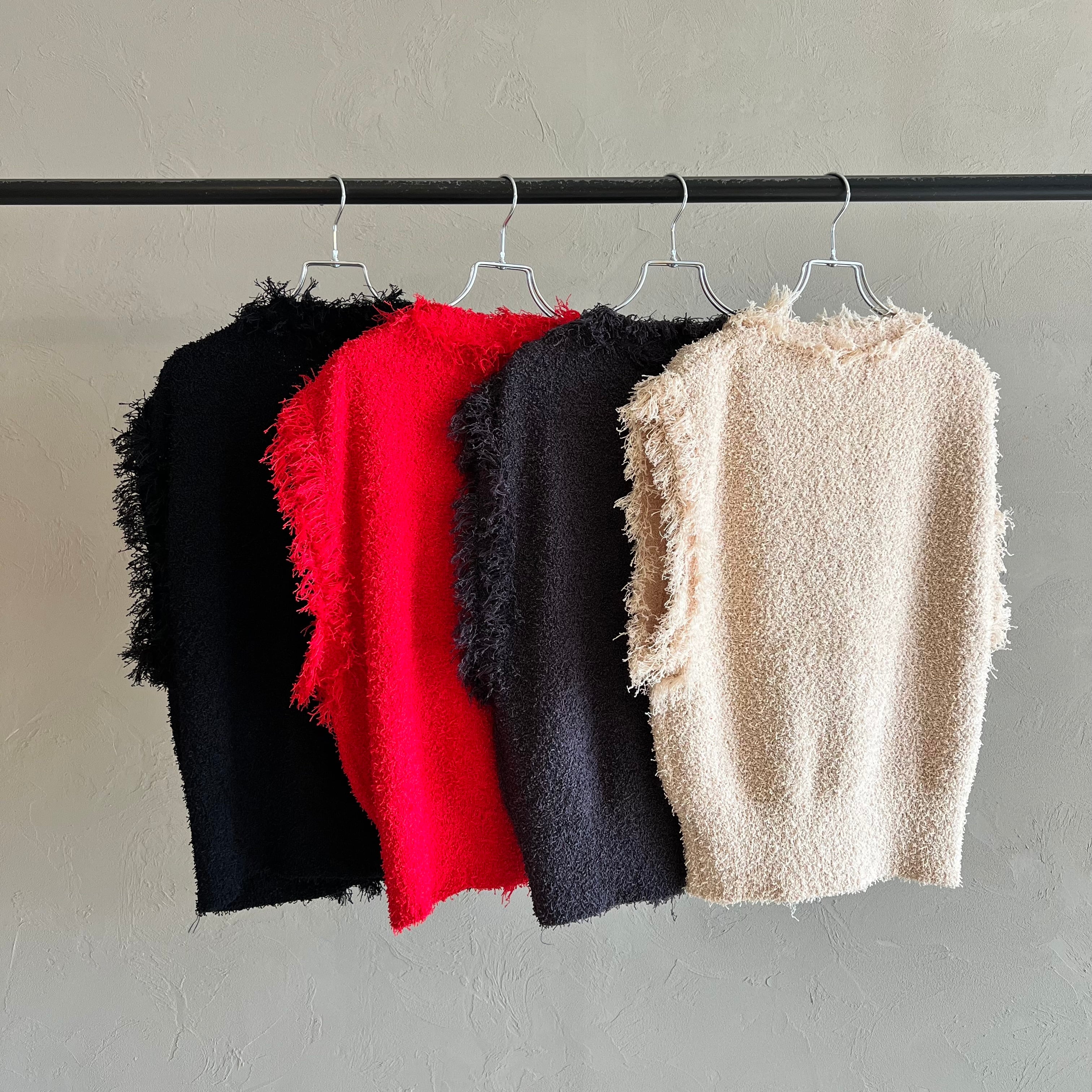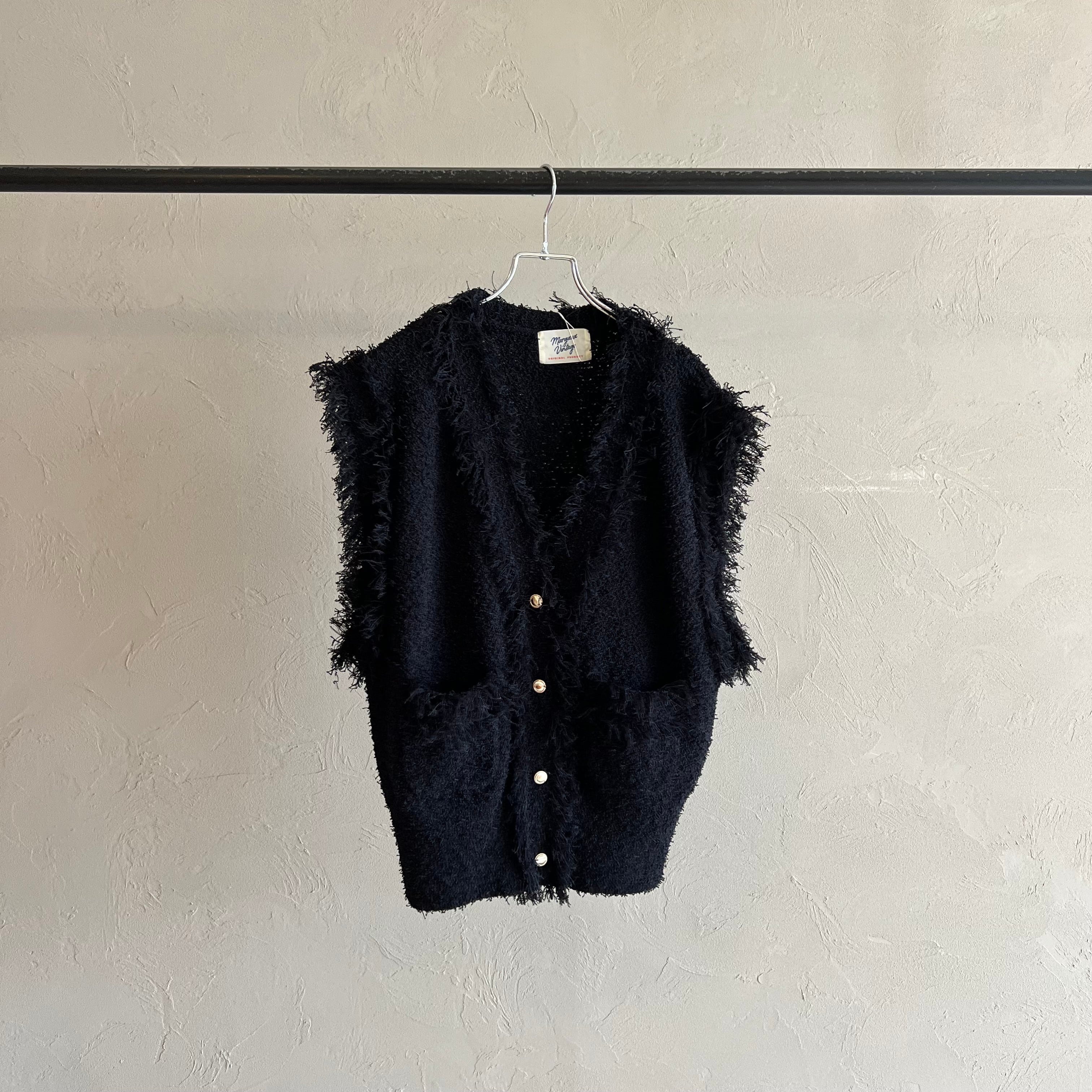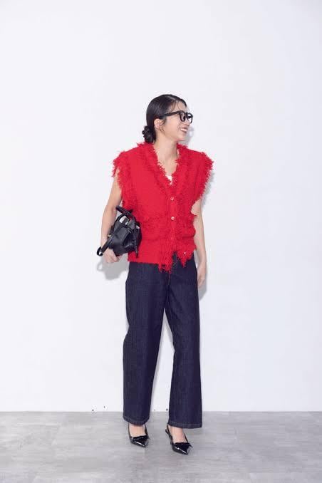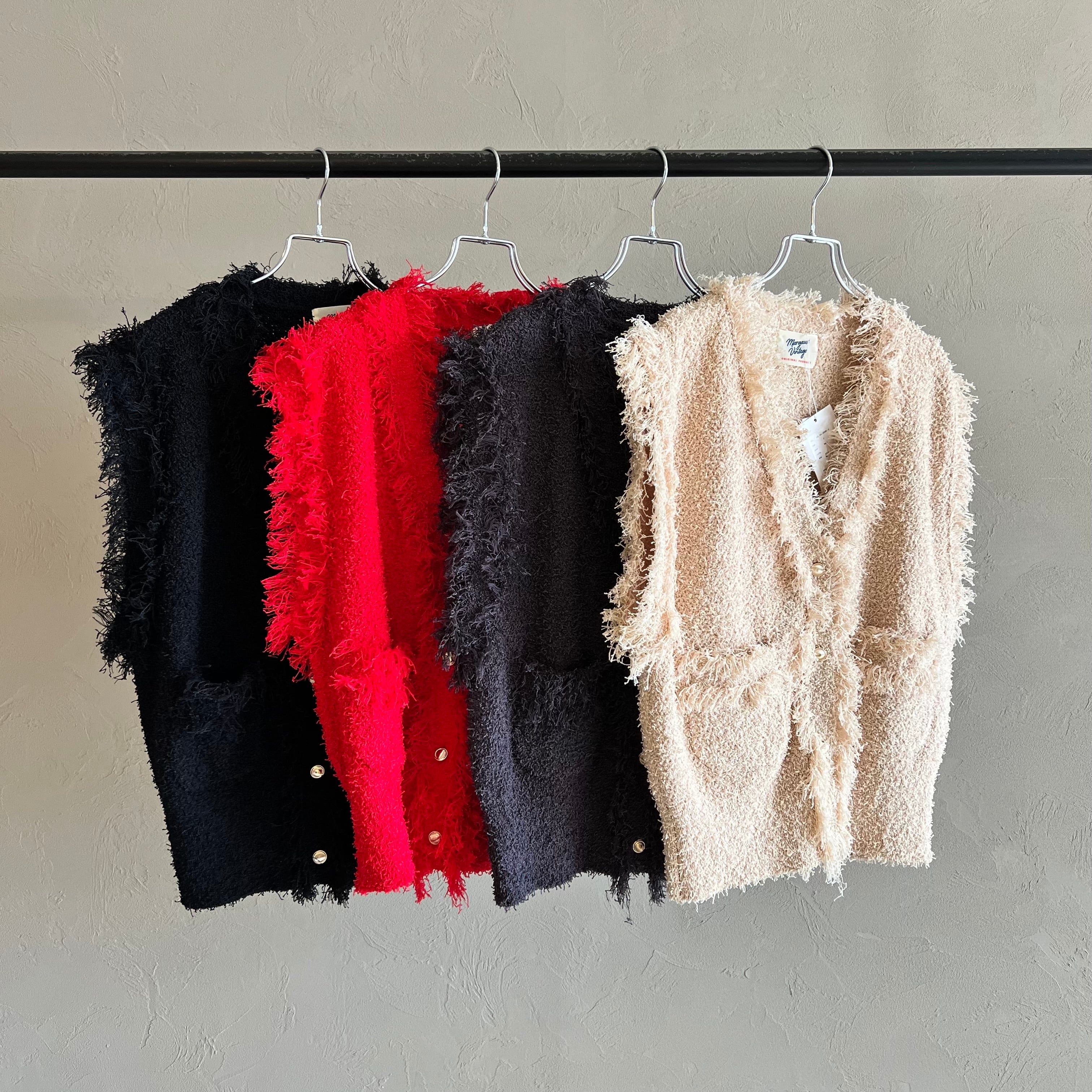 【MARGAUX VINTAGE】のシャネル風ベストは、他にない大胆なフリンジと華やかな赤が視線を惹きつける主役級アイテム。