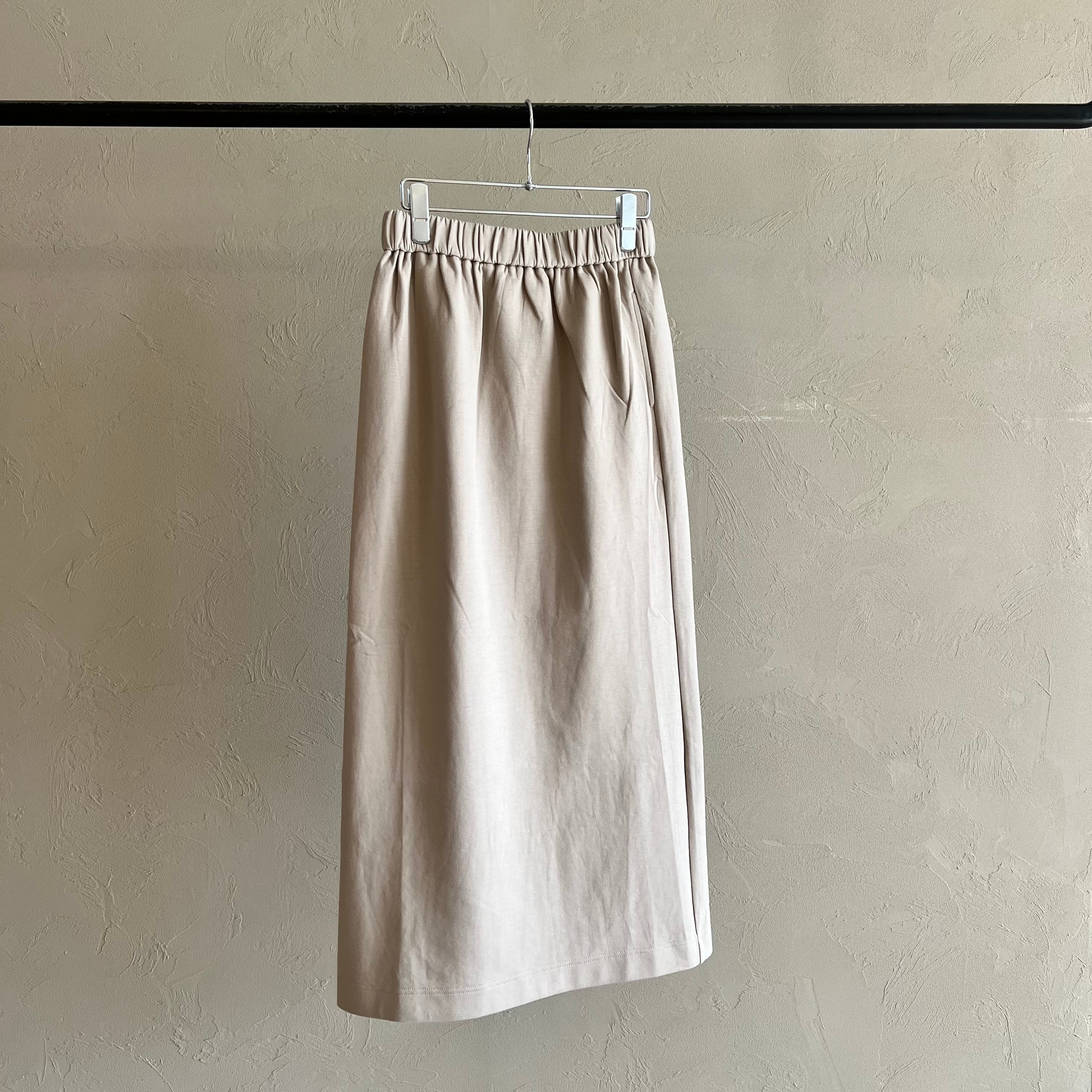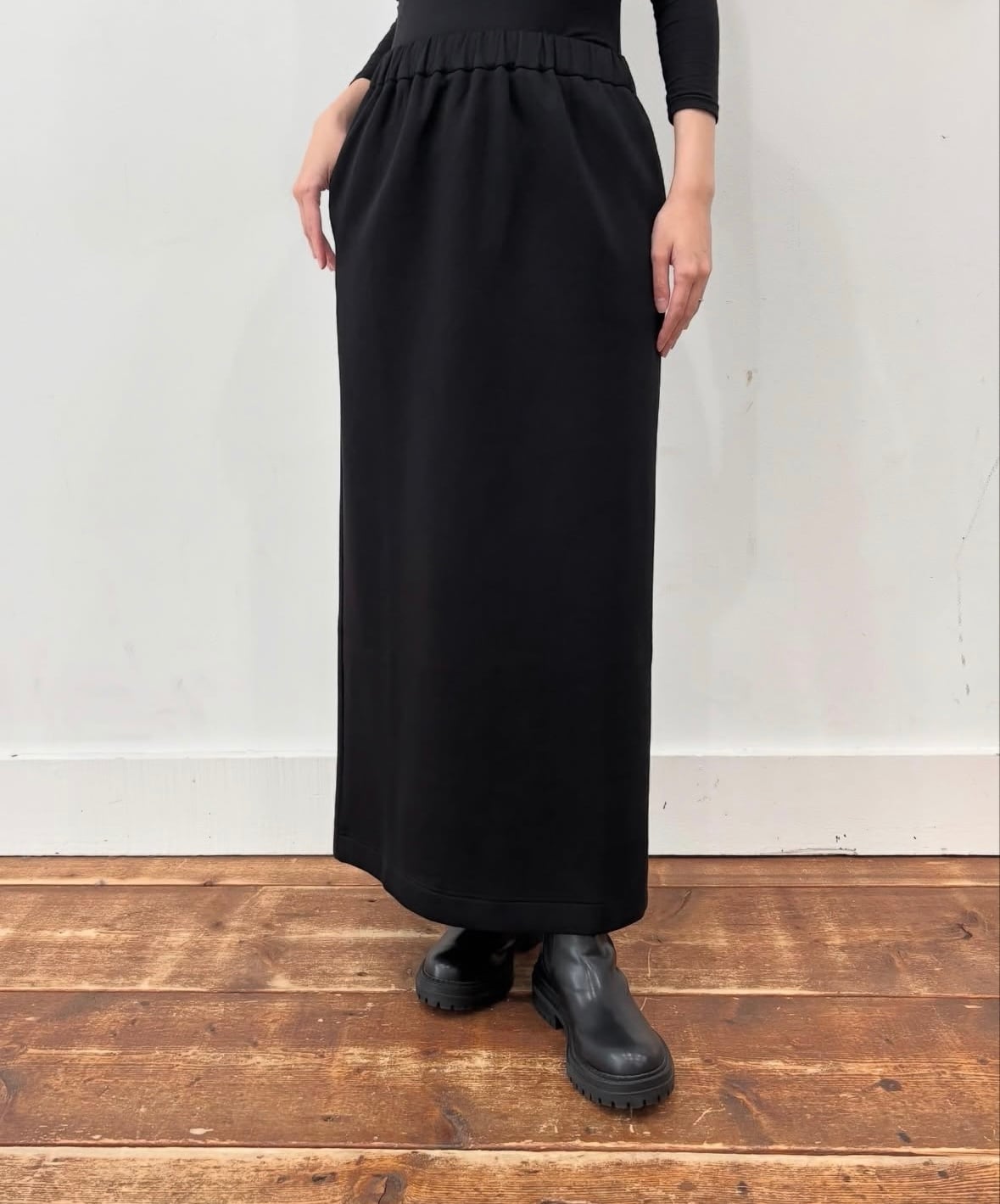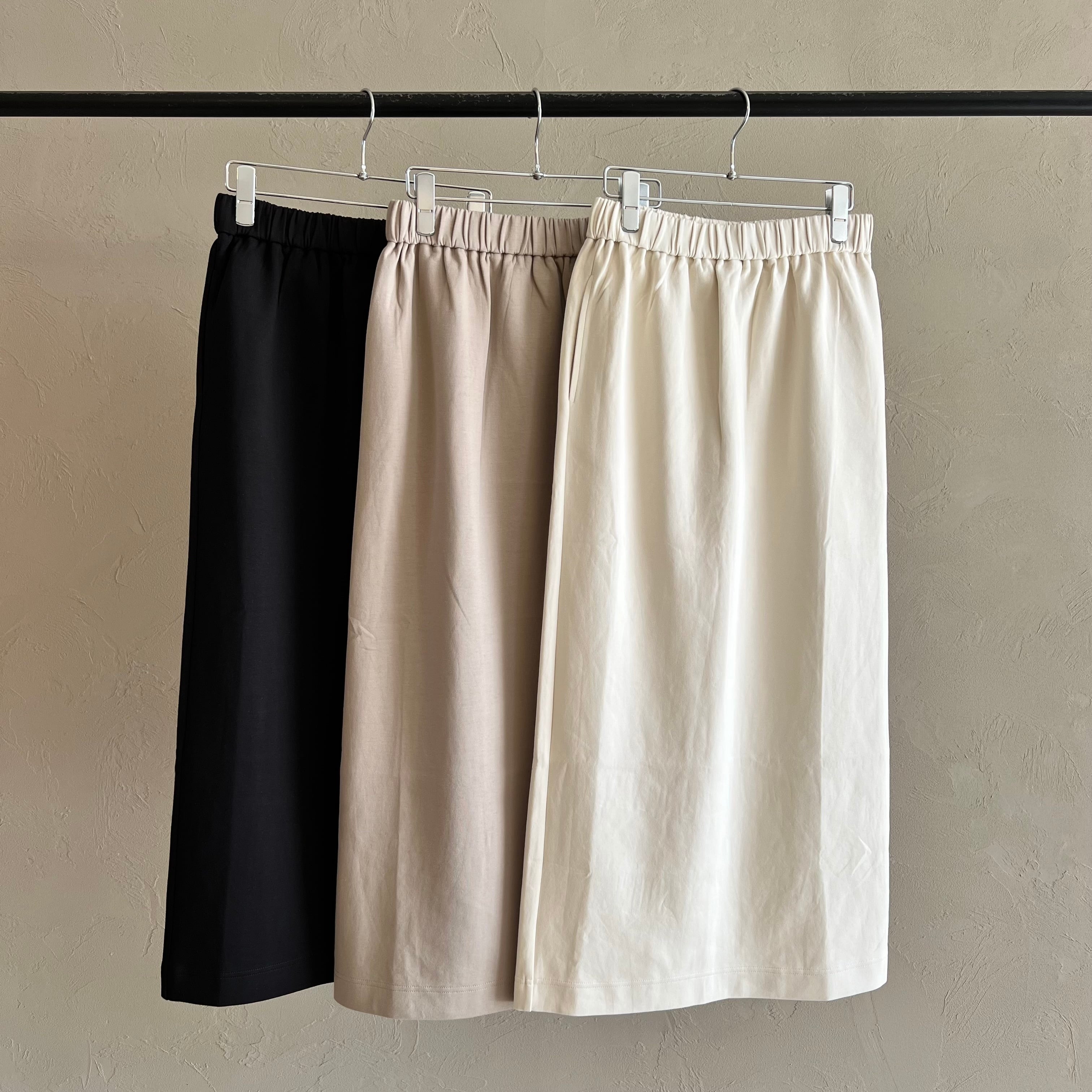 伸縮性に優れていて程よく厚みがありボディラインを拾わない素材を使用したタイトスカート。
