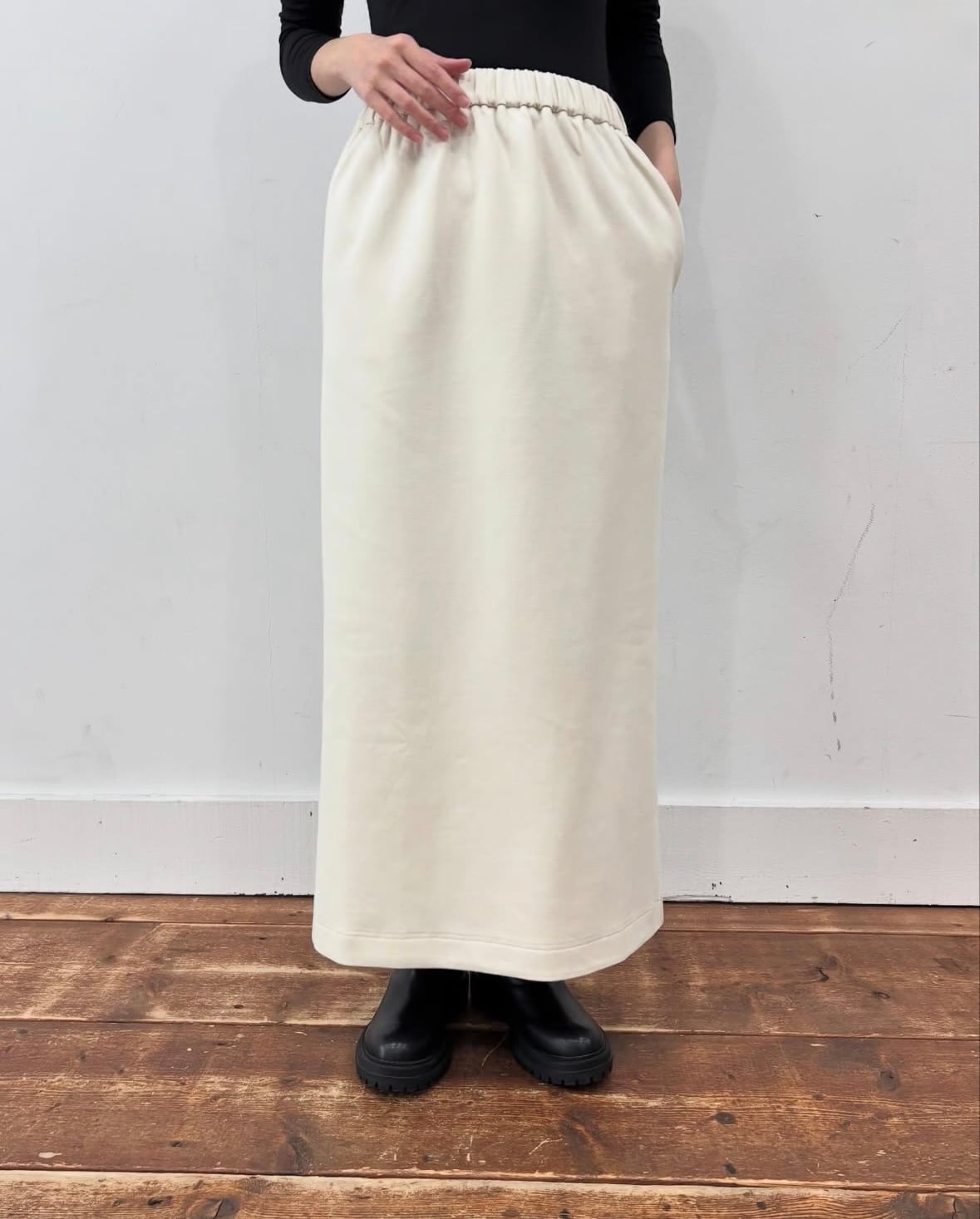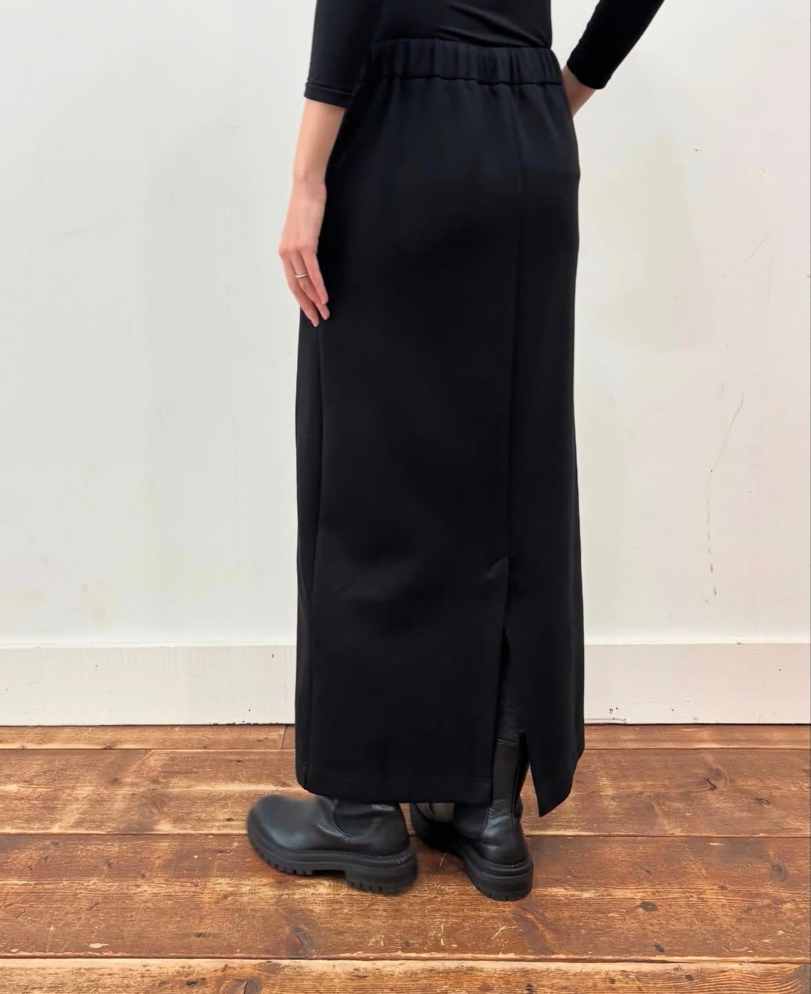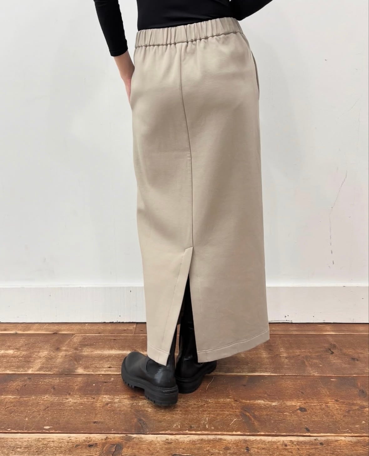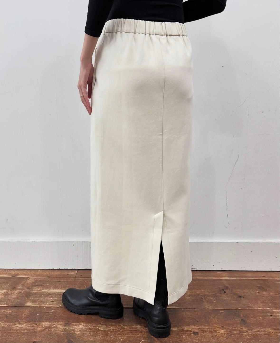 伸縮性に優れていて程よく厚みがありボディラインを拾わない素材を使用したタイトスカート。