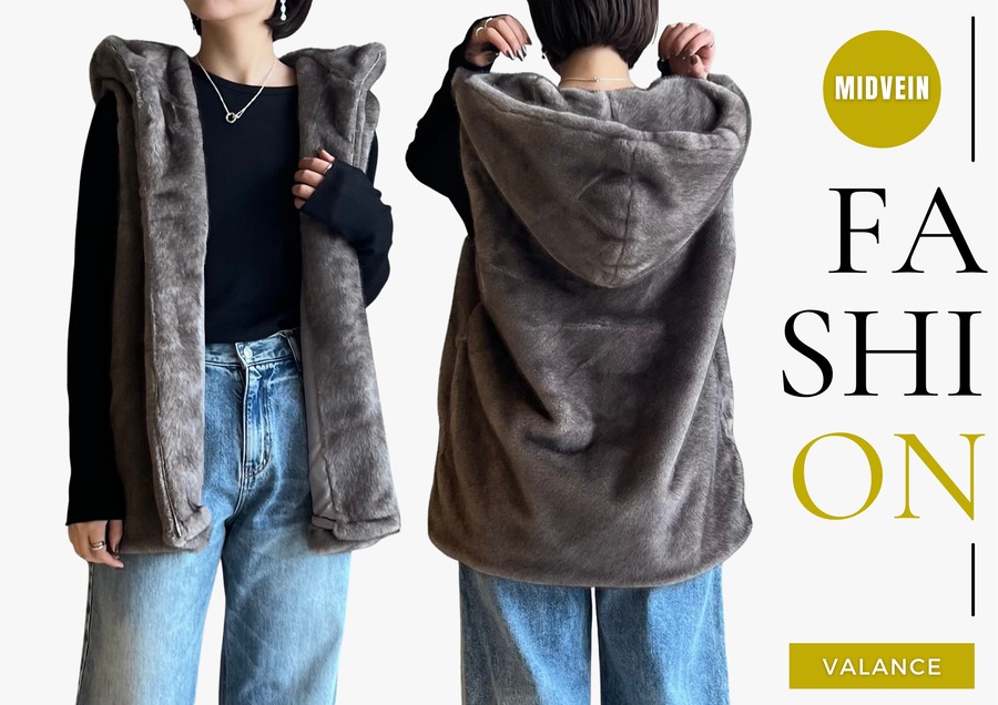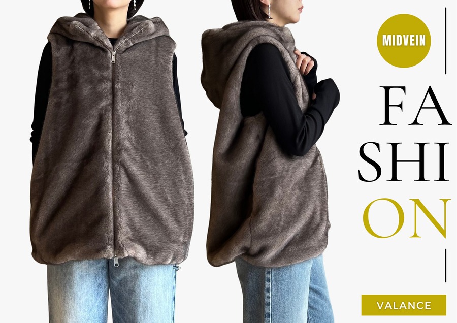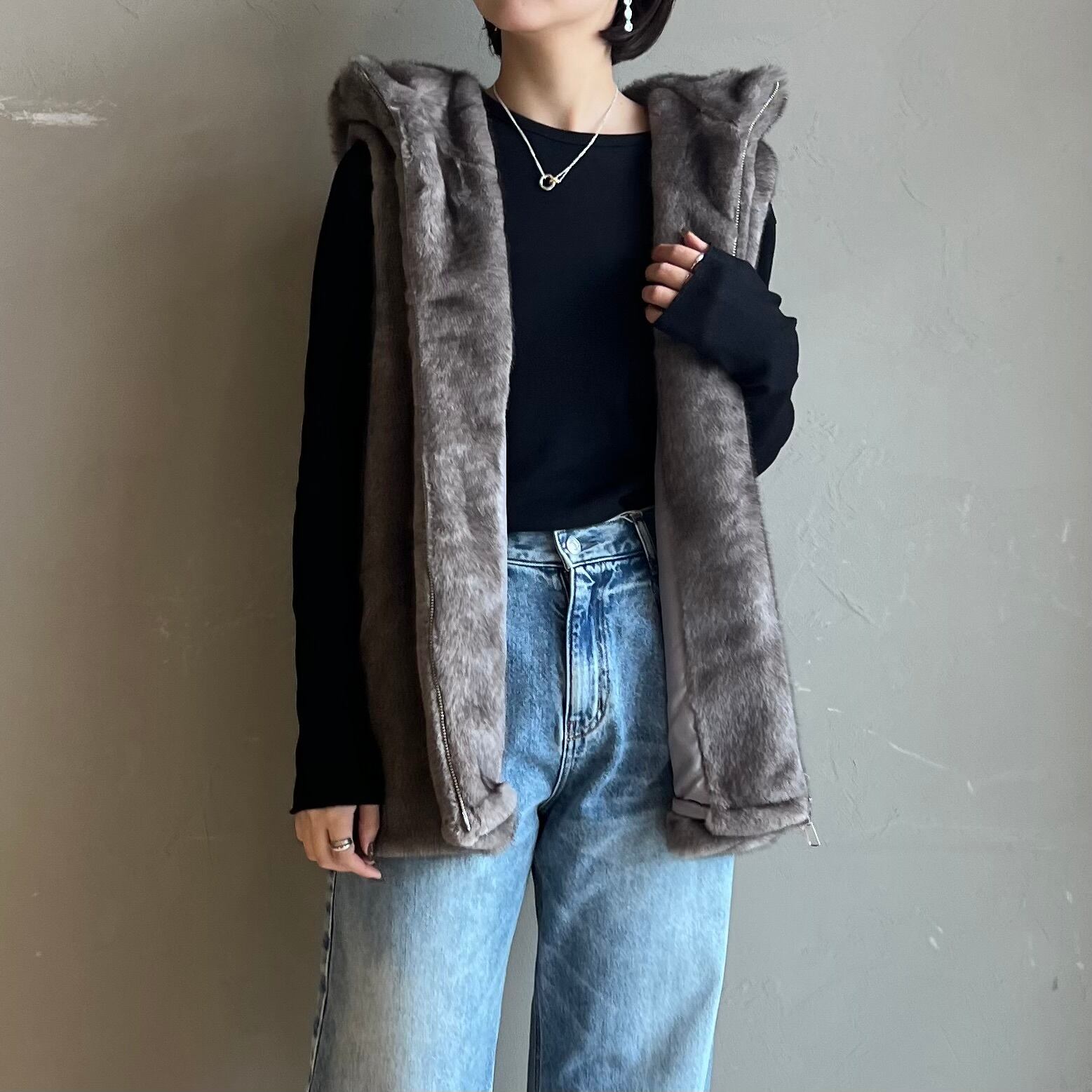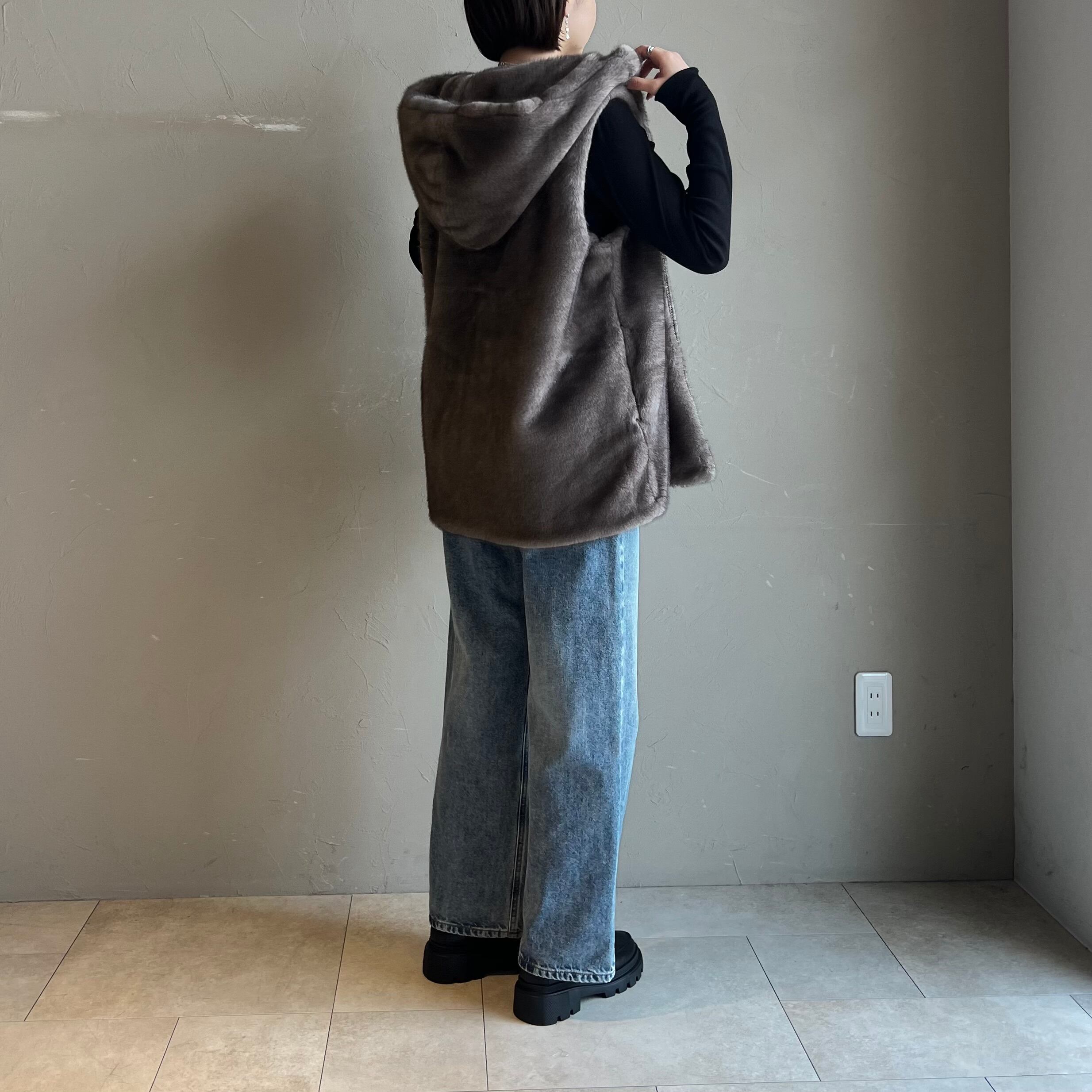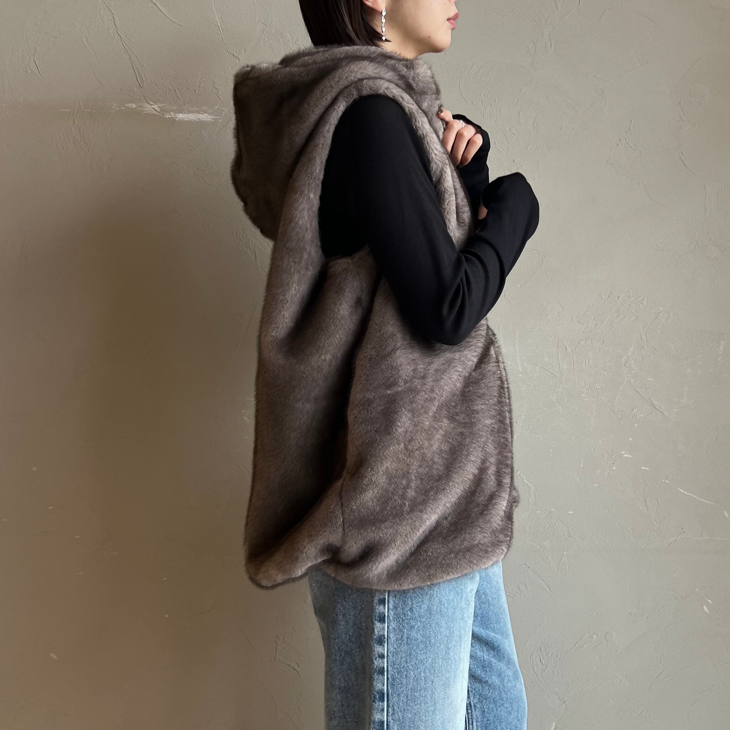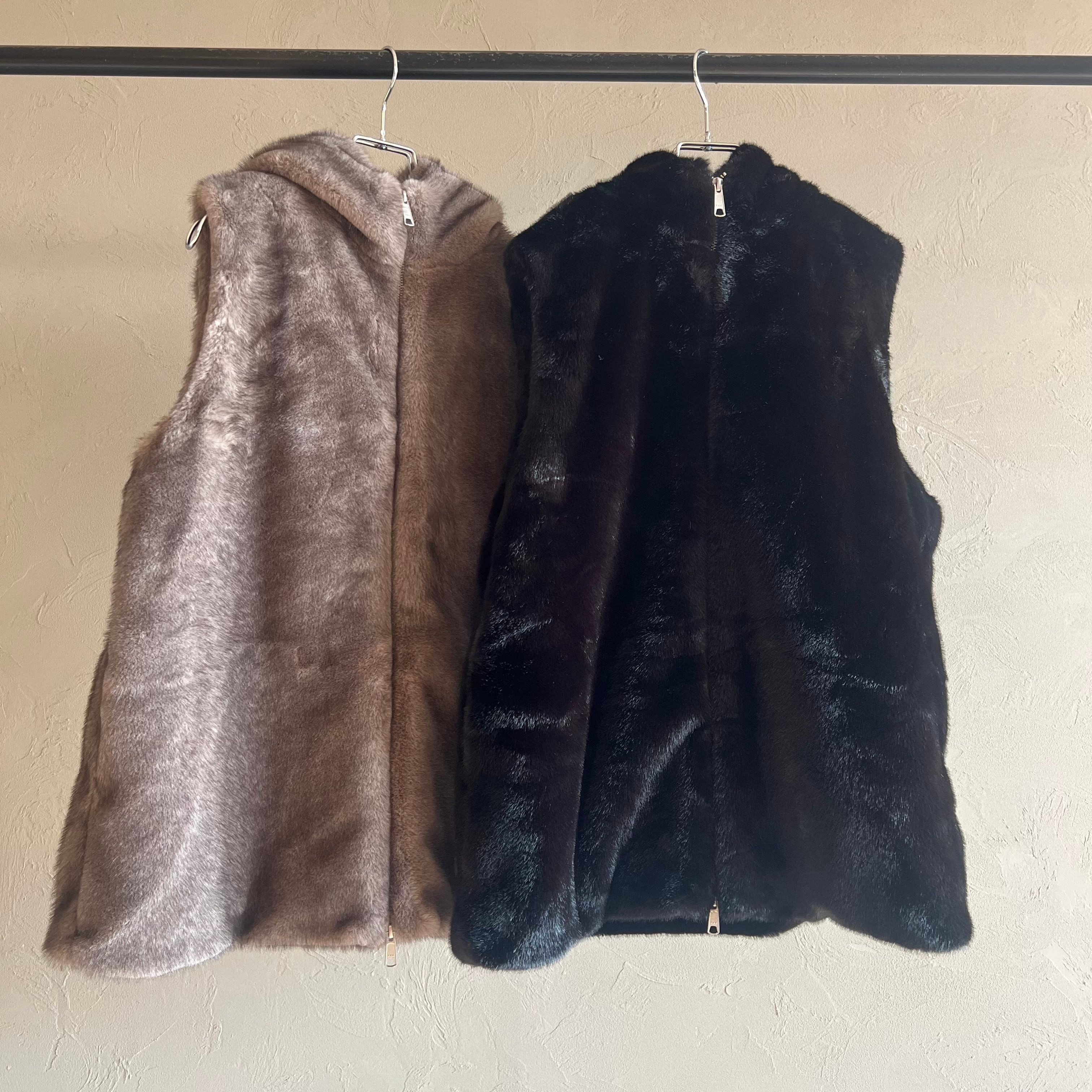 【 MIDVEIN 】ミンク調ファーフーディベスト