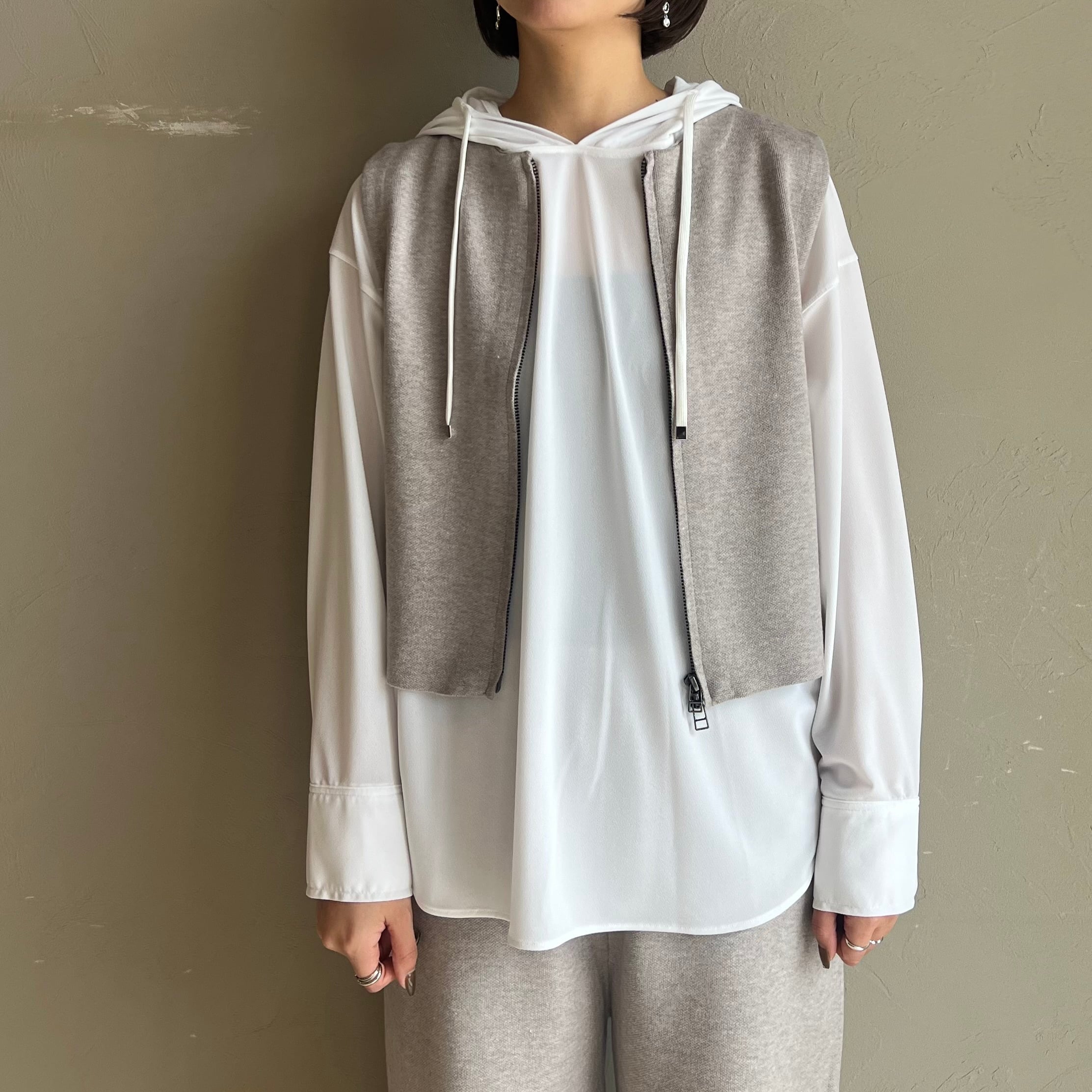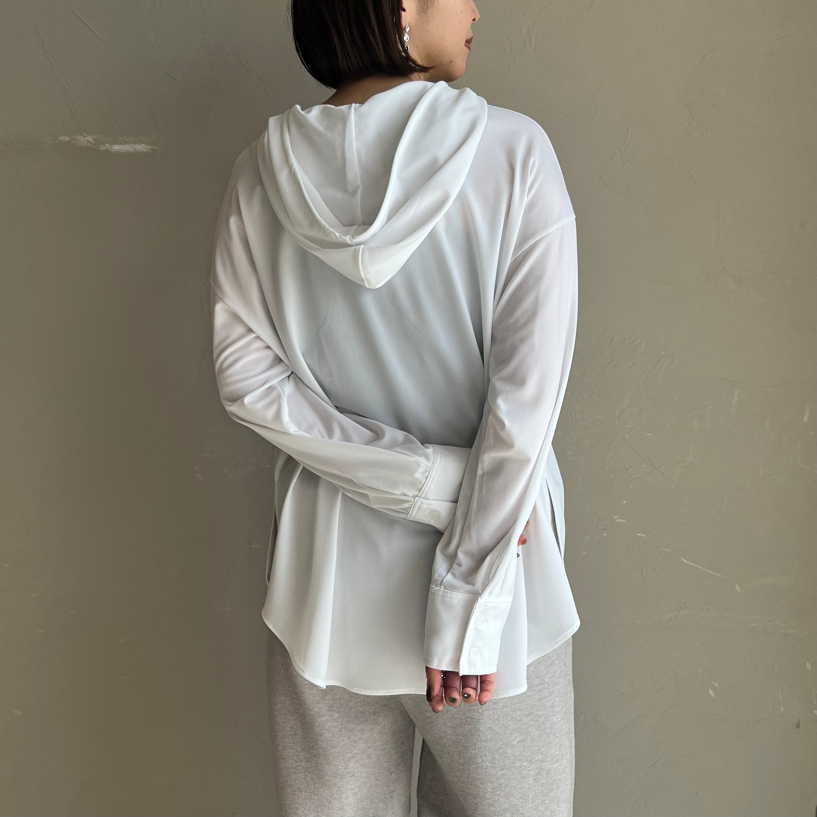 パーカーのカジュアルさを融合させた、新感覚の「ブラウスパーカー」です。