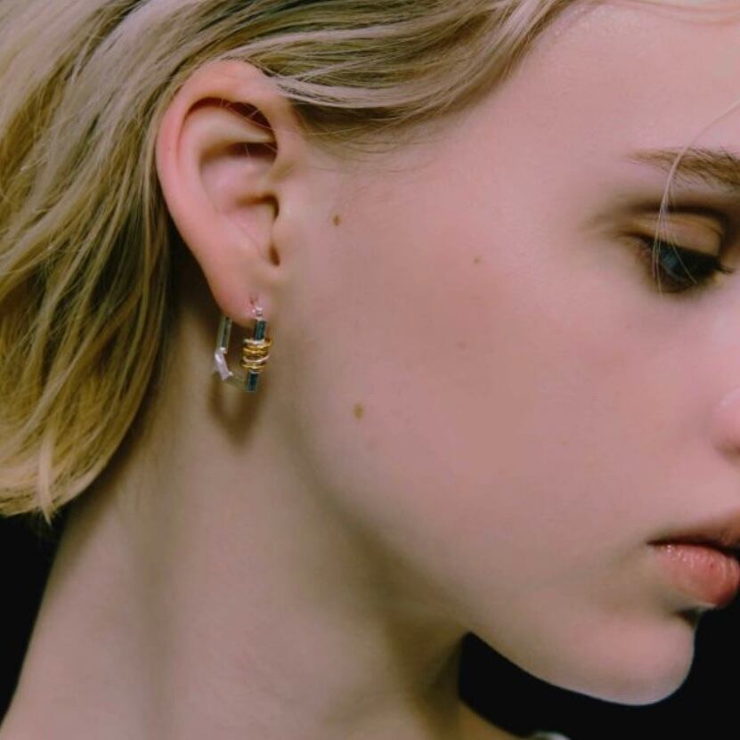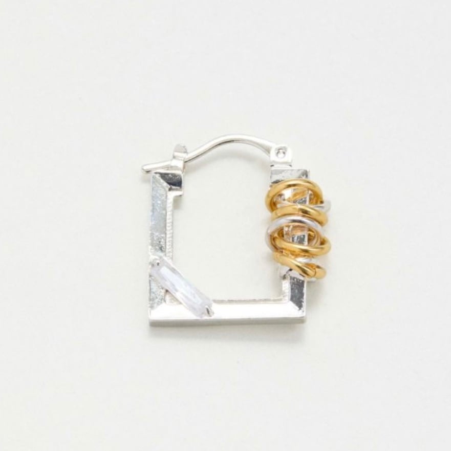シャープなフレームデザインで、洗練された印象を与えるピアス。