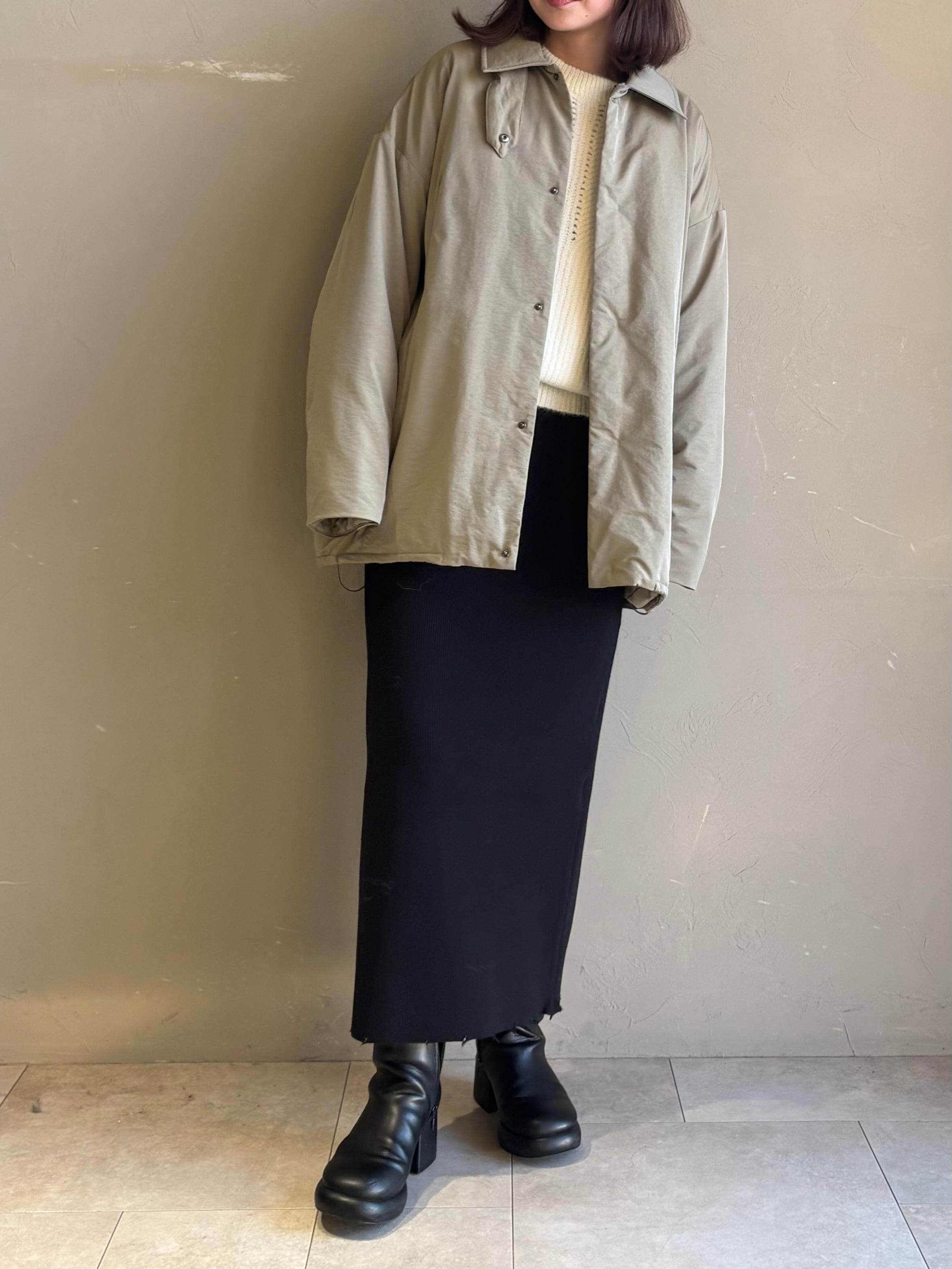 トレンドのステンカラーの中綿コートです。