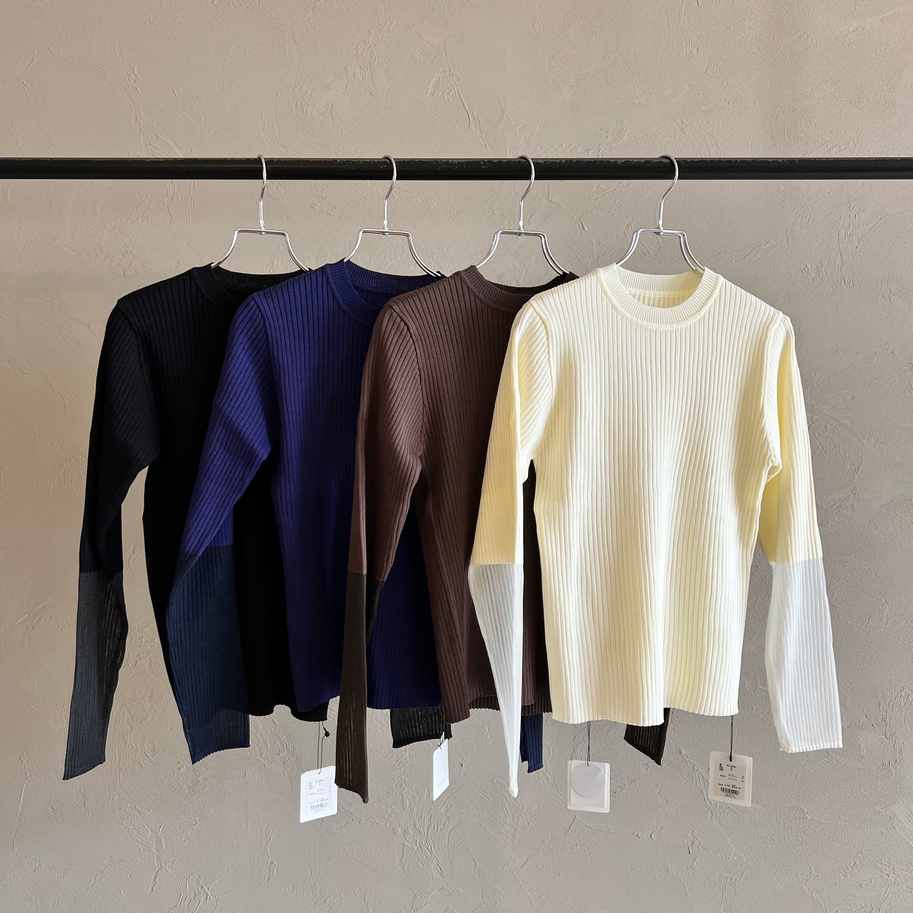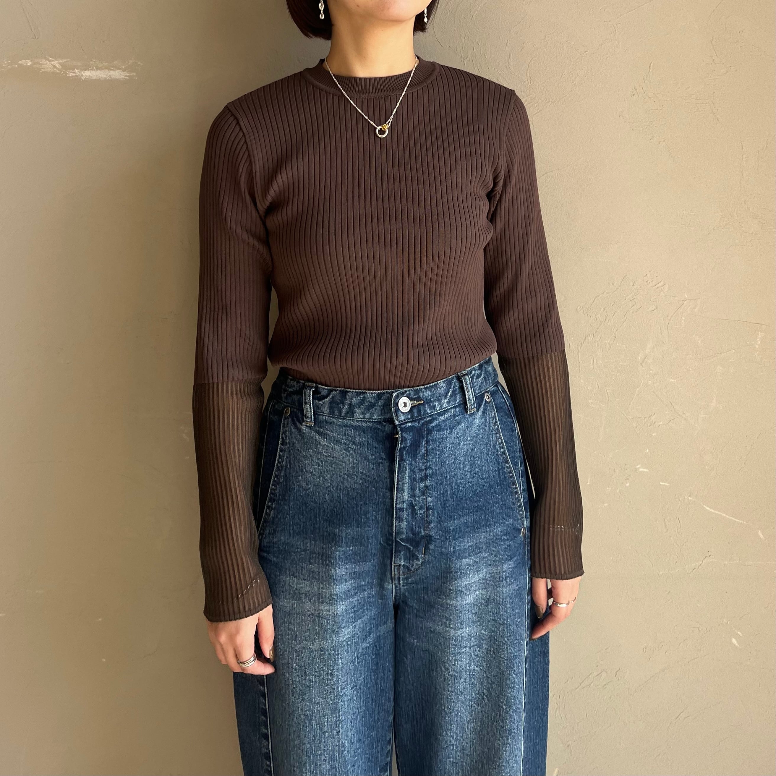 【CLOCHE 袖シアーリブニット】は、シンプルながらも袖の透け感が女性らしい抜け感を演出してくれる大人のための一枚。