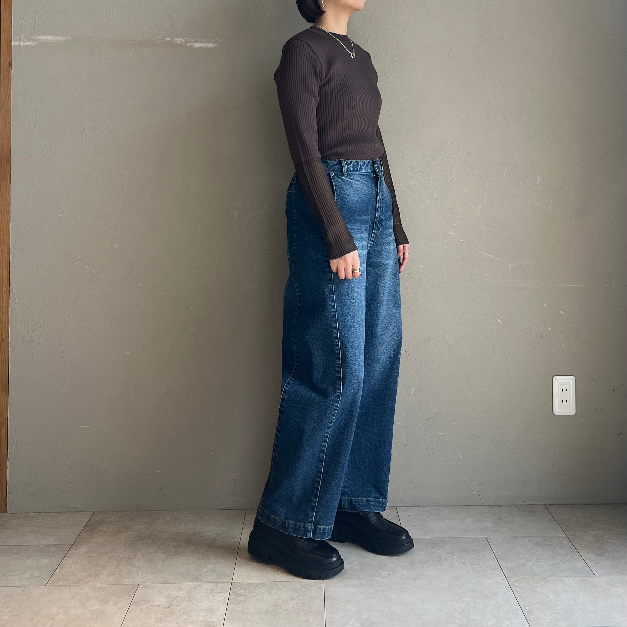 ほどよく身体に沿うリブ素材がスタイルを美しく見せ、デニムやスカートとも相性抜群。