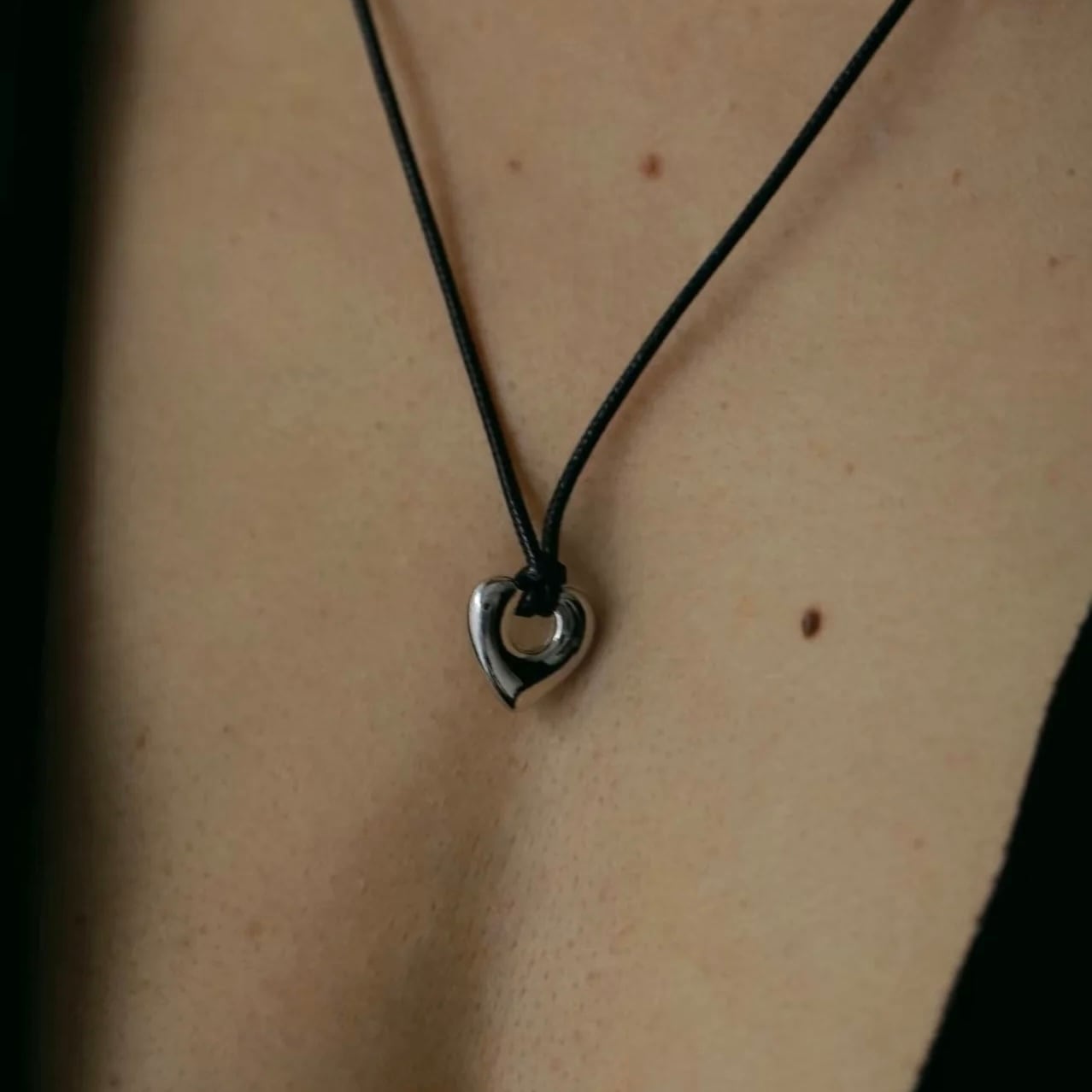 【 TRES 】Leather heart Necklace (Black×Silver)
