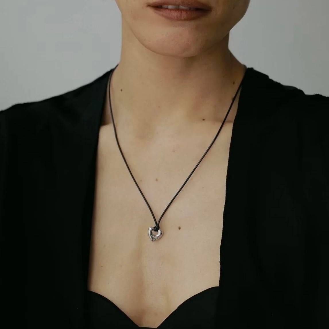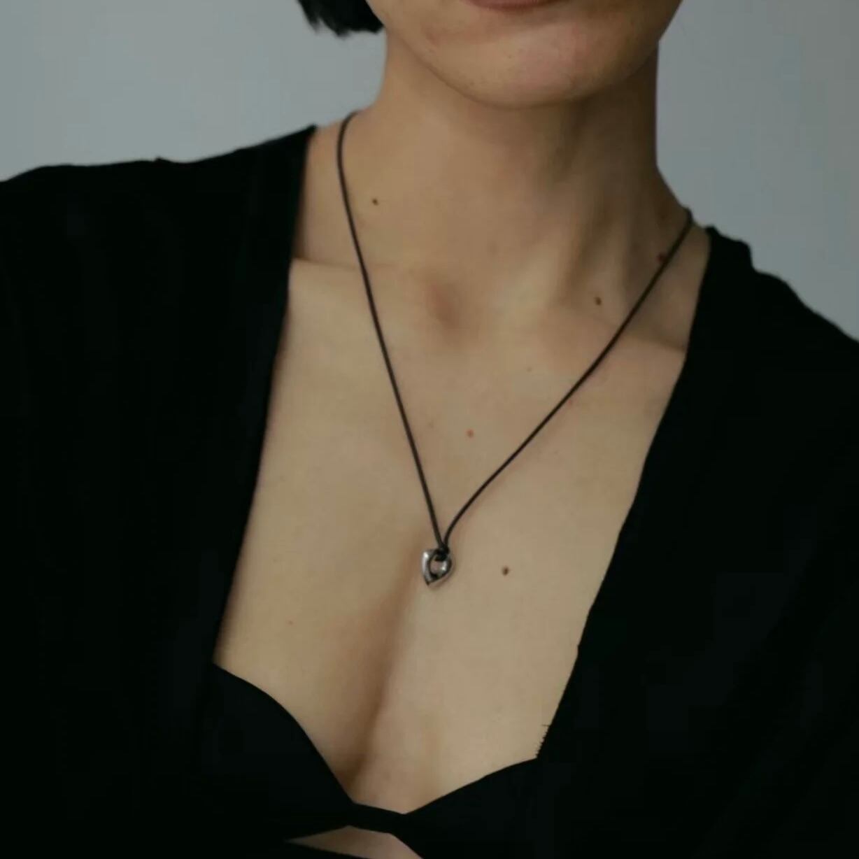 ハートモチーフのレザーネックレス。