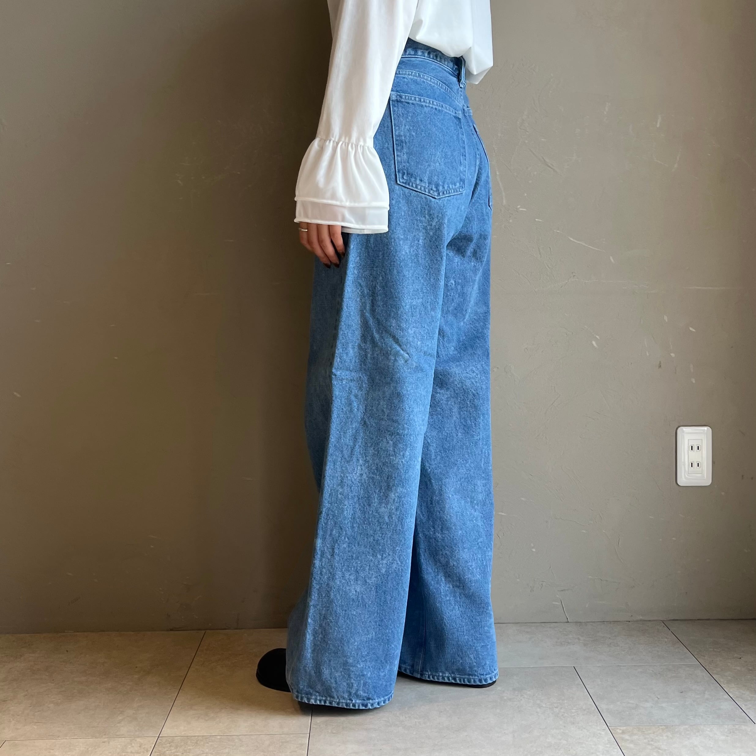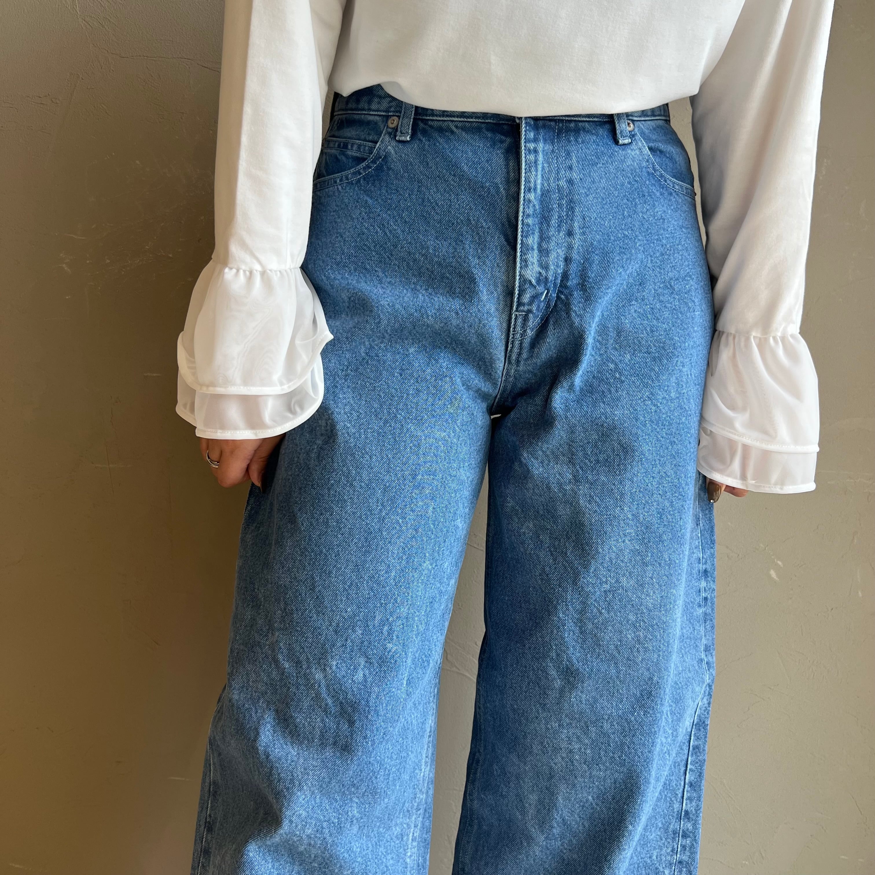 長い裾は裾をたるませて履くのはもちろん、ヒールにあわせあてシルエットを大胆にみせるのもおすすめです。