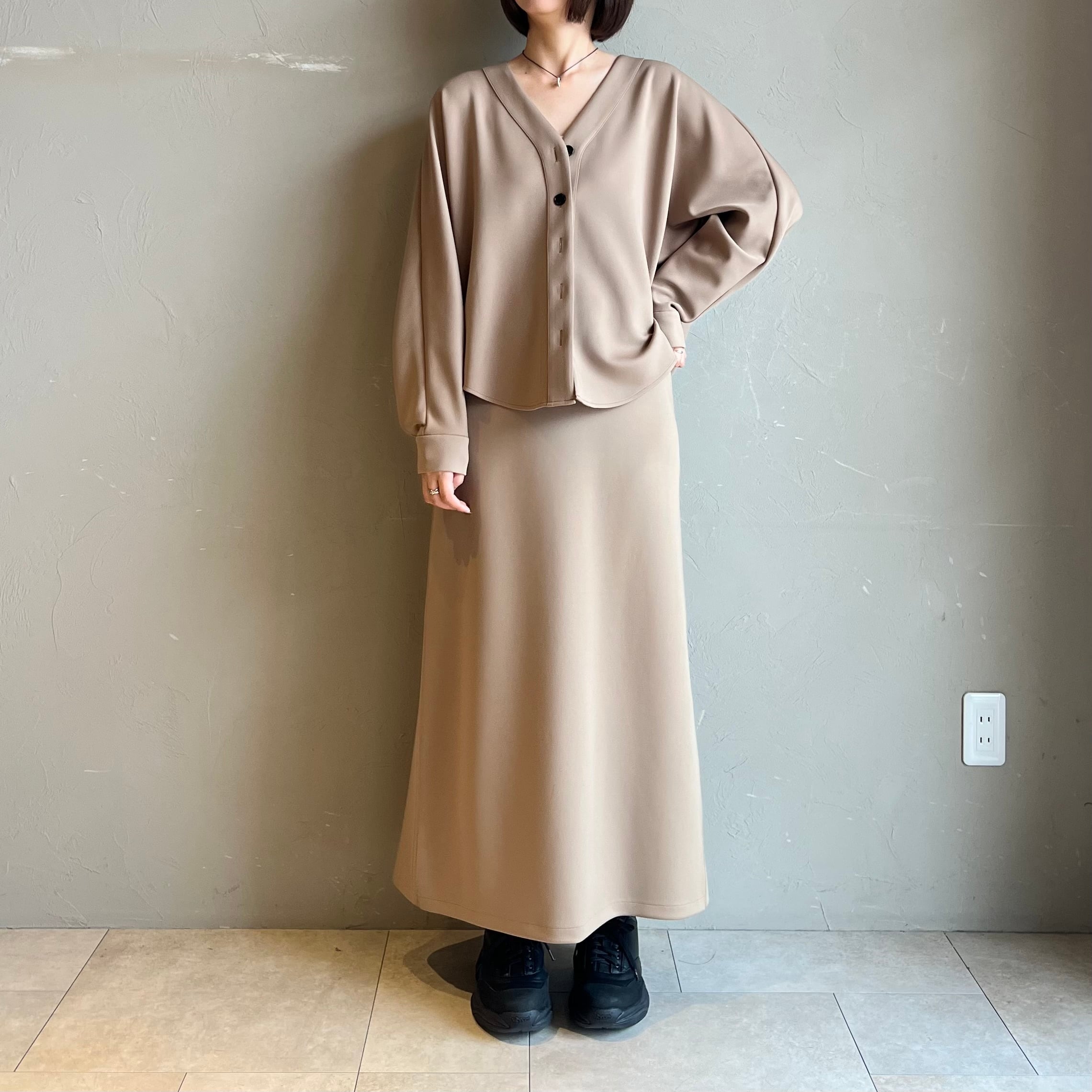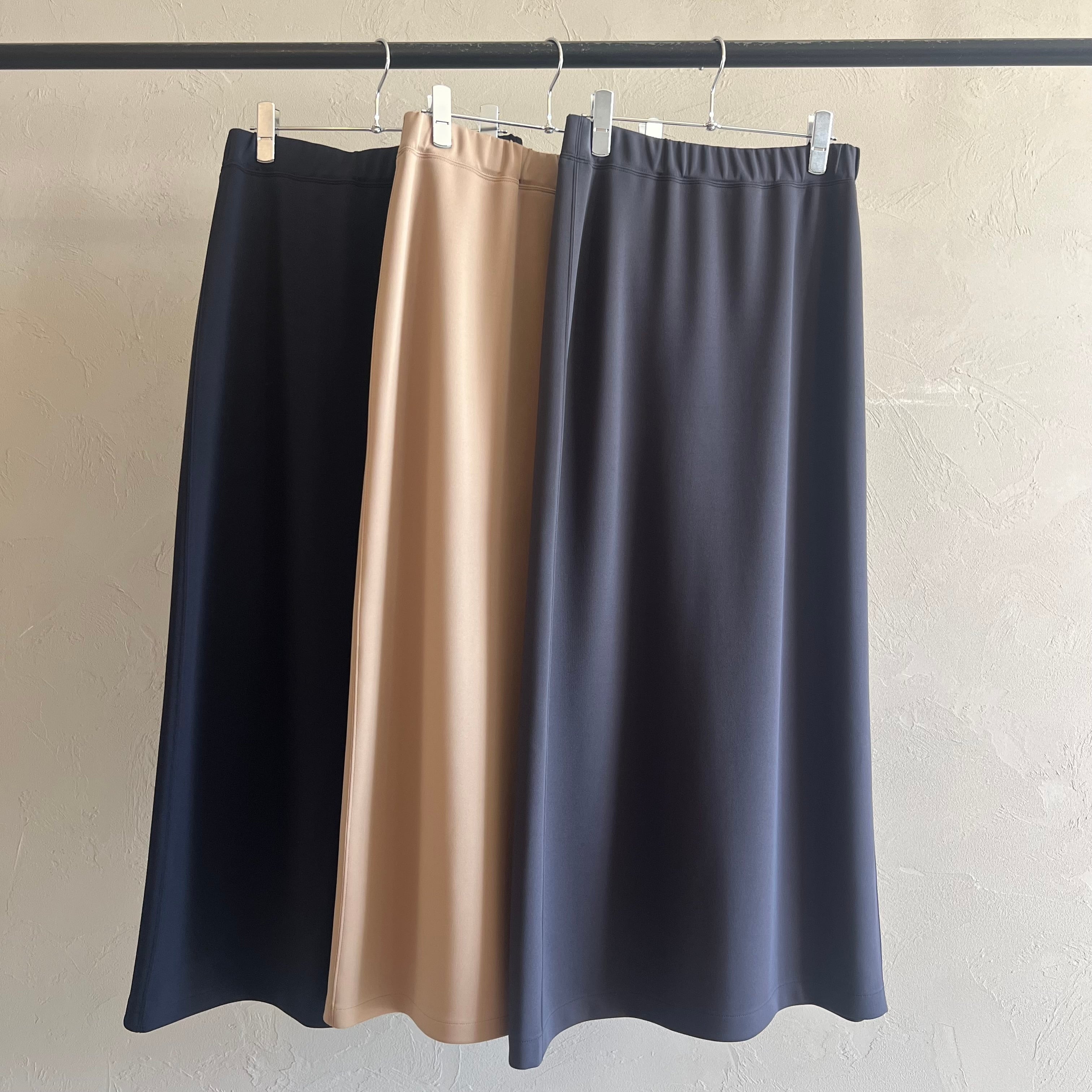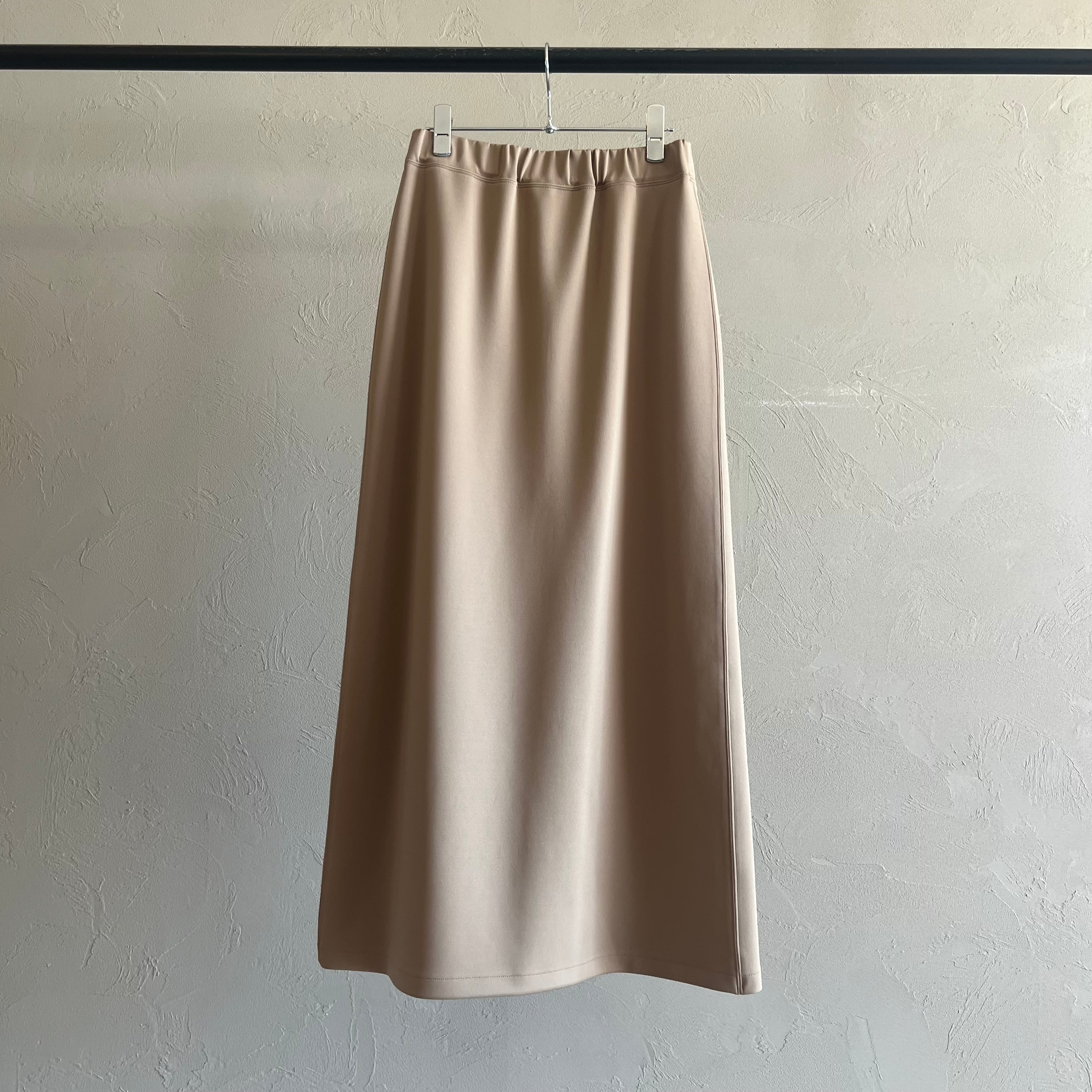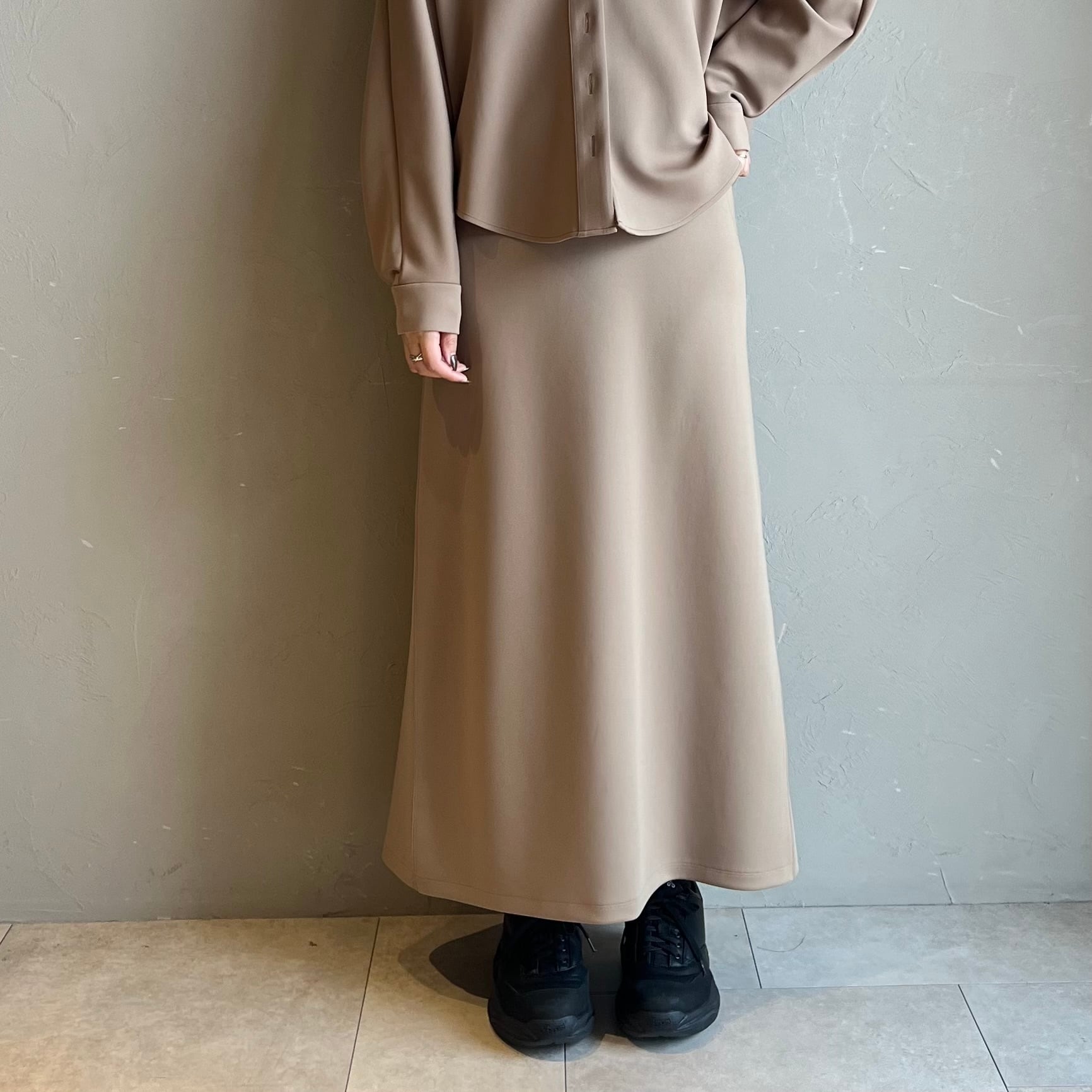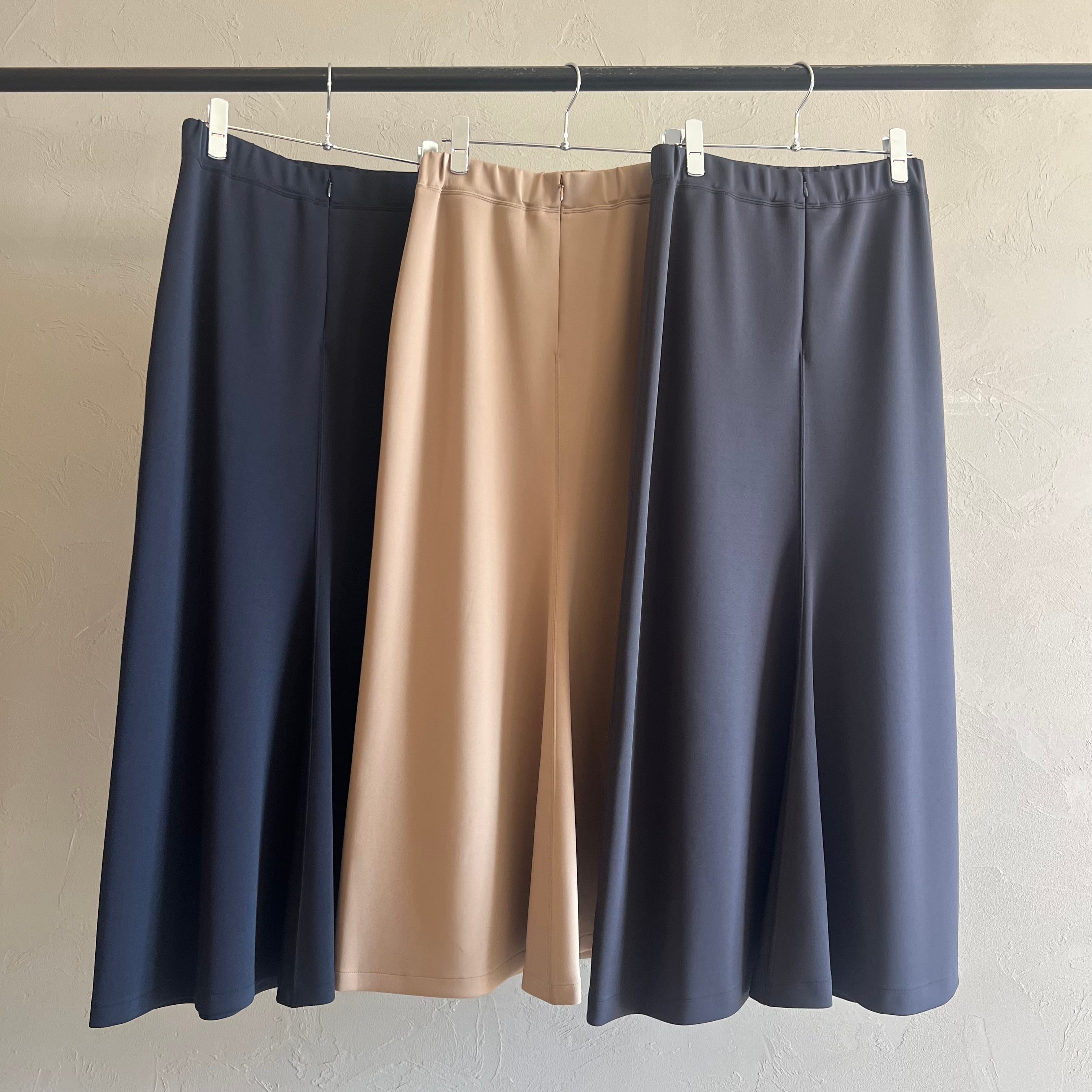 女性らしいシルエットを引き立てるダブルニット素材のバックフレアスカート。