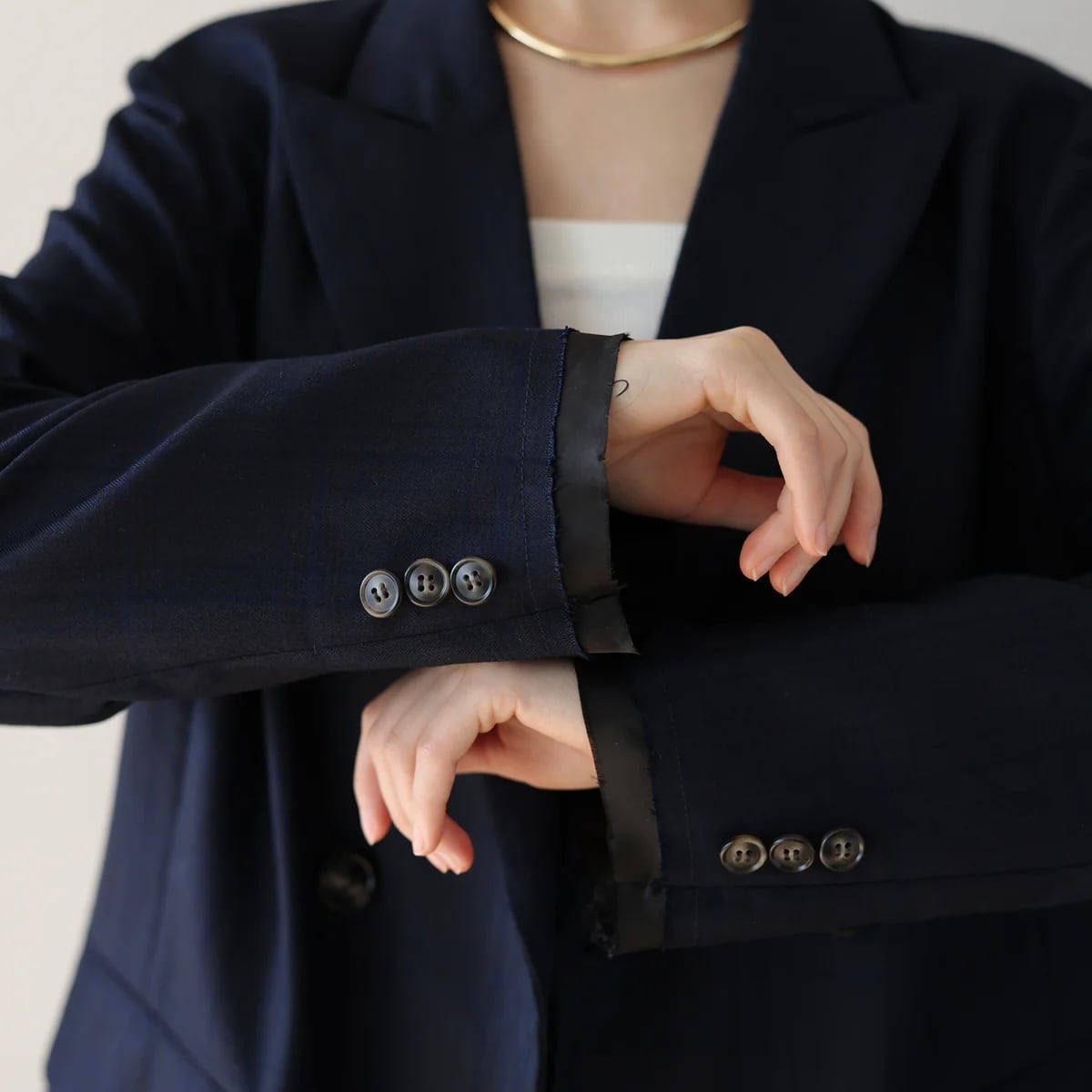 ・メンズっぽいダブルジャケットでトレンド感を演出。