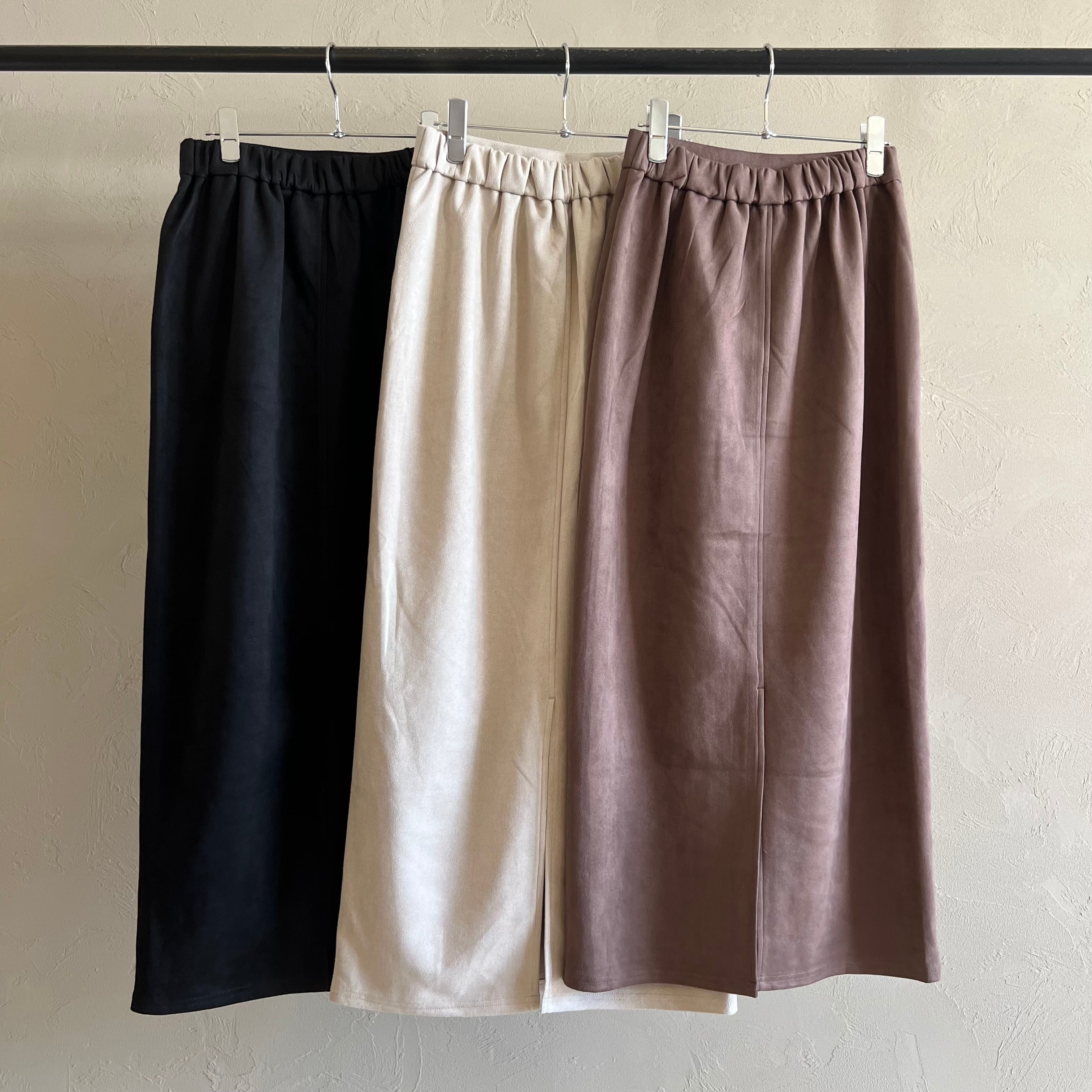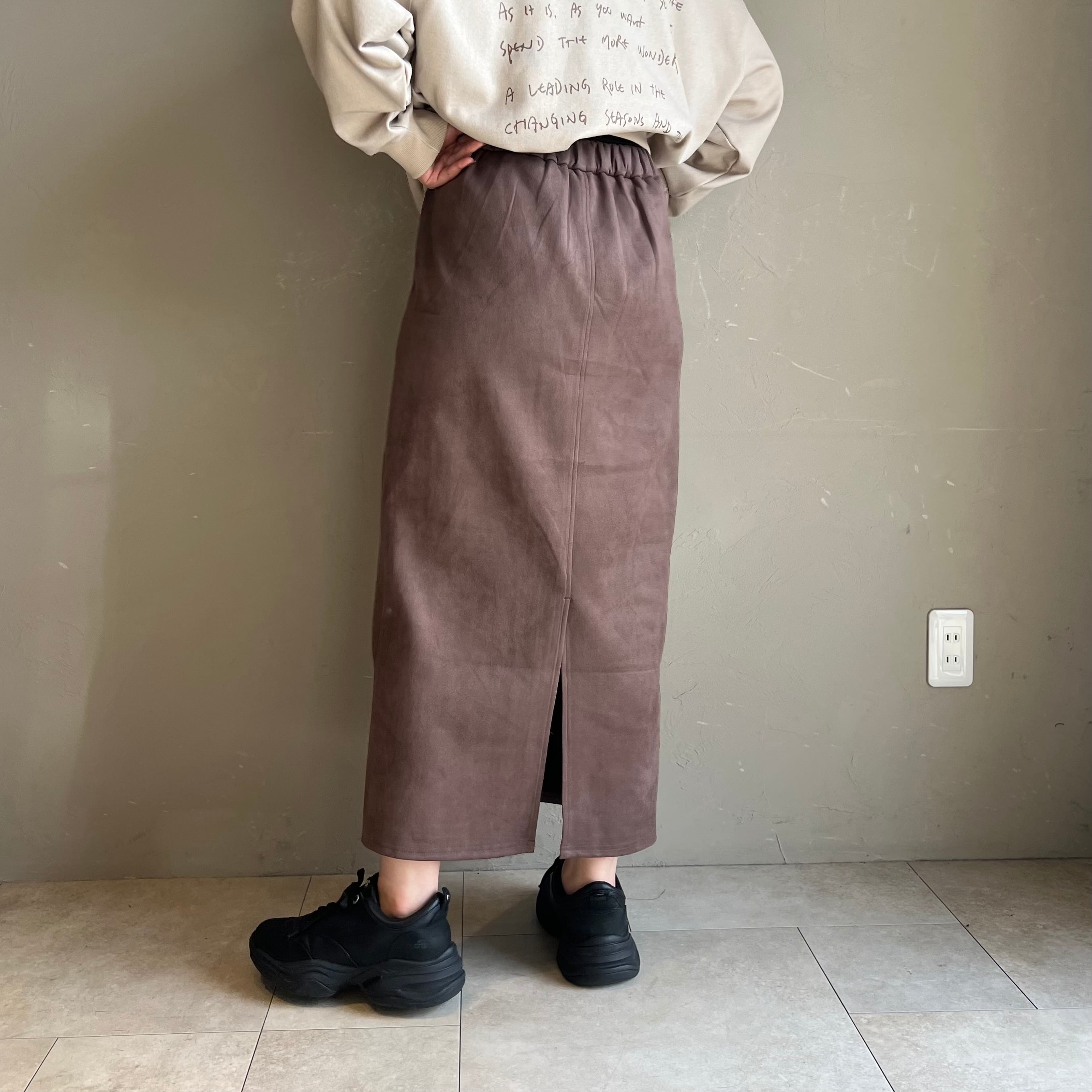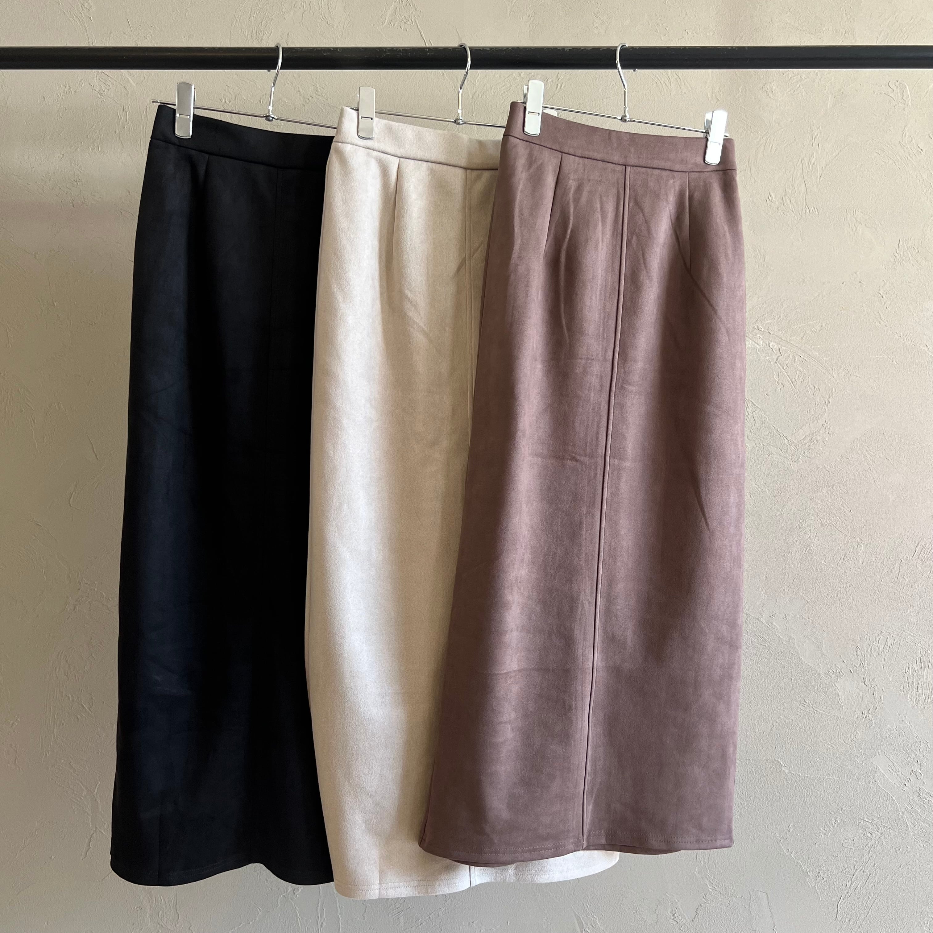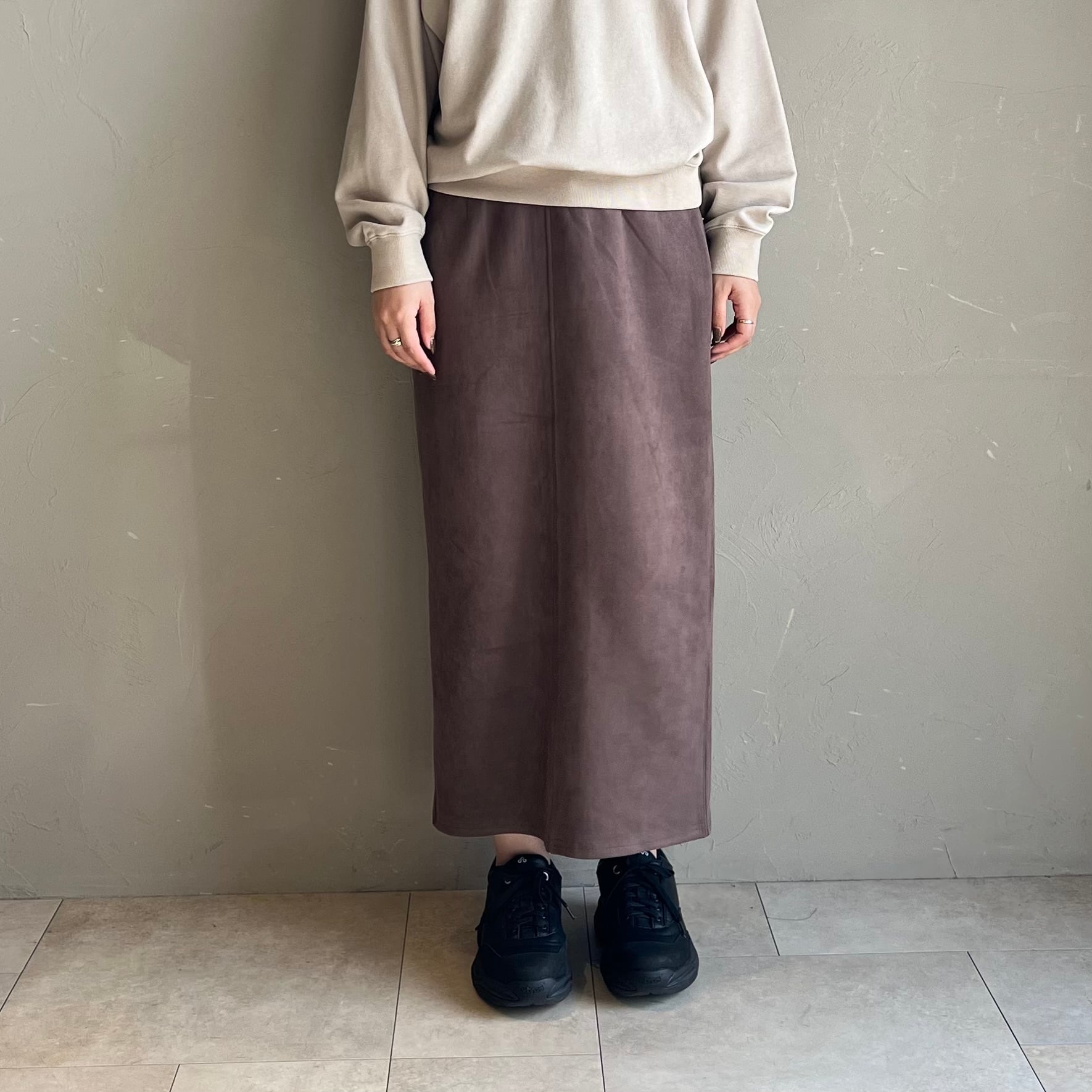 【CLOCHE スウェードIラインスカート】は、上品なスウェード調素材とすっきりとしたIラインシルエットで大人の女性らしさを引き立てる一枚。