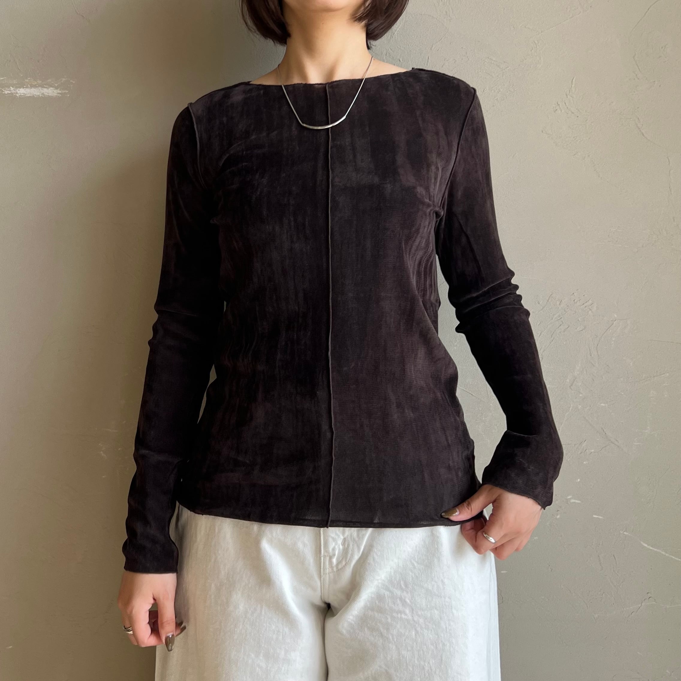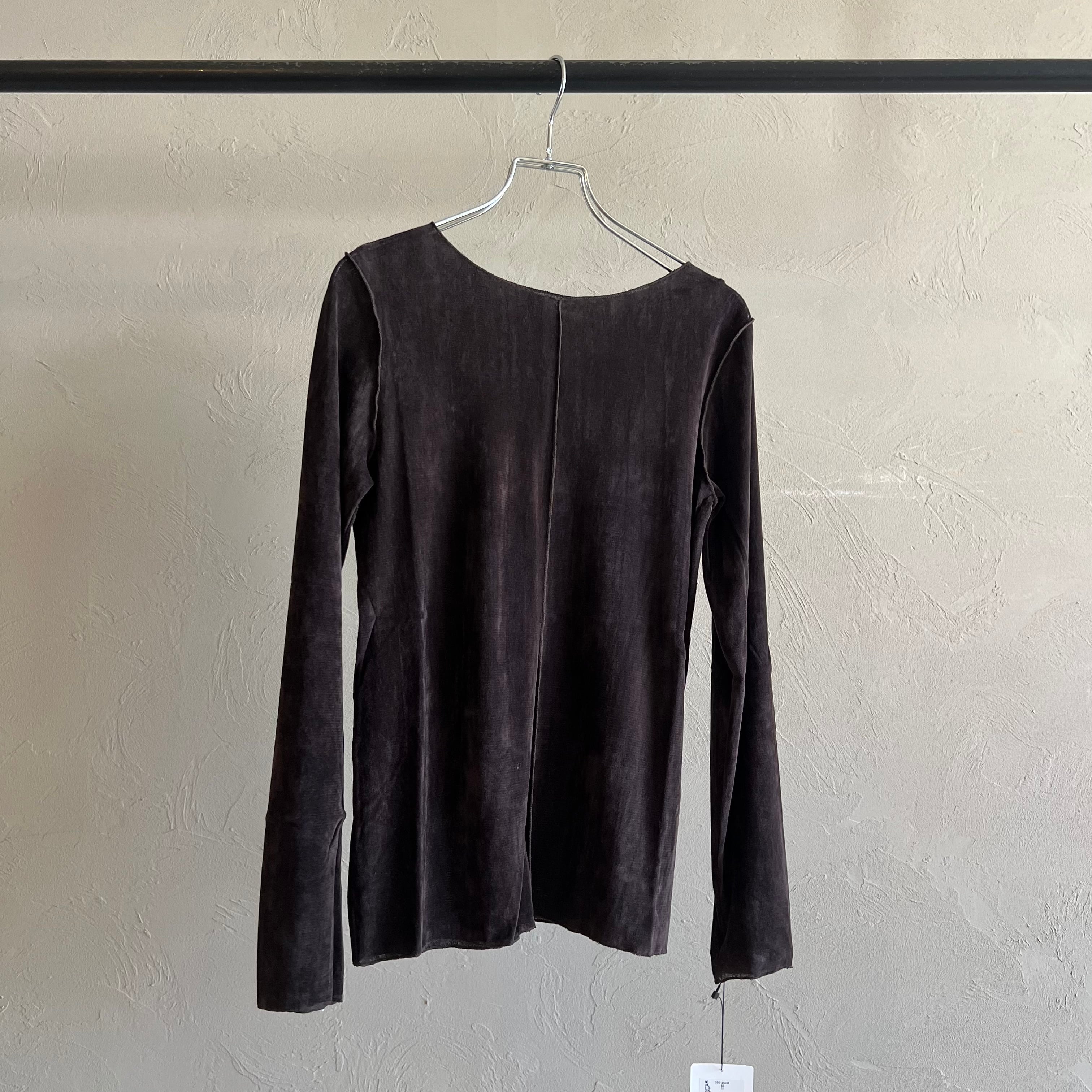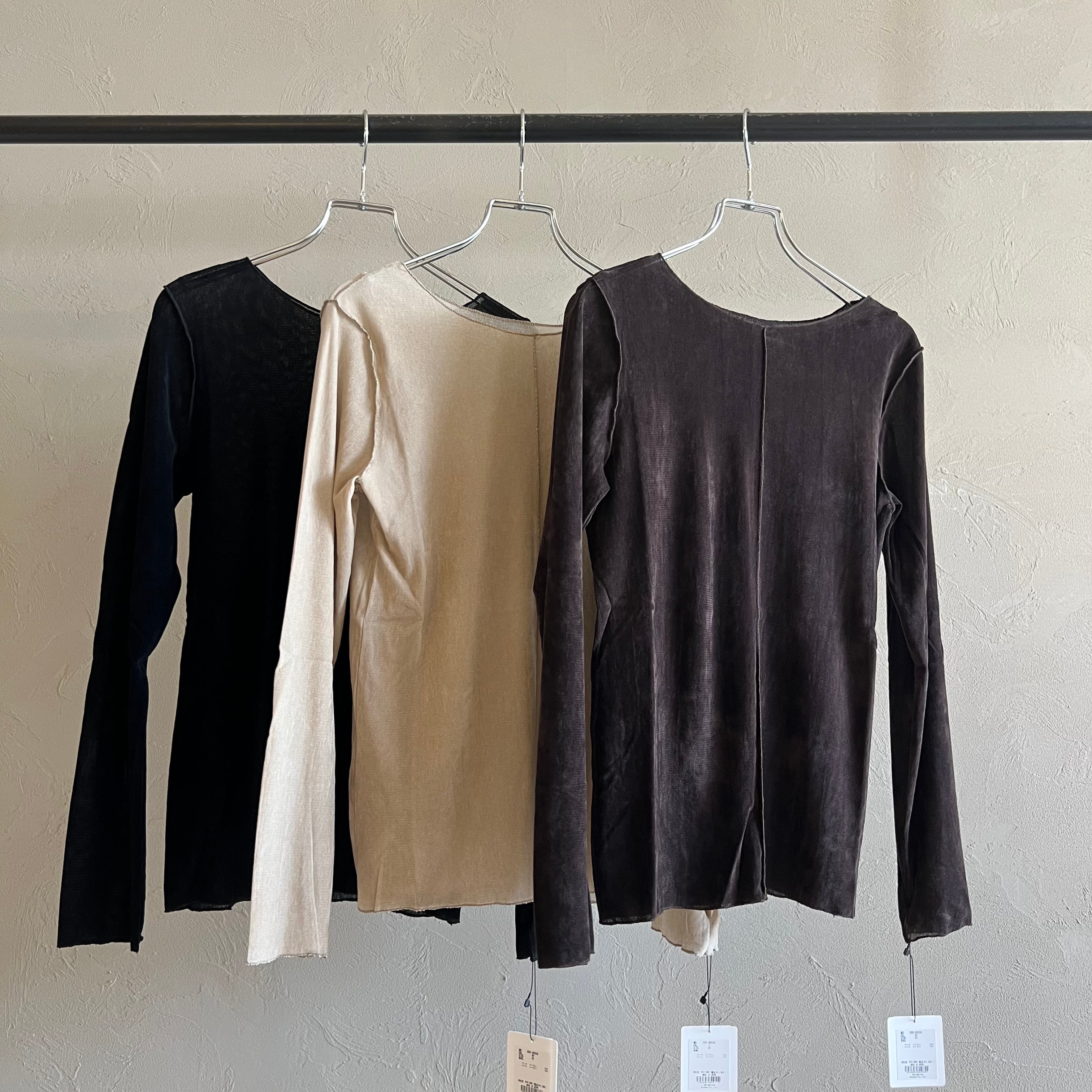 上品な光沢感と透け感が魅力のシアーベロア素材を使用したロンT。