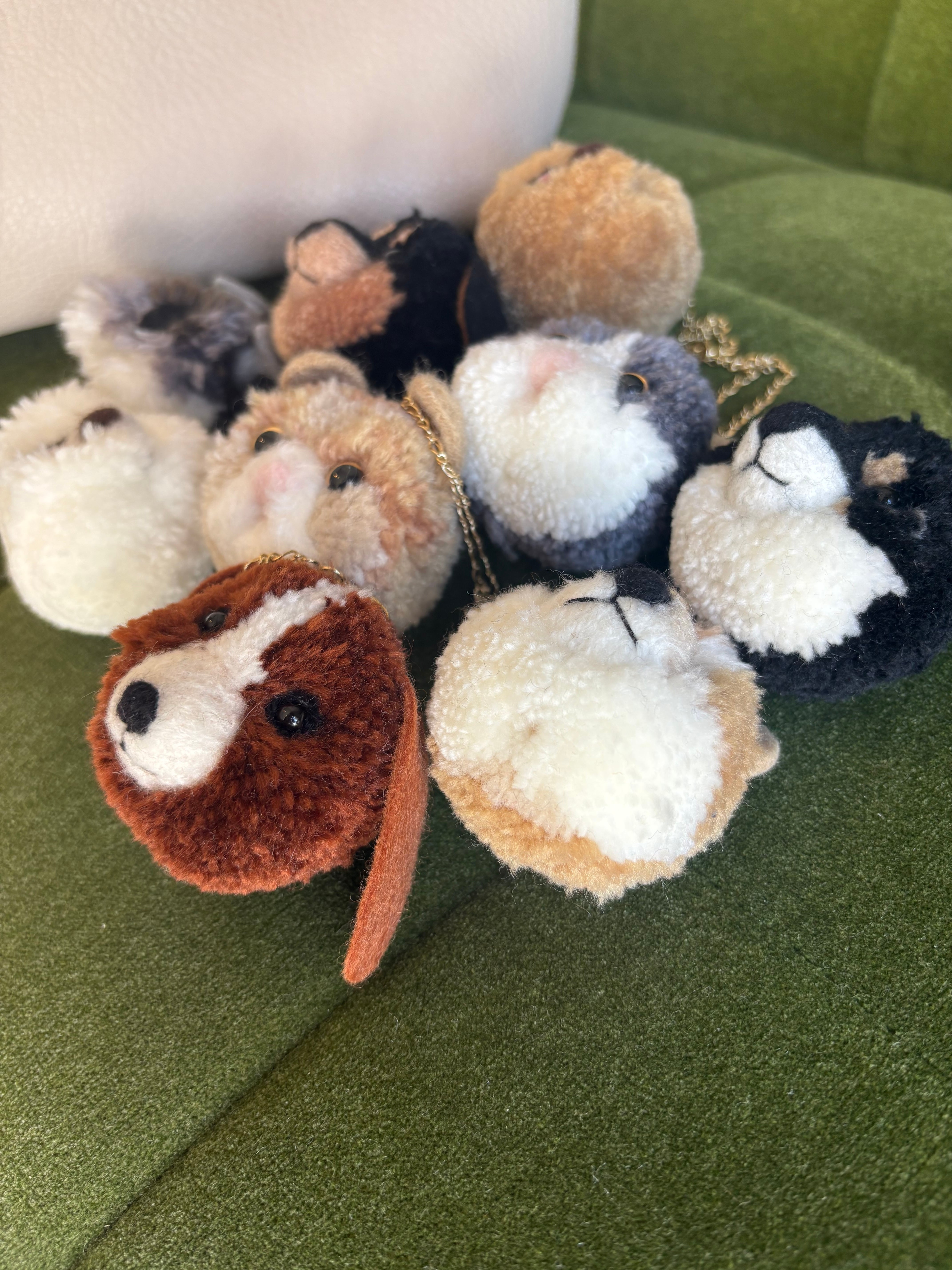ふわふわまるまるの毛並みで、360度かわいい、手のひらサイズのわんちゃん、ねこちゃんキーホルダー。