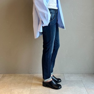 繊細な陰影加工が脚を立体的に細く見せ、スキニーほど細すぎず、ボーイフレンドよりもシャープな自然なテーパードラインが魅力。