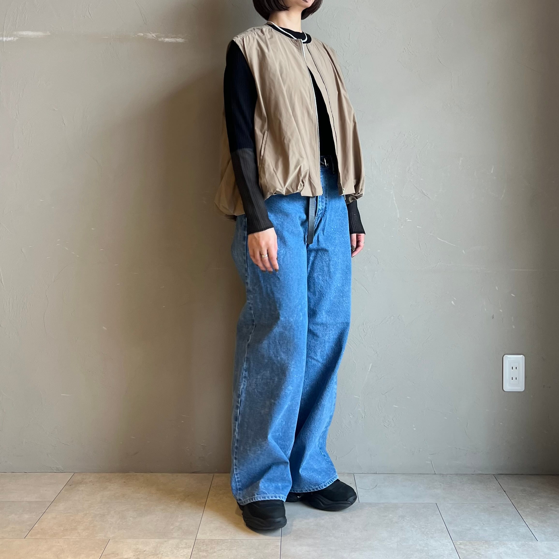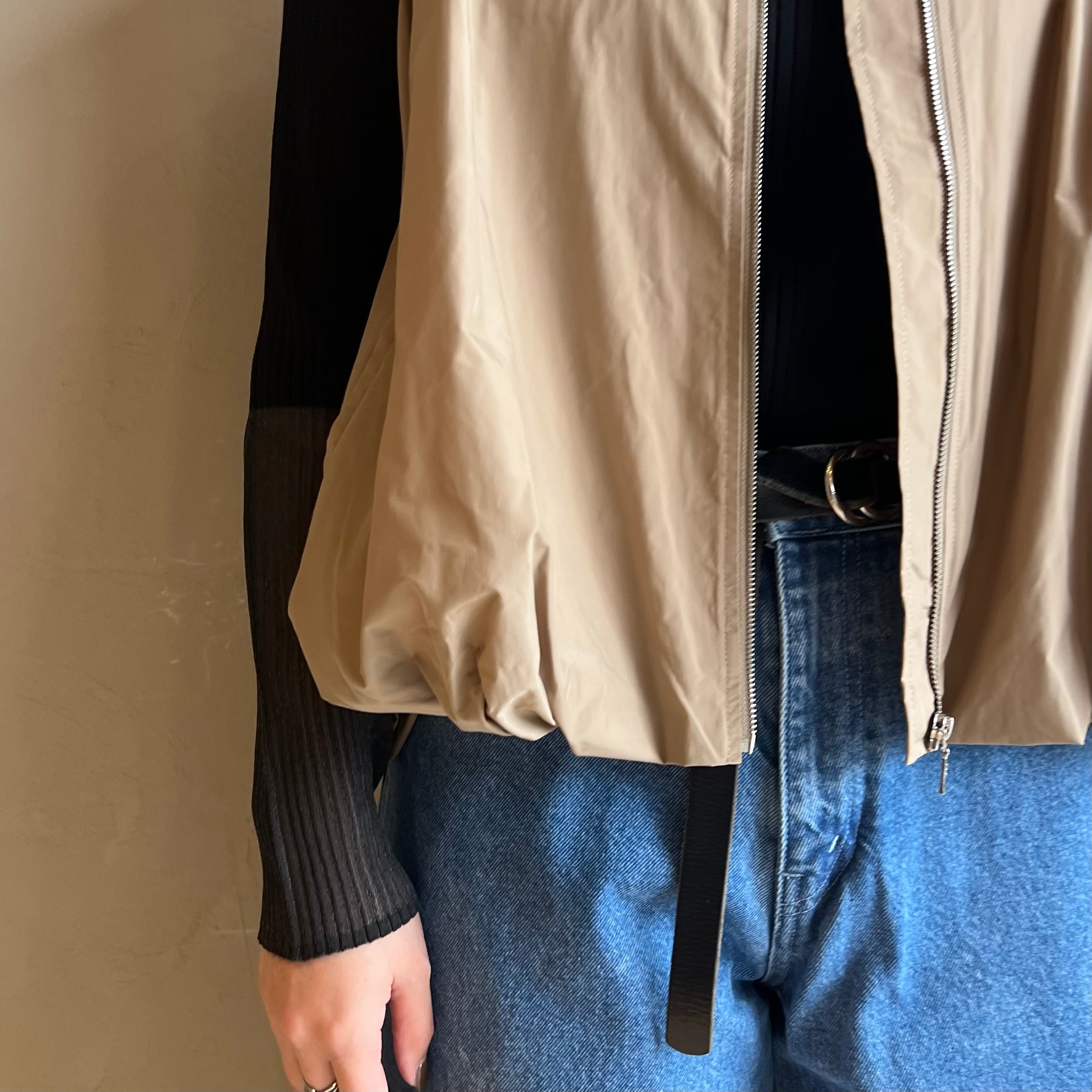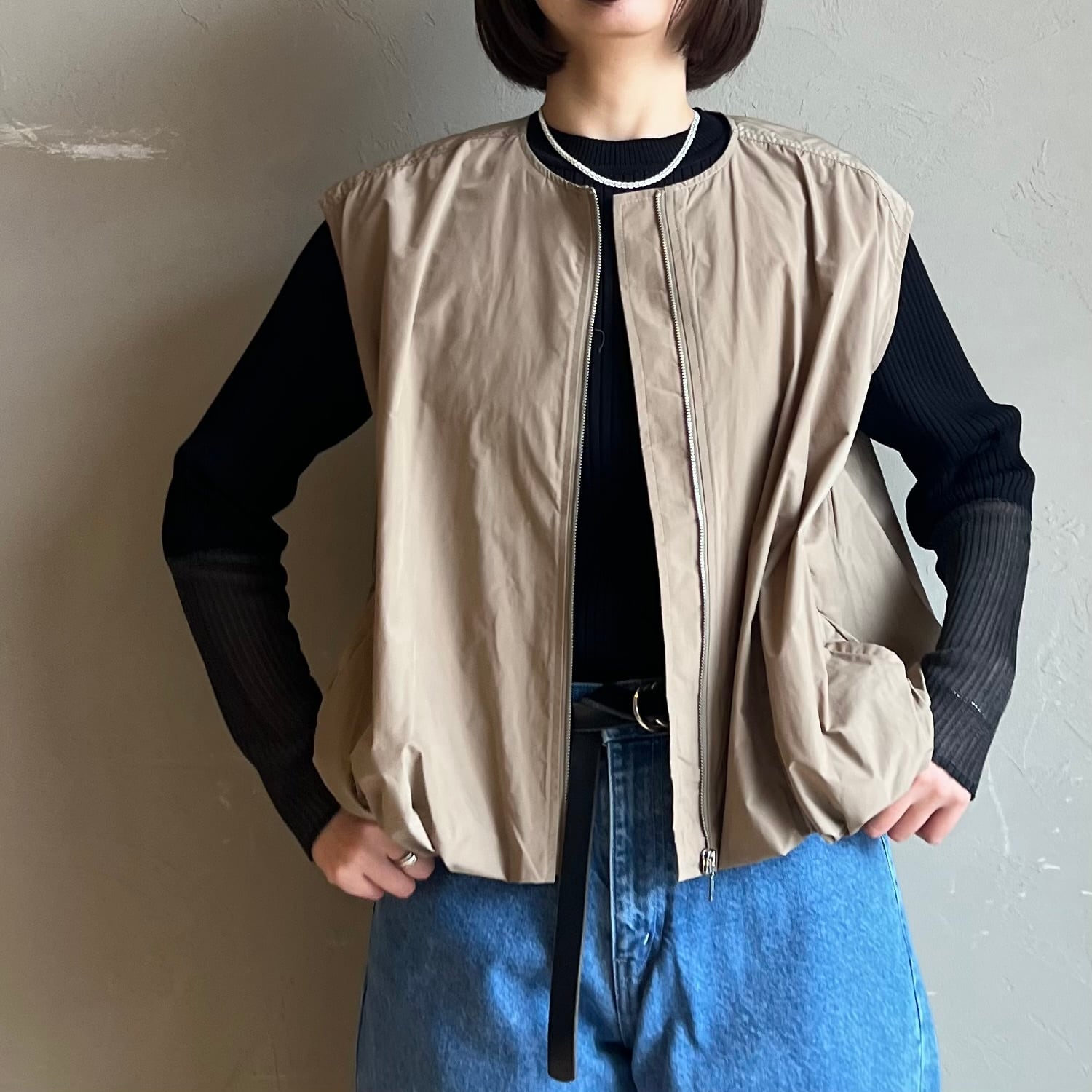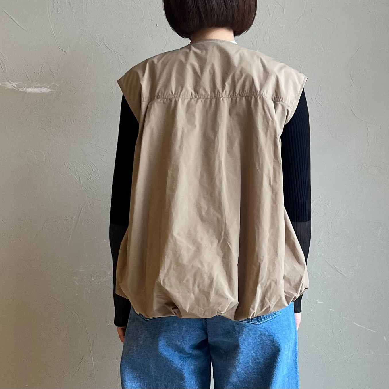 立体感のあるシルエットが魅力のノーカラーバルーンベスト。