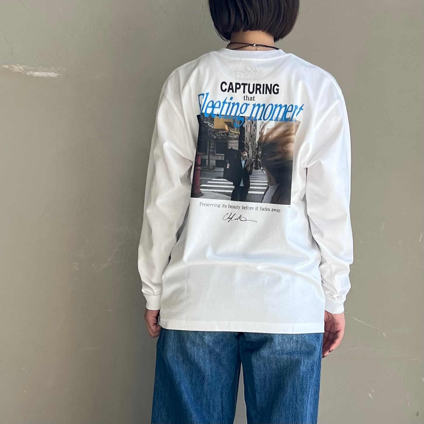 シンプルながらもインパクトのあるフォトプリントは、カジュアルなコーディネートの主役として活躍します。