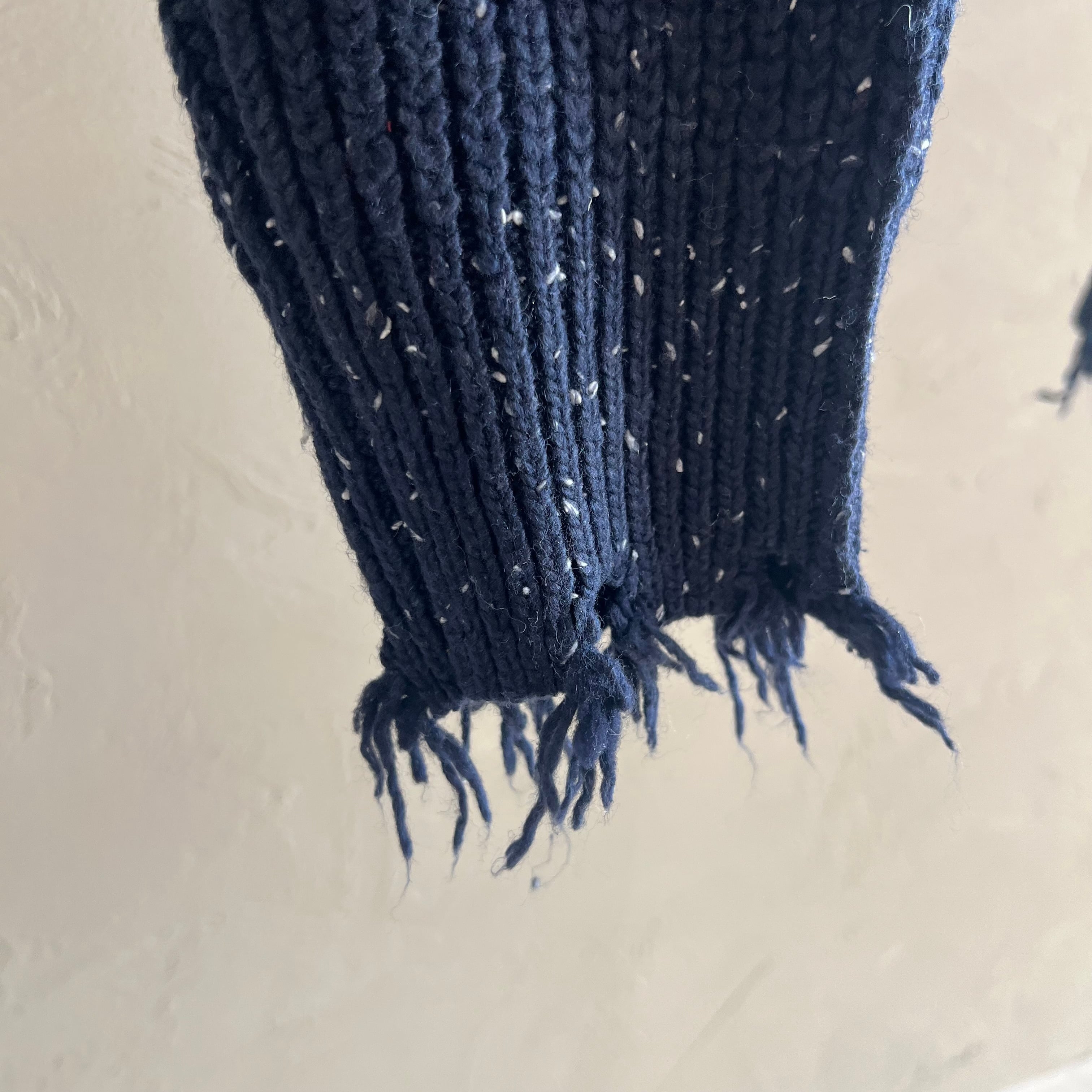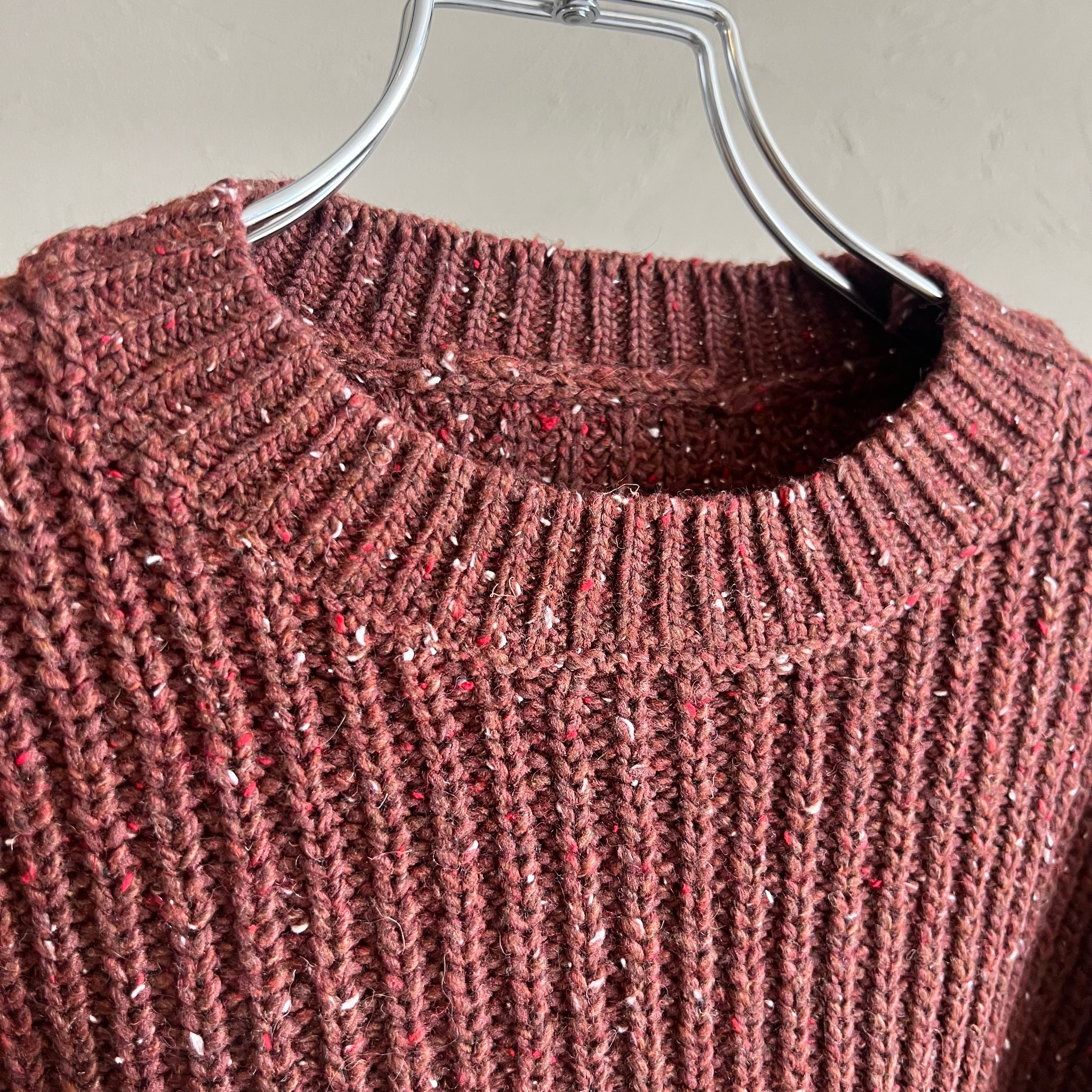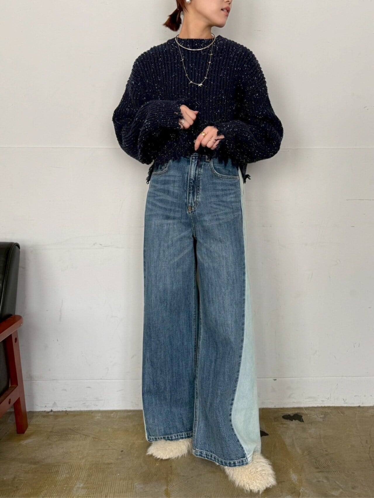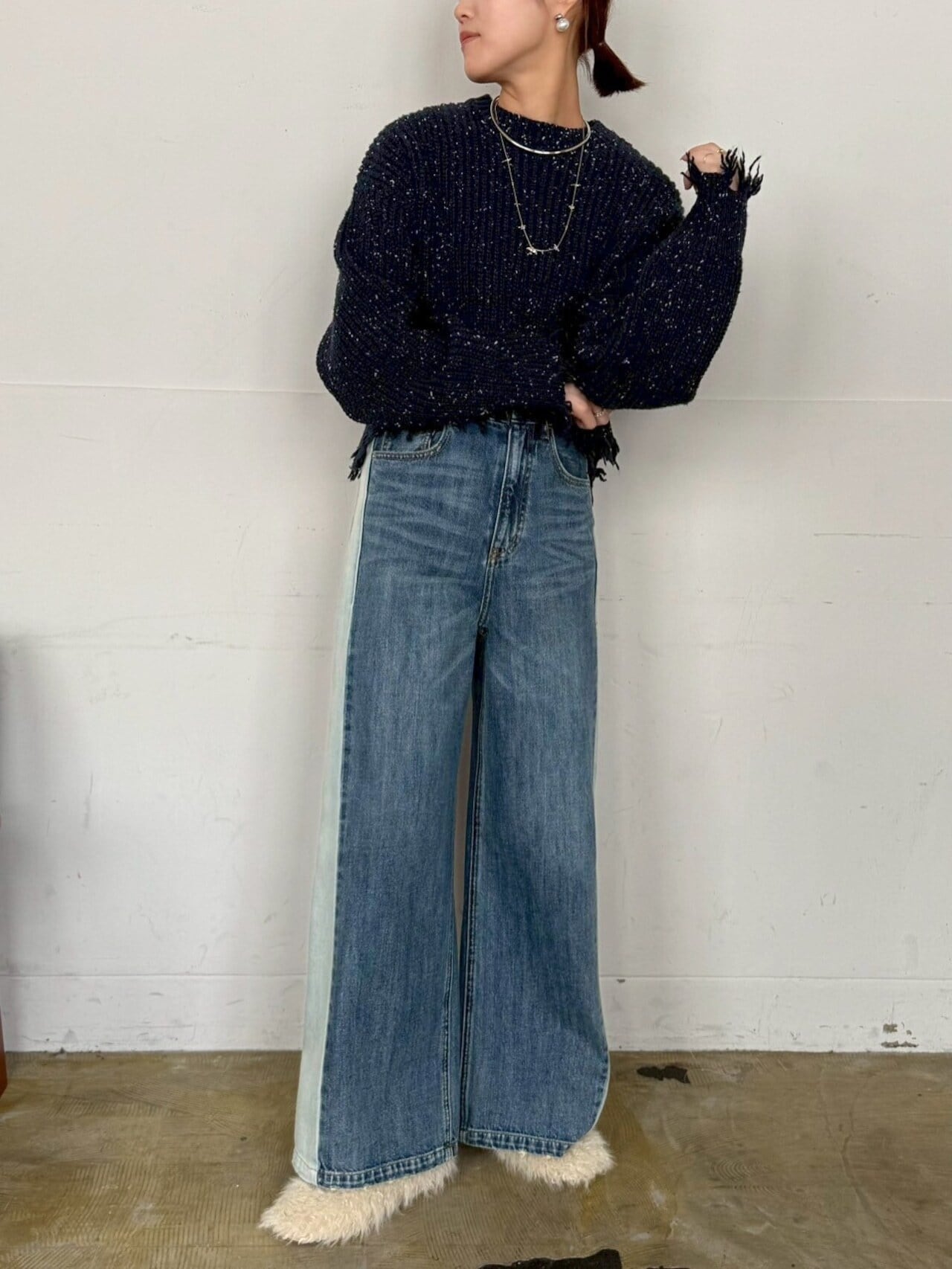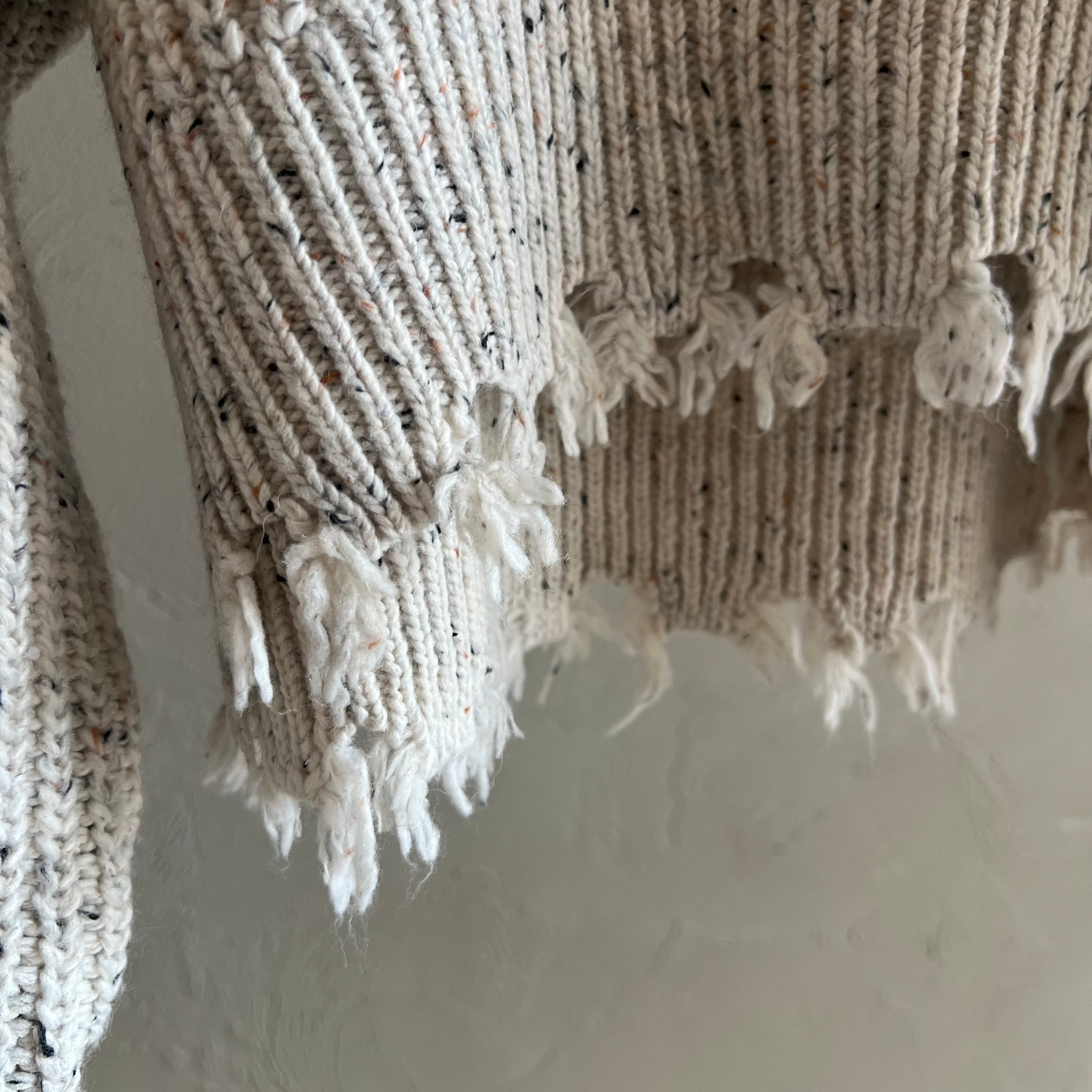 袖口と裾のダメージディテールがポイントのニットプルオーバー。程よくゆったりとしたサイズにソフトな風合いの糸質で着心地◎フォルムの出るスリーブやネップの入った表情も特徴でコーディネートのアクセントになる一枚。