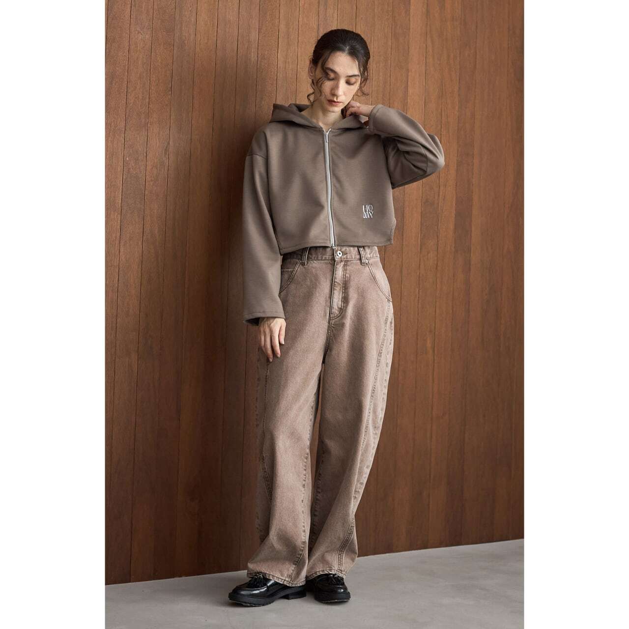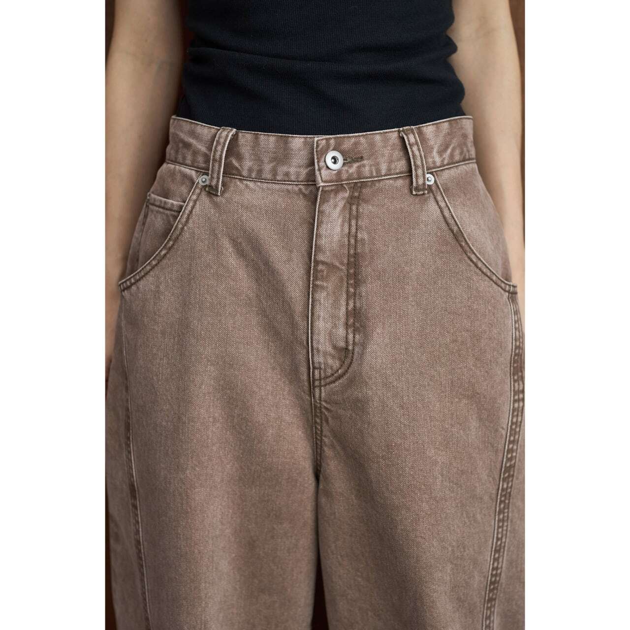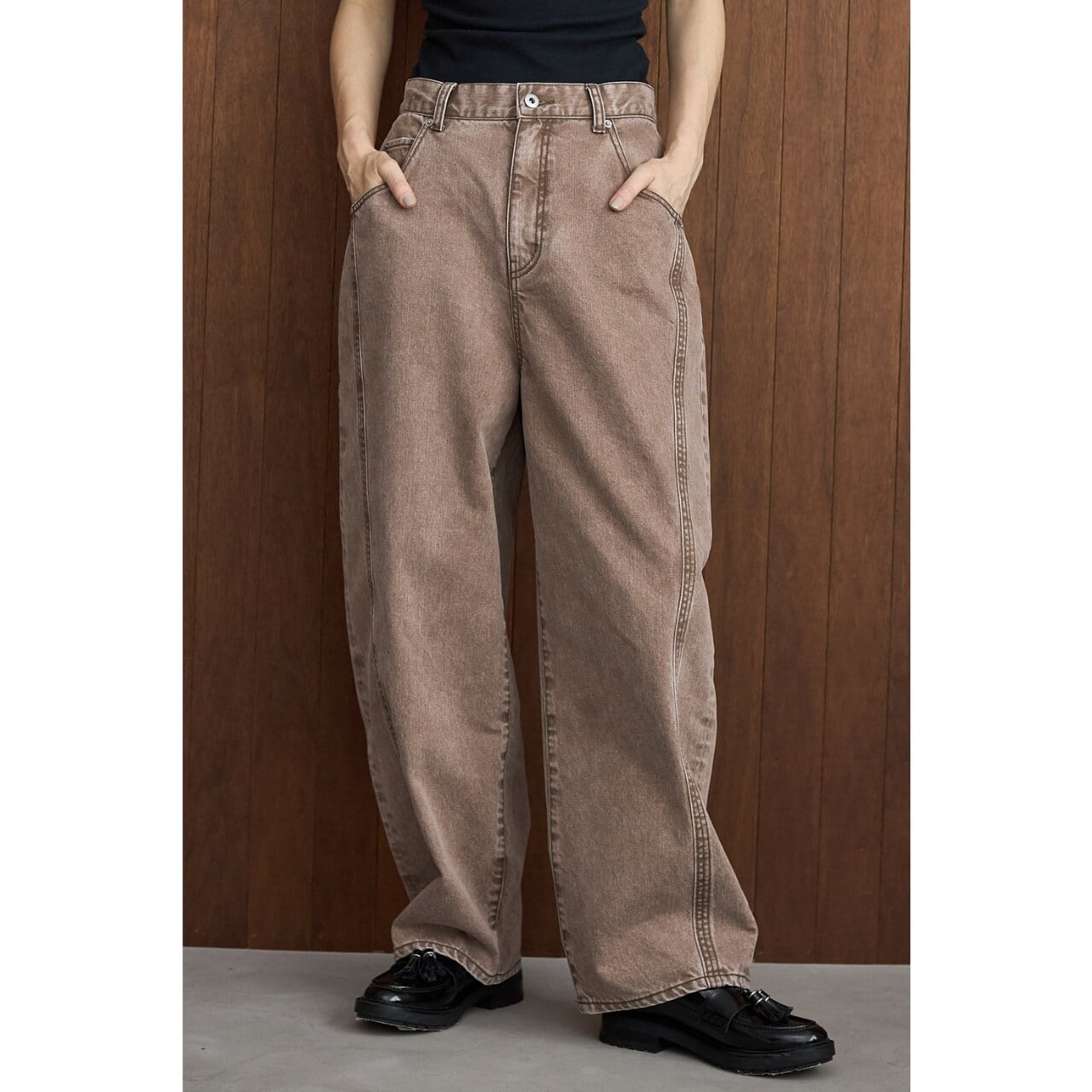 シルエットは人気のバレル型。ゆとりのあるフォルムが自然に体型をカバーしつつ、足首にかけてすっきりと見える美しいバランスに仕上げました。