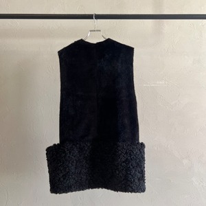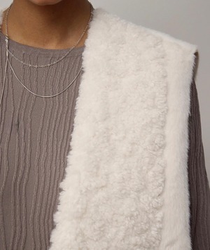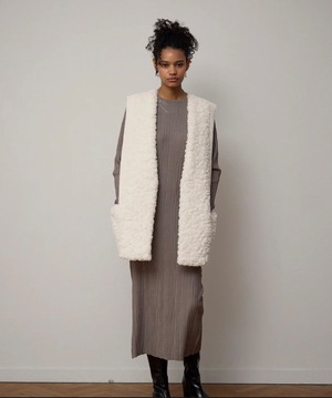 ふんわりとした暖かさが魅力のムートン素材を使用した、リバーシブル仕様のロングジレ。