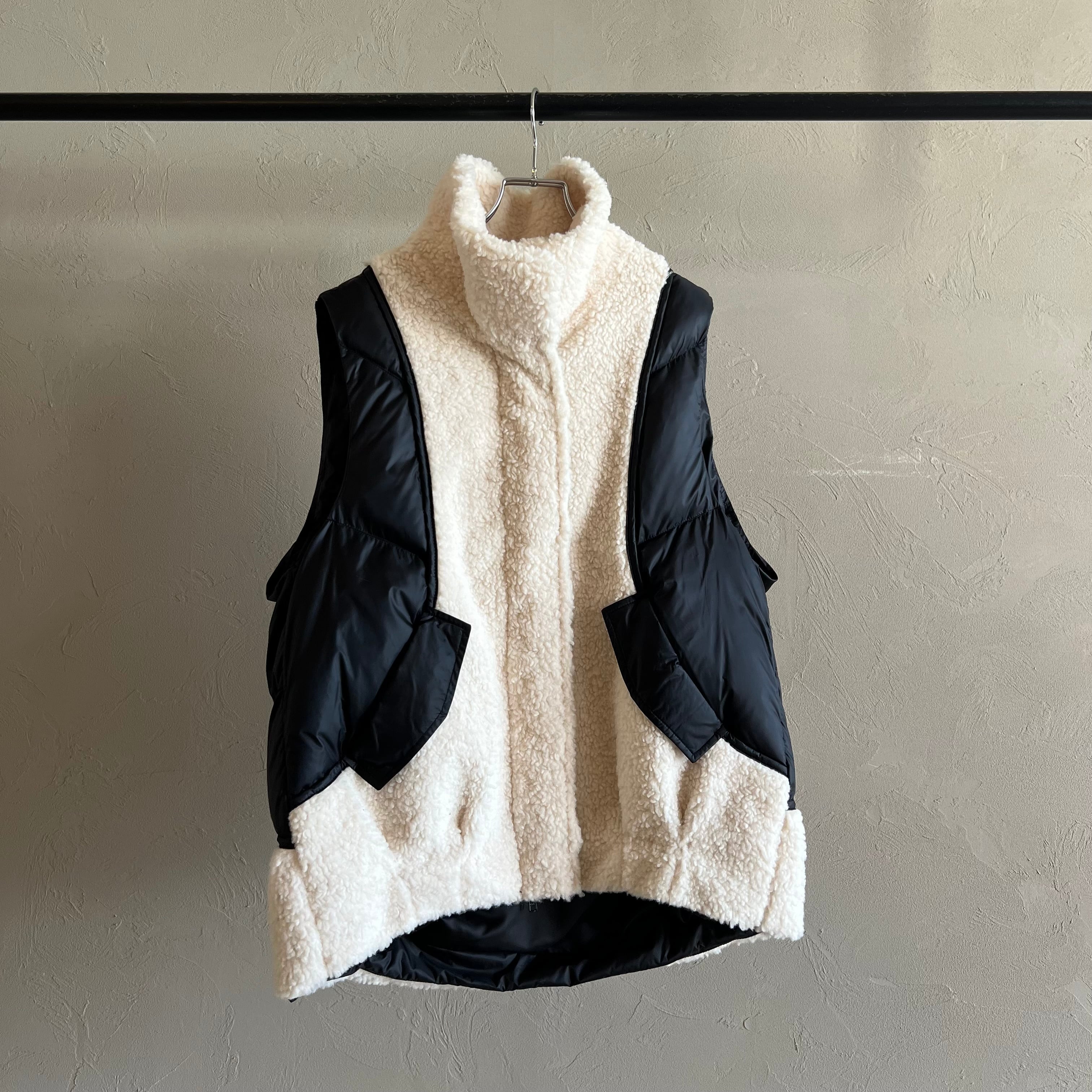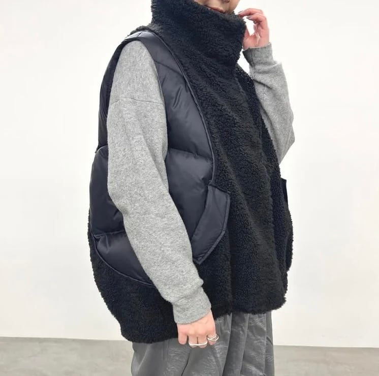 【 NUS 】ボア×タフタドッキングパデッドボリュームベスト