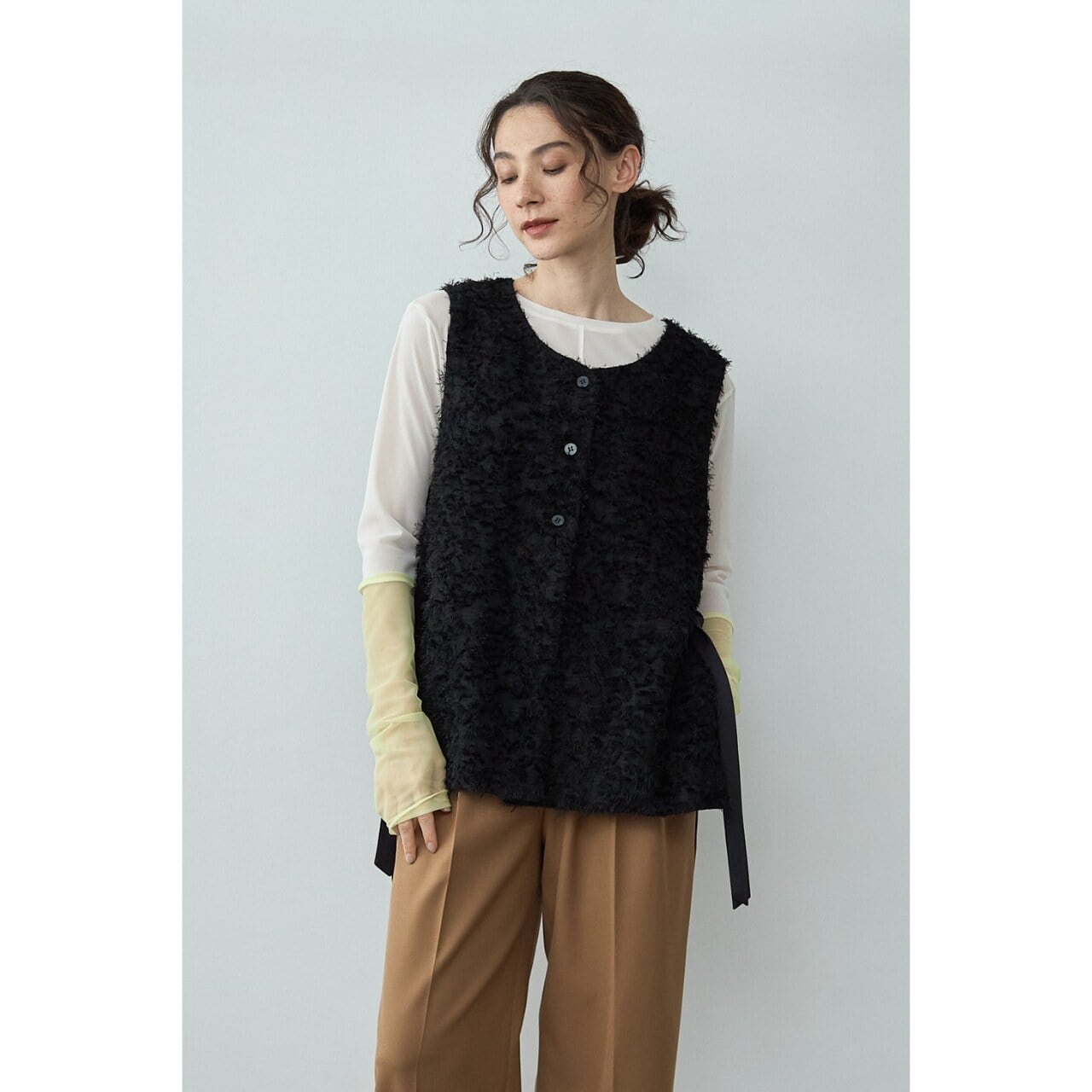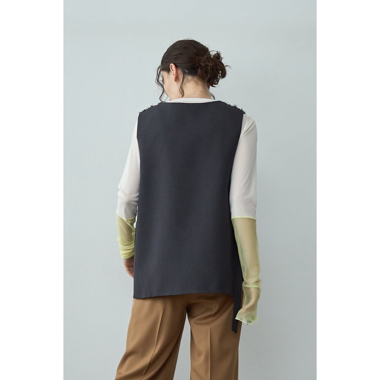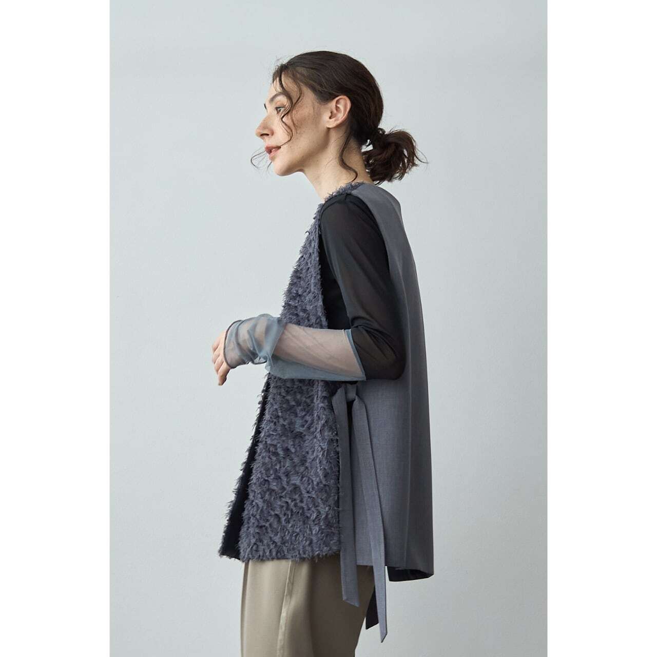 一枚プラスするだけで、シンプルなスタイリングをモードにアップデートしてくれるジレです。