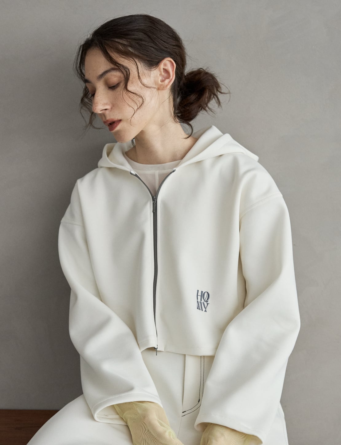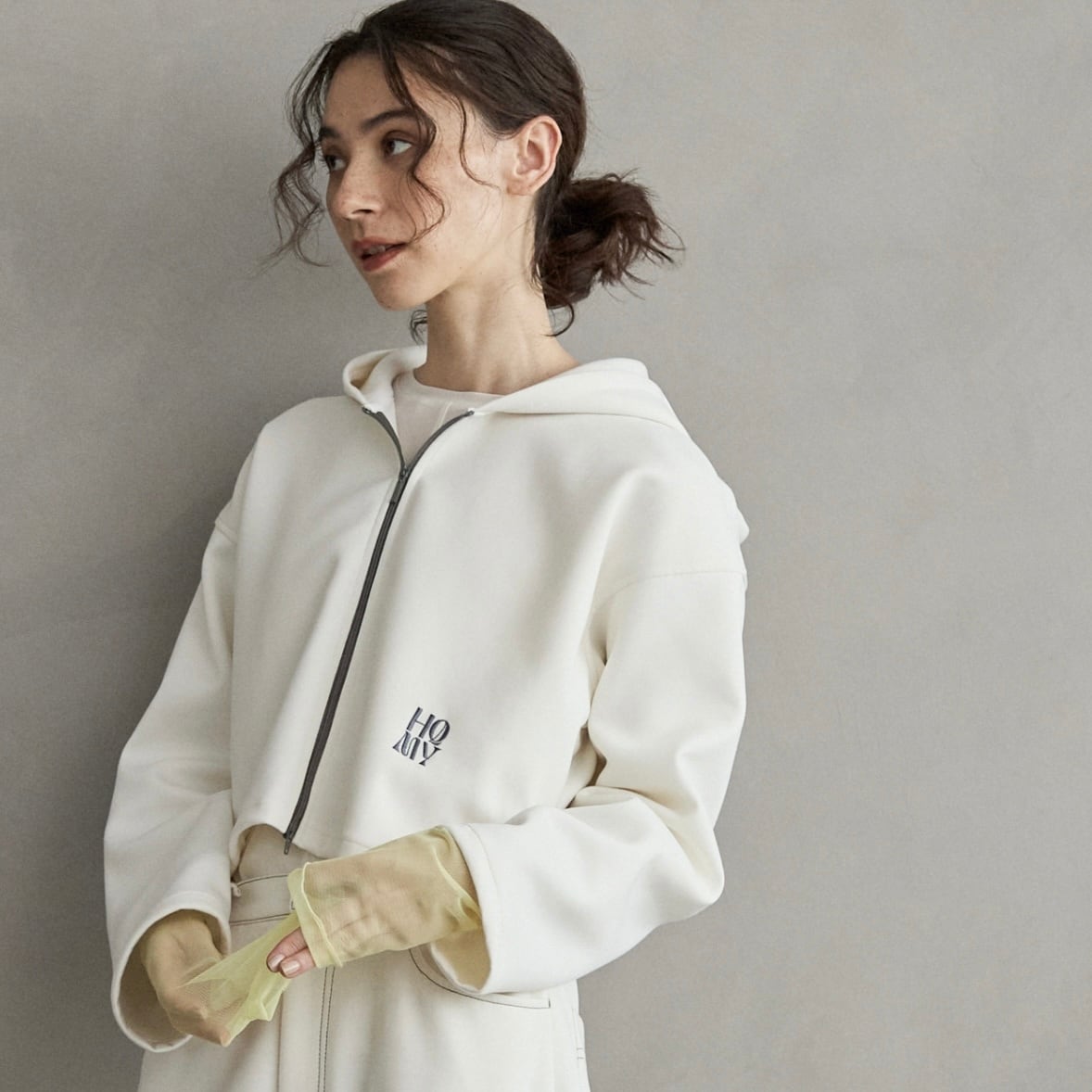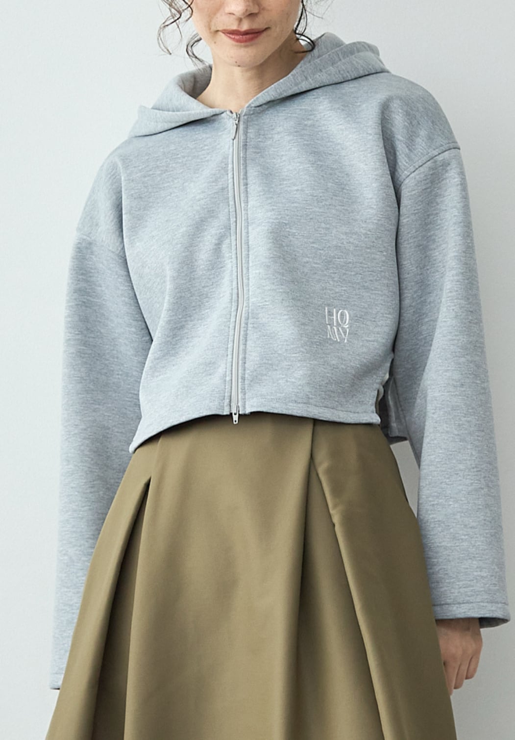 【 ALMOND OIL 】ダンボールニットショート丈パーカー