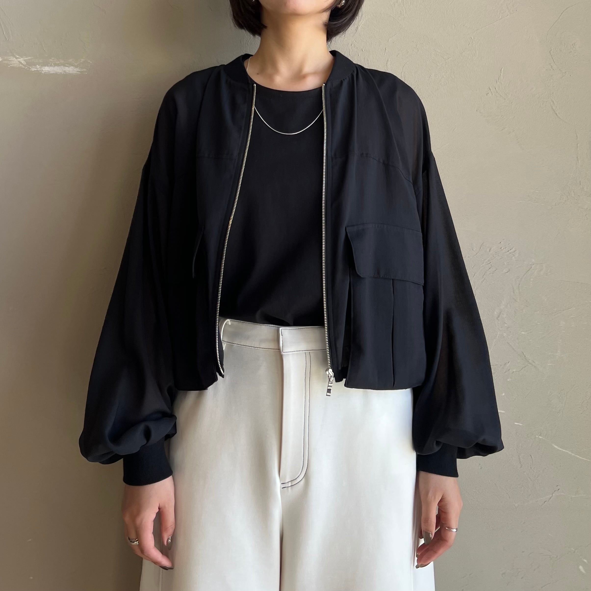 【PASSIONE シアーブルゾン】は、軽やかな透け感と女性らしいシルエットが魅力の春夏にぴったりな一枚。
