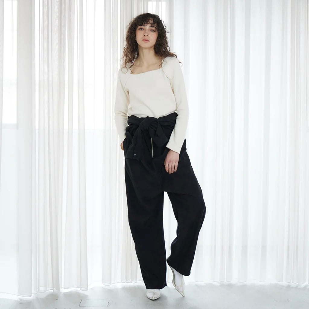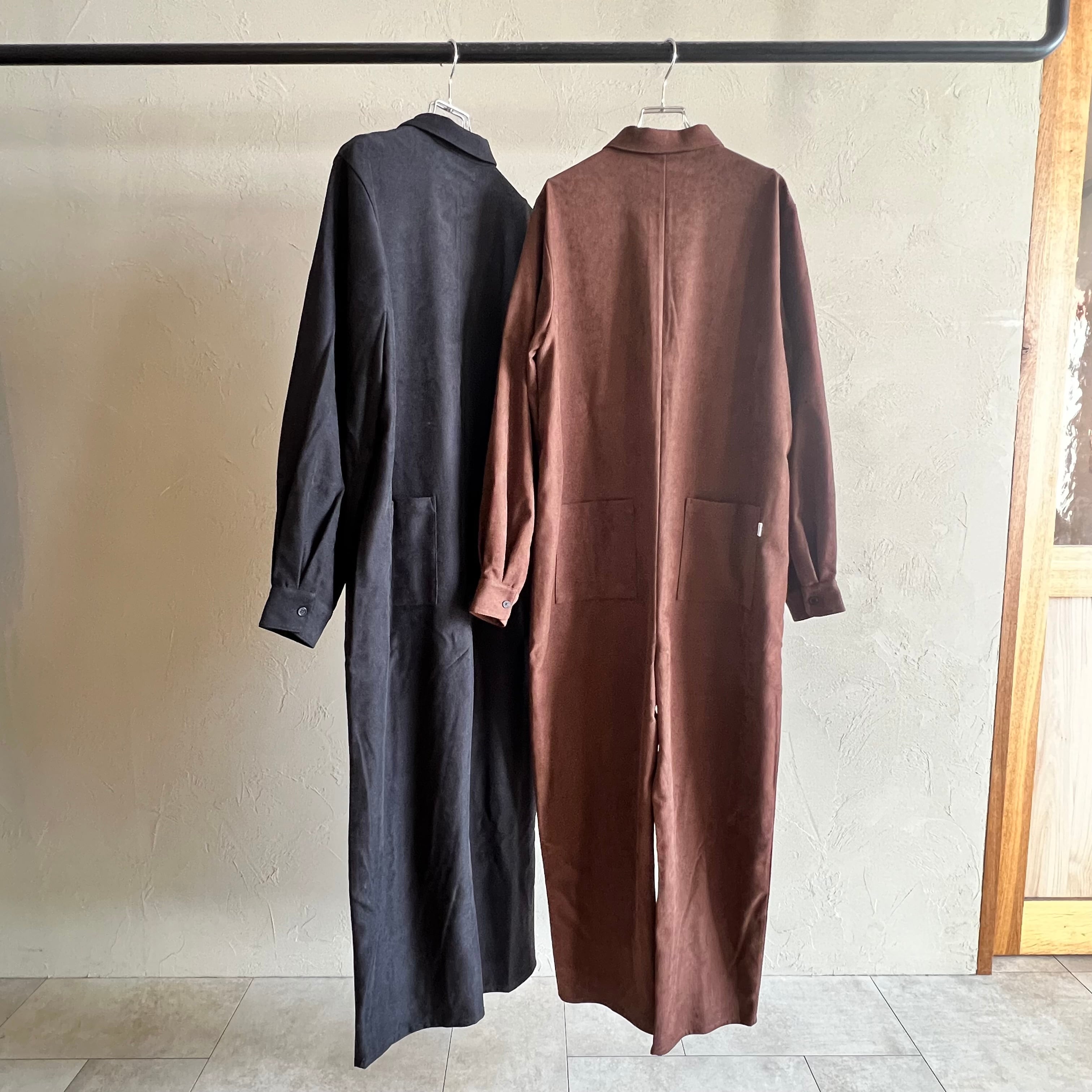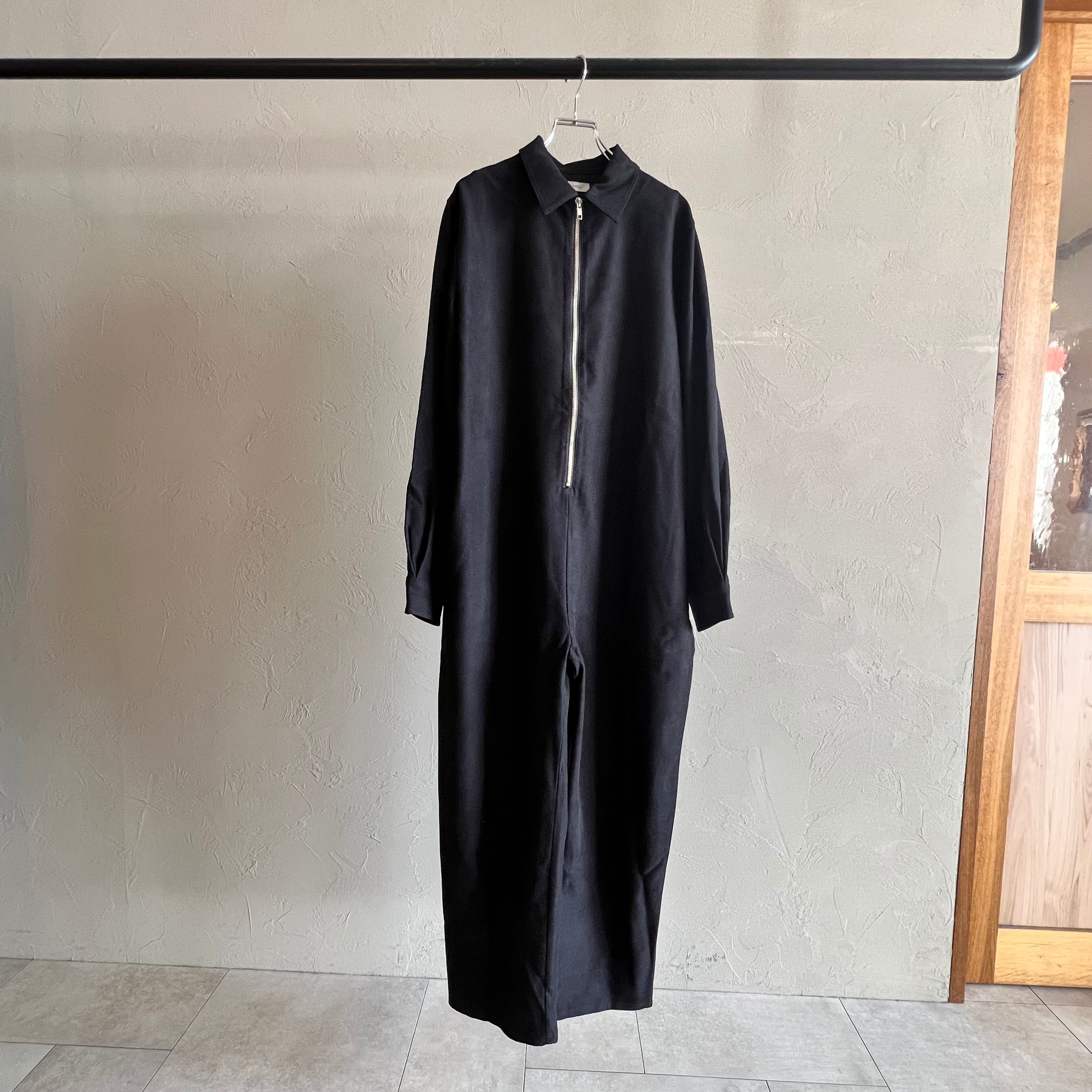無駄をそぎ落としたデザインのオールインワンは、ハンサムな雰囲気の中にさりげない女性らしさを感じる一枚。