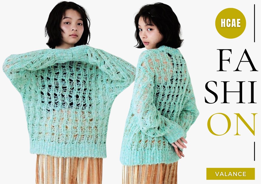 【HCAE LOW GAUGE SHEER KNIT TOP】は、透け感のあるローゲージ編みが軽やかな印象を与える旬のニットトップス。
