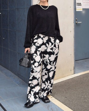 ふんわりとしたシャギー素材が魅力のニットプルオーバー。